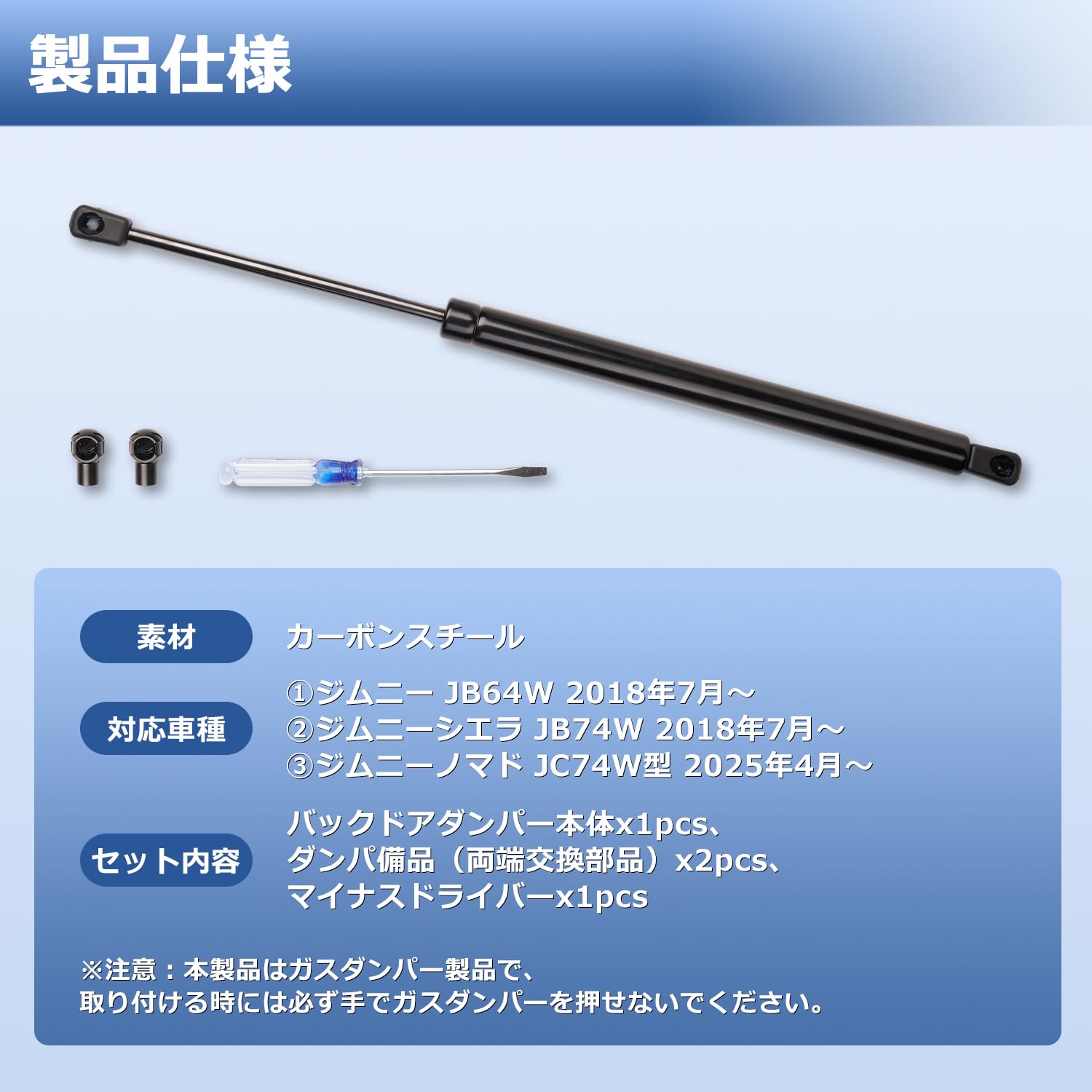 Virauto 【90°開閉】スズキ ジムニー JB64W JB74W JC74W バックドアダンパー 無段階 自由停止 リアゲートダンパー ジムニー シエラ ノマド リアドアダンパー 取付簡単 穴あけ不要 車検対応 純正交換 リアハッチ ドアパンチ対策 カーボンスチール製 カスタムパーツ 1セット