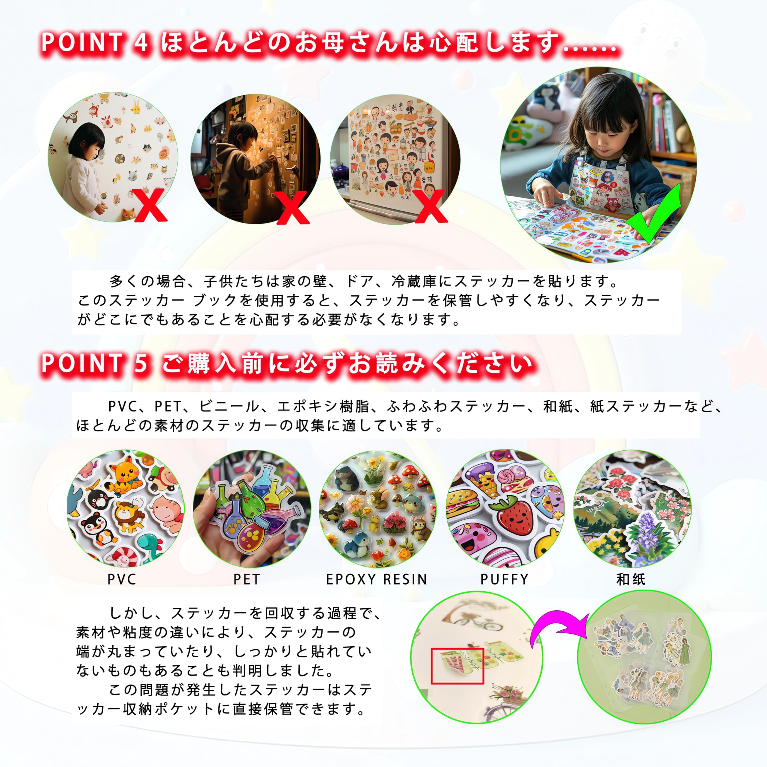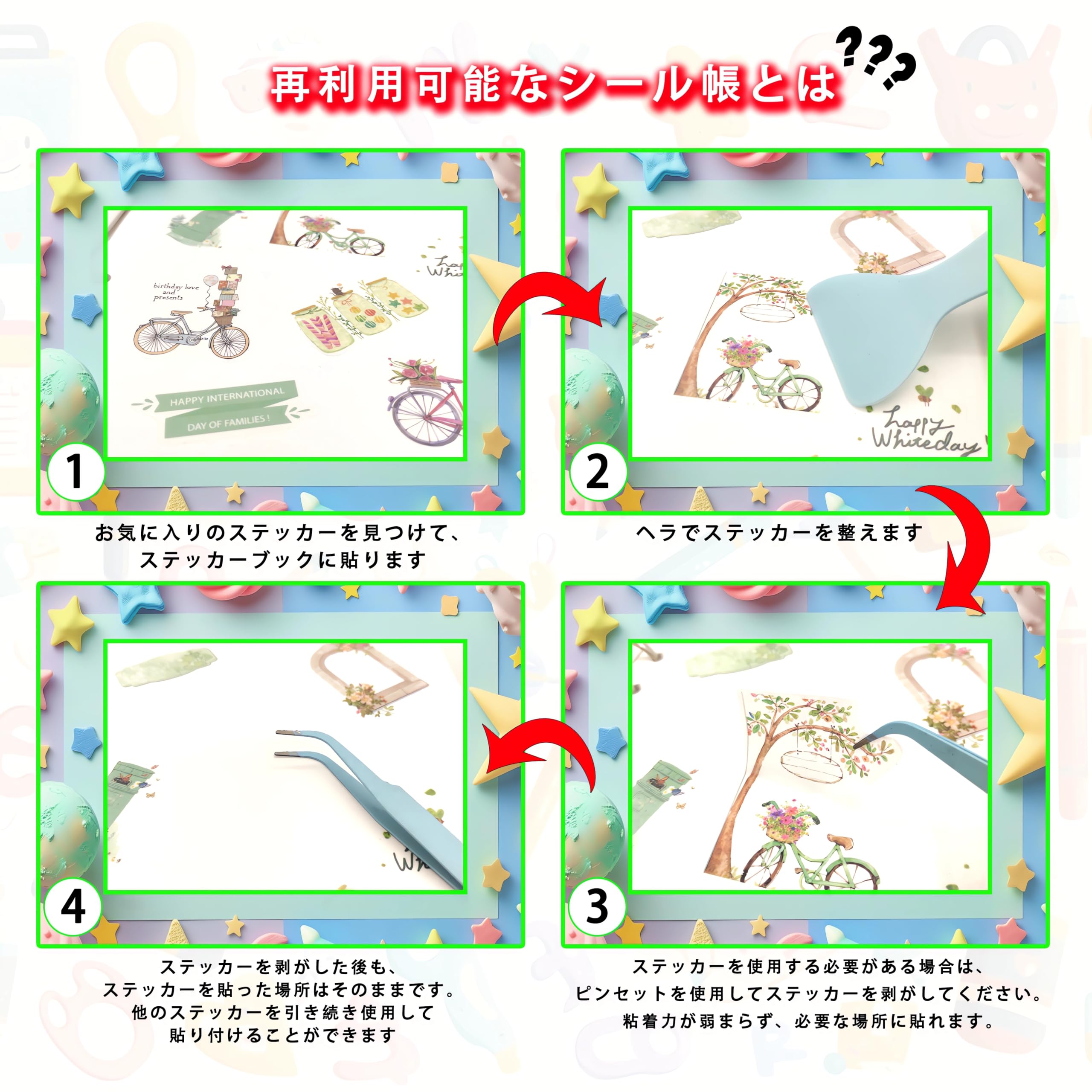 ステッカー収集アルバム 再利用可能なステッカーブック 収納ブック PVCステッカーバインダー 24枚 A5サイズリリース ペーパーステッカー オーガナイザーキーパー ステッカー収集用 ラベルステッカーブックストレージ (グリーン)