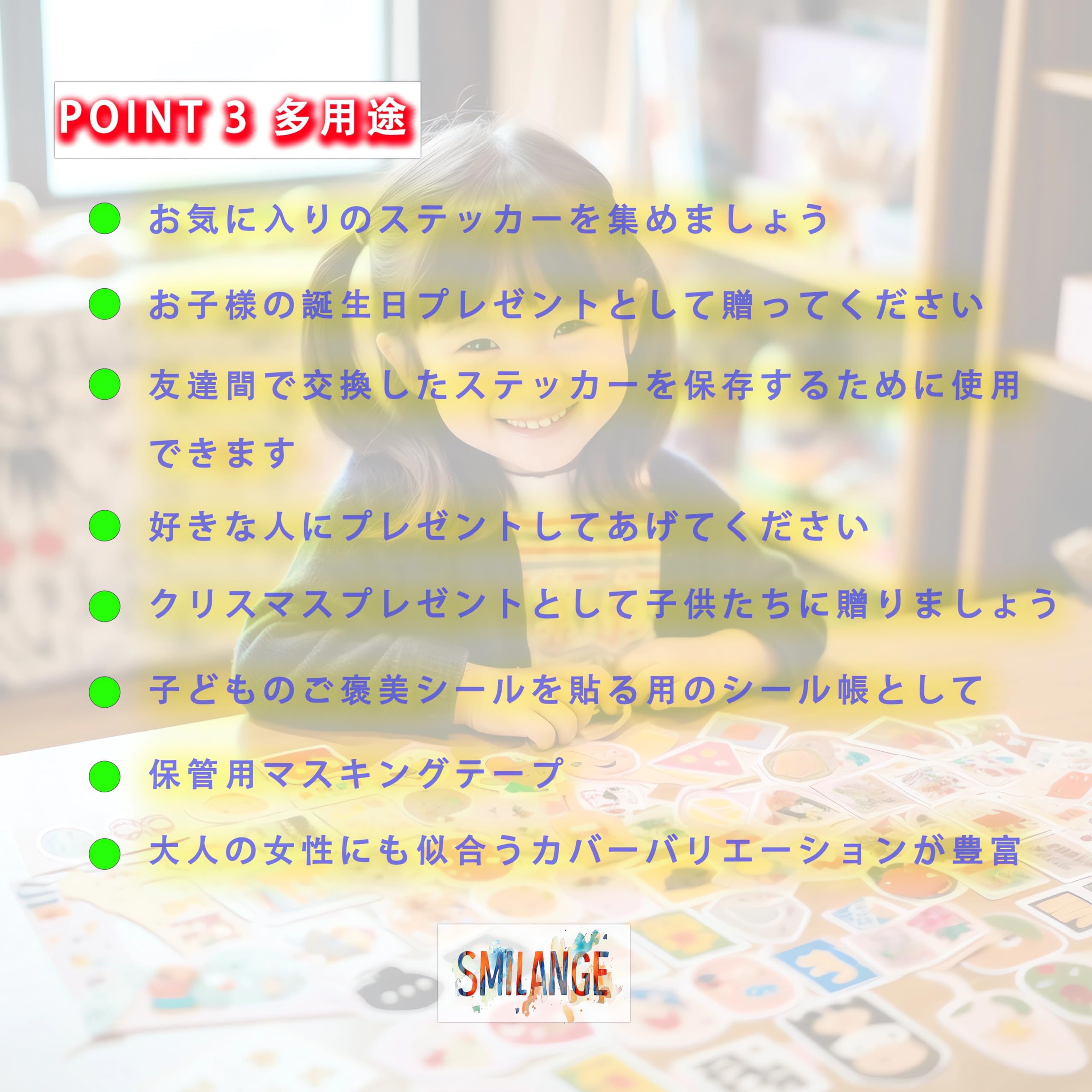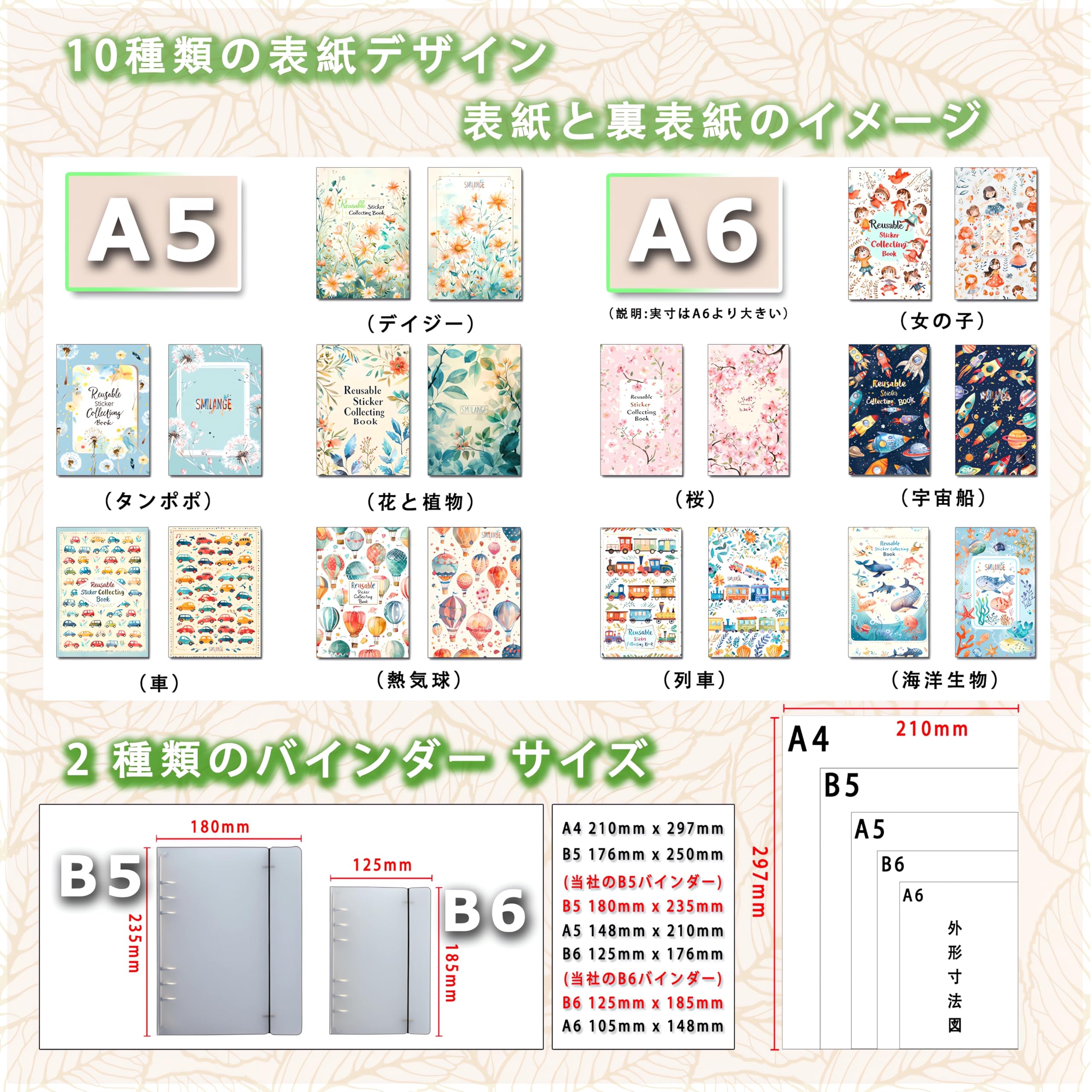 Smilange シール帳 女の子 シール帳はがせる両面剥離紙 バインダータイプ 大容量ステッカー保管ファイル シールノートコレクション 80枚入り (B5, タンポポ)