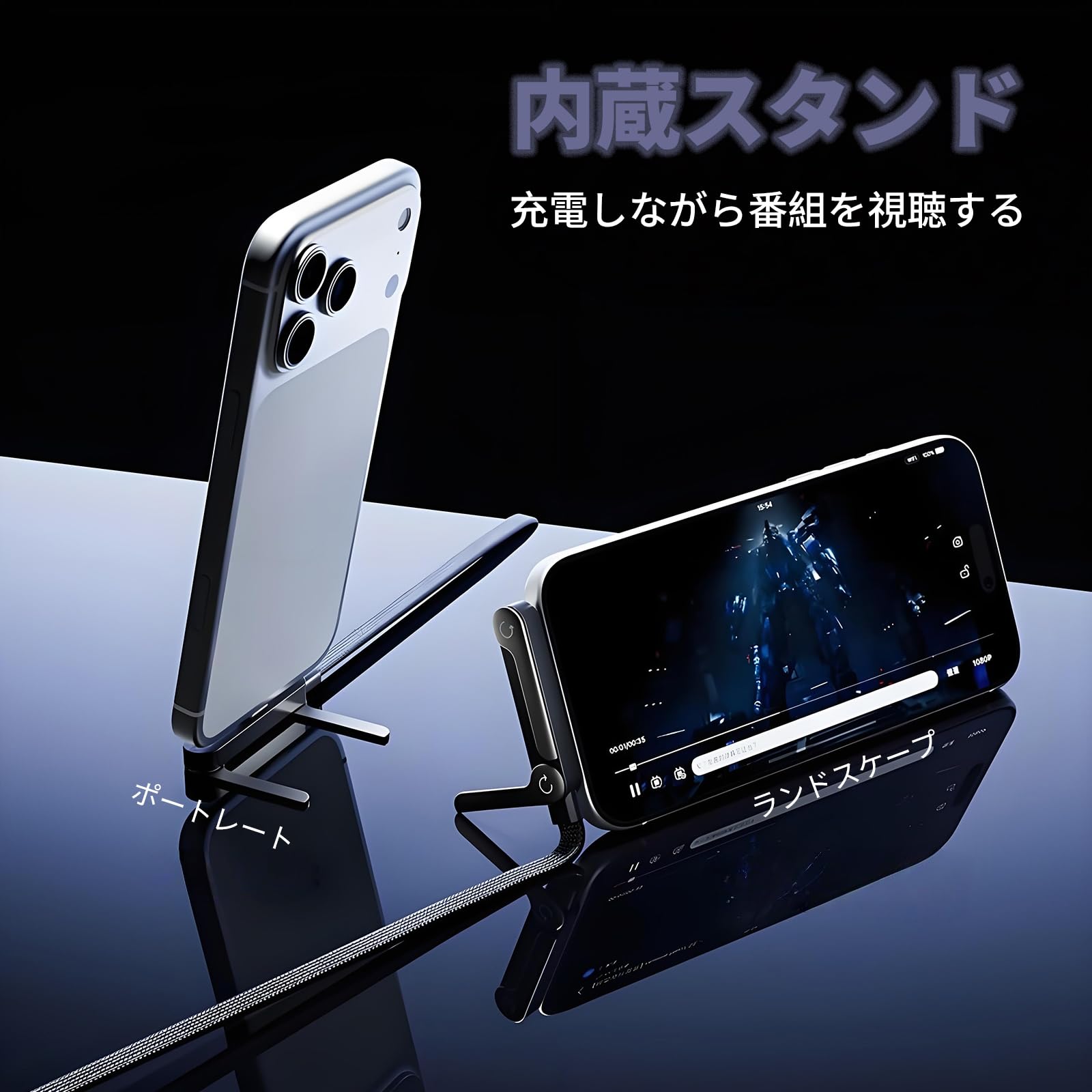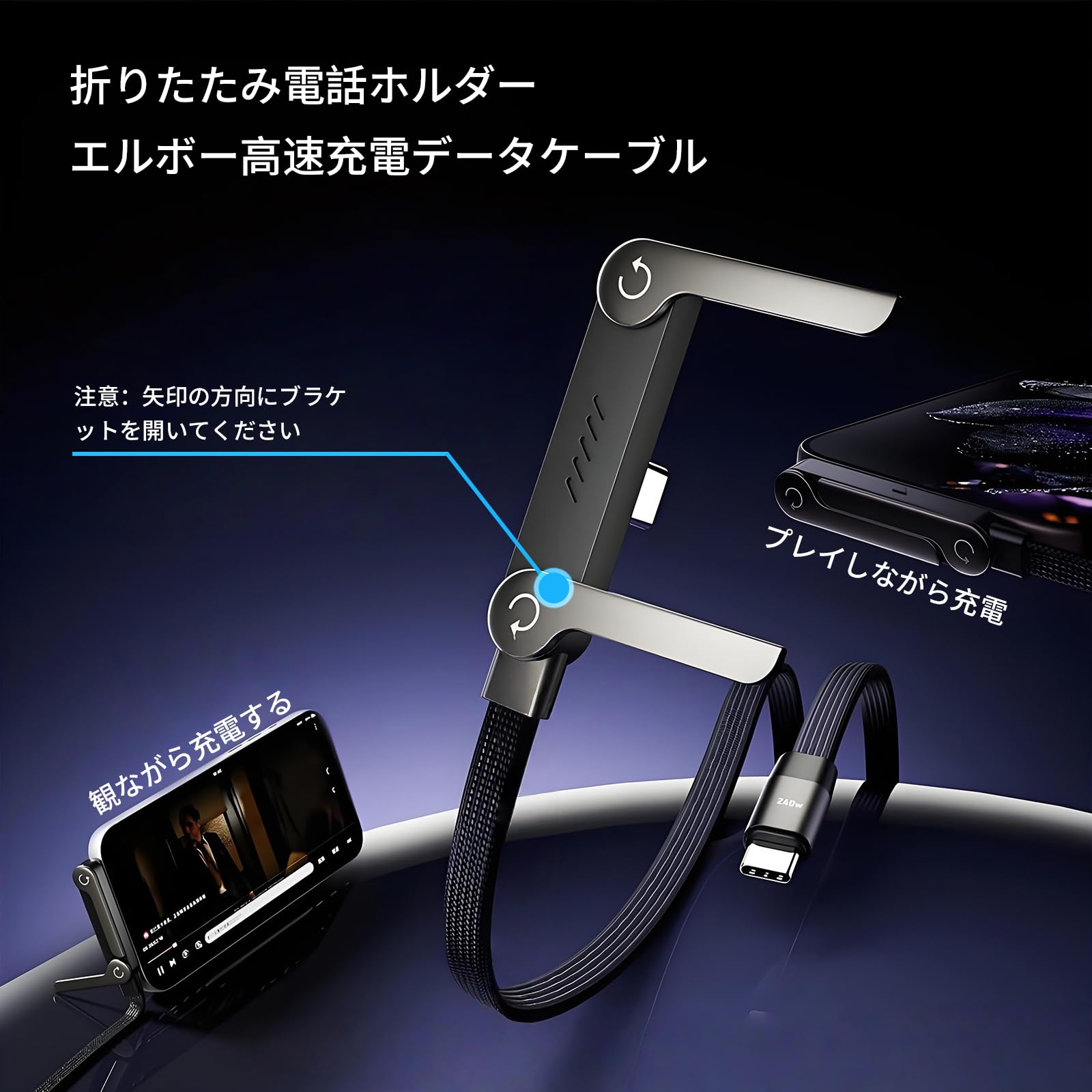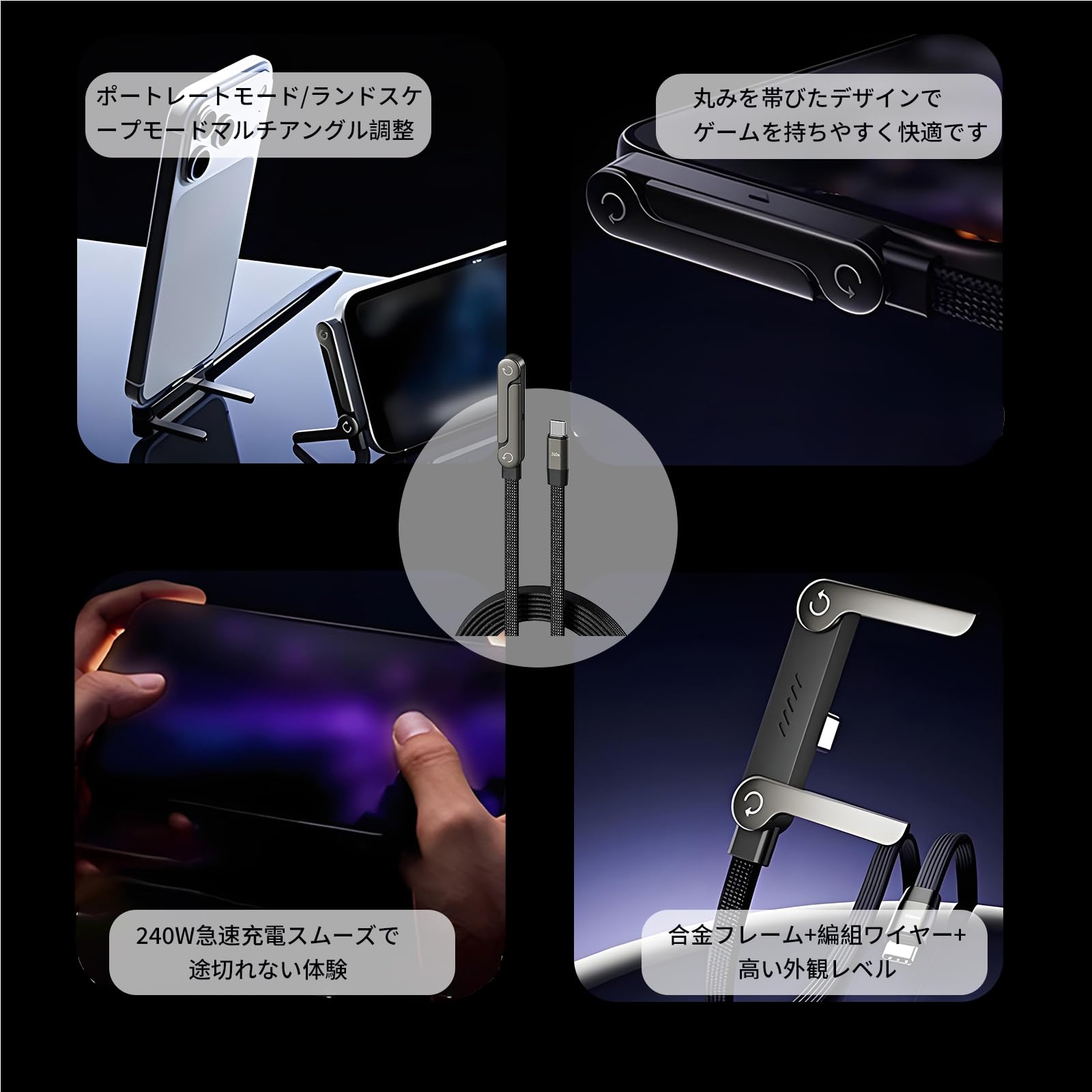 YipuVR 2-in-1インビジブルスタンド充電ケーブル 240W急速充電USB-Cケーブル折りたたみ式スタンド付き 内蔵スマホサポートの高速充電コード スマホ/ノートパソコン/タブレットに対応 (1)