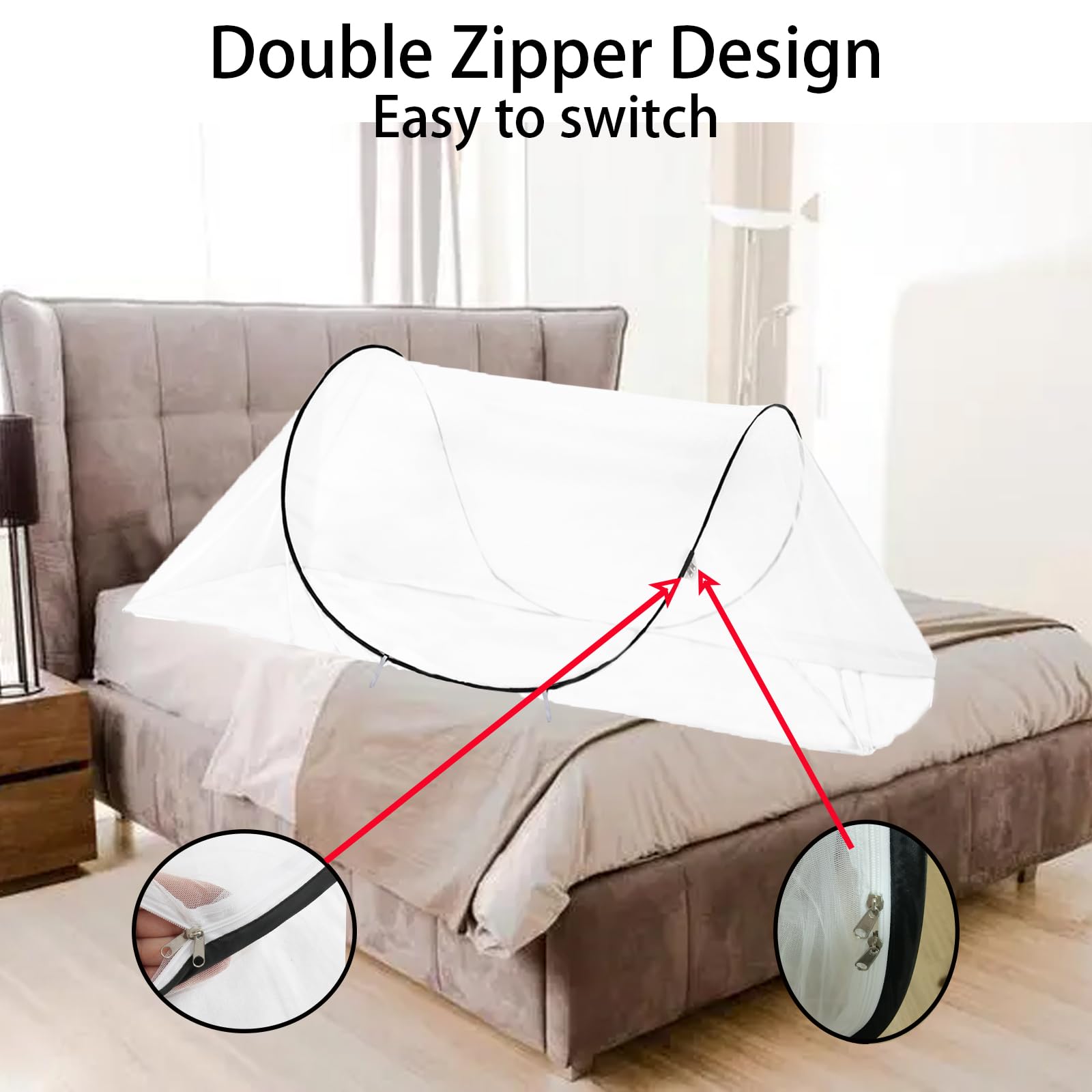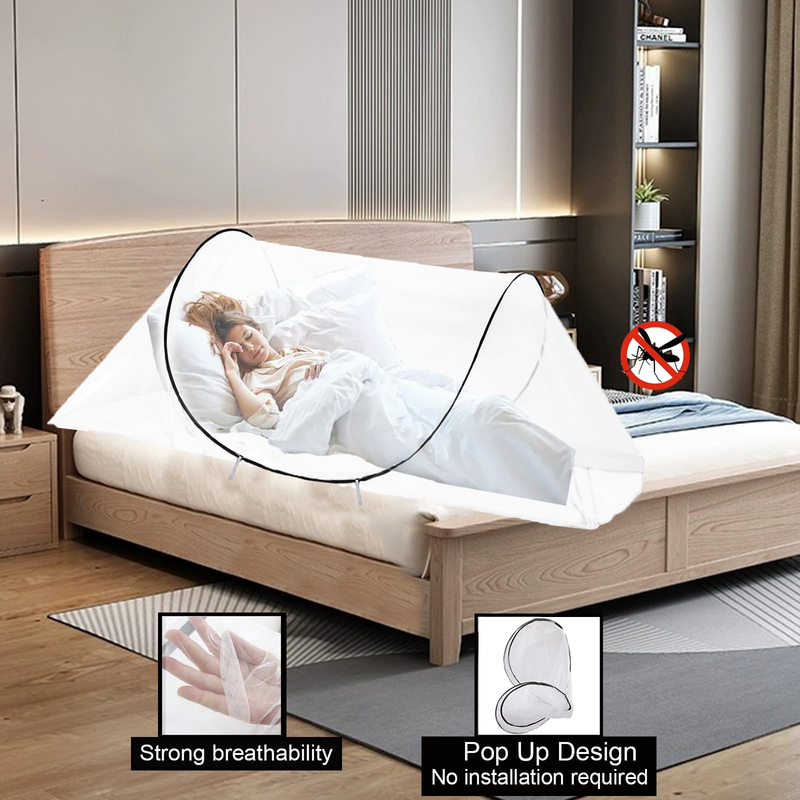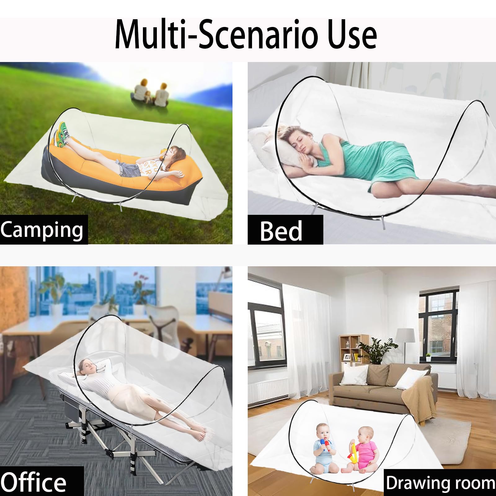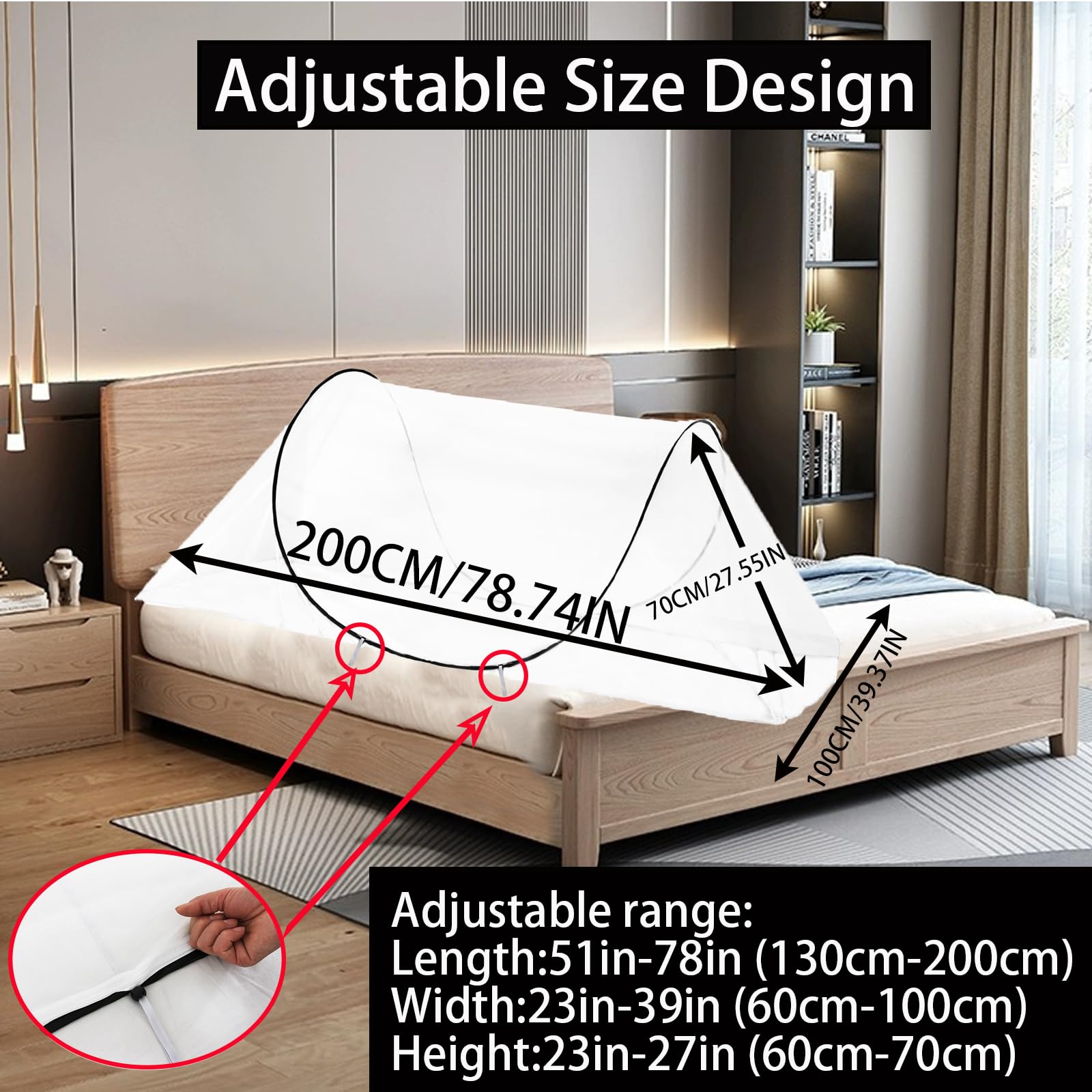 CMINGJ 大型ポップアップモスキートテント、ポータブル折りたたみ式蚊帳、ベッド、キャンプ、旅行パティオ用(78 x 31 x 22インチ) (ブラック調整可能サイズ)