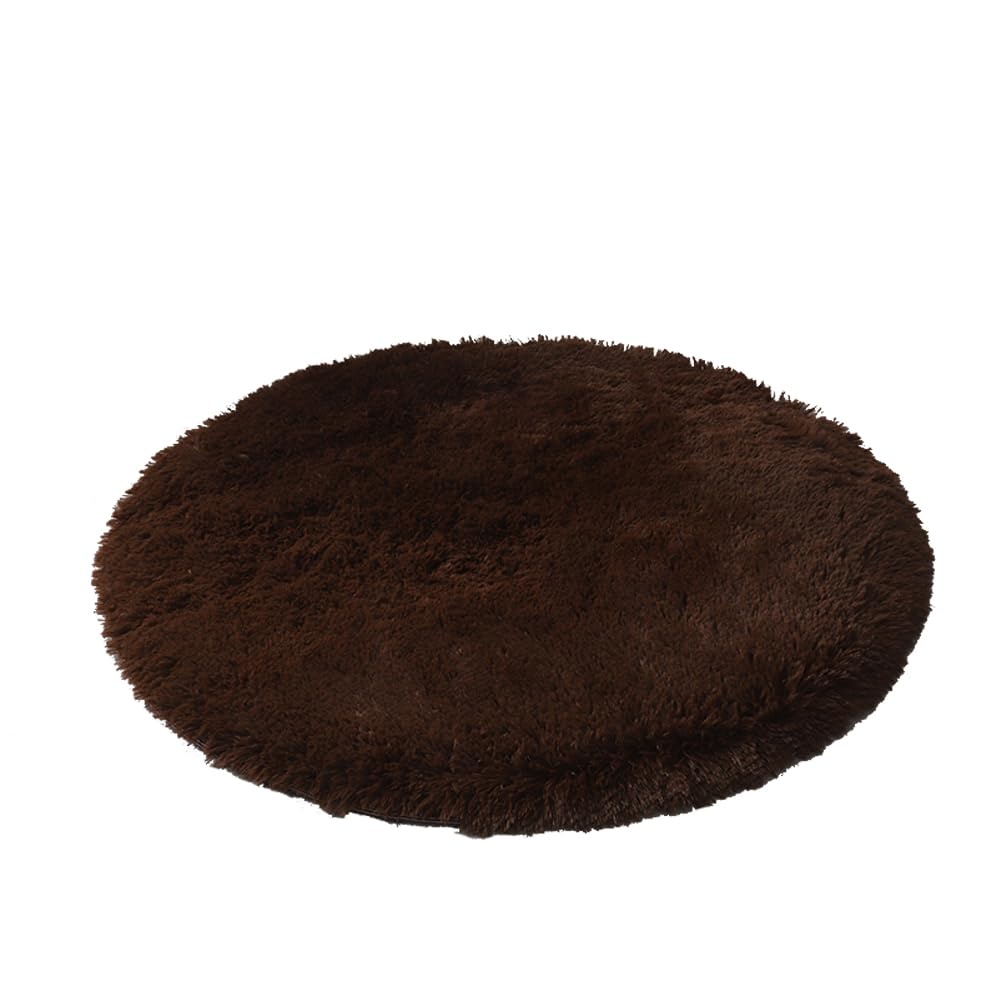 wykikon 洗える 丸型 ラグマット カーペット じゅうたん マット オールシーズン シャギーラグ 中敷マット ソファーマット チェアマット 円形 絨毯 滑り止め付 丸型 冬用 夏用 床暖房対応 (コーヒー,直径60cm)