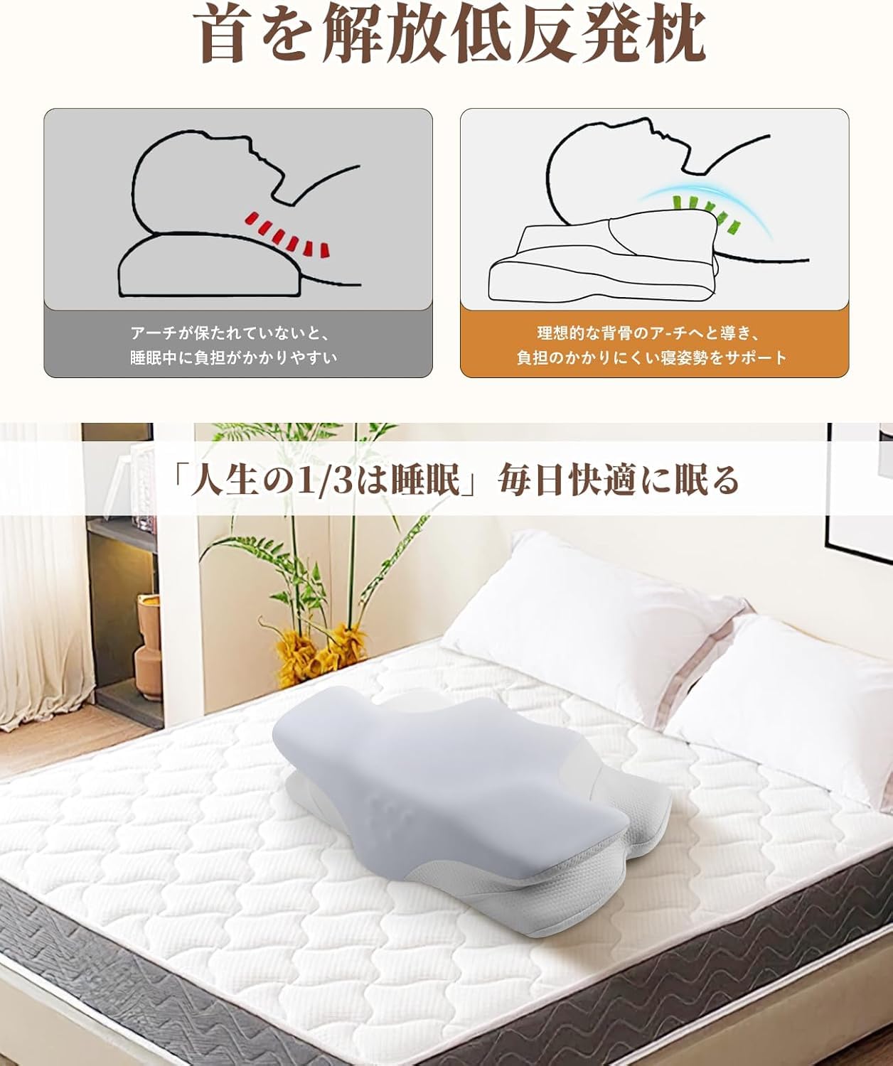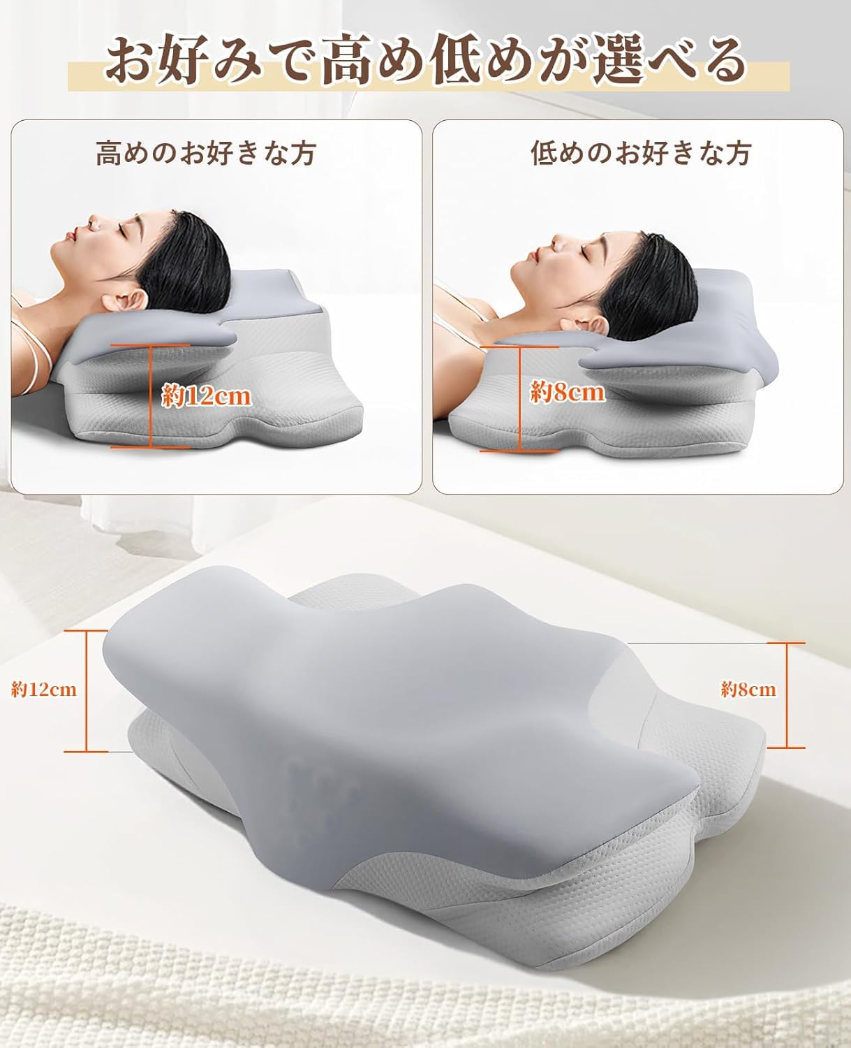 枕 首が痛くならない まくら 快眠 低反発枕: 仰向け寝 横向き寝 肩がラク 安眠枕 低め 高め調整可 pillow 洗える枕カバー 父の日/母の日/誕生日/クリスマス プレゼント 薄い灰色