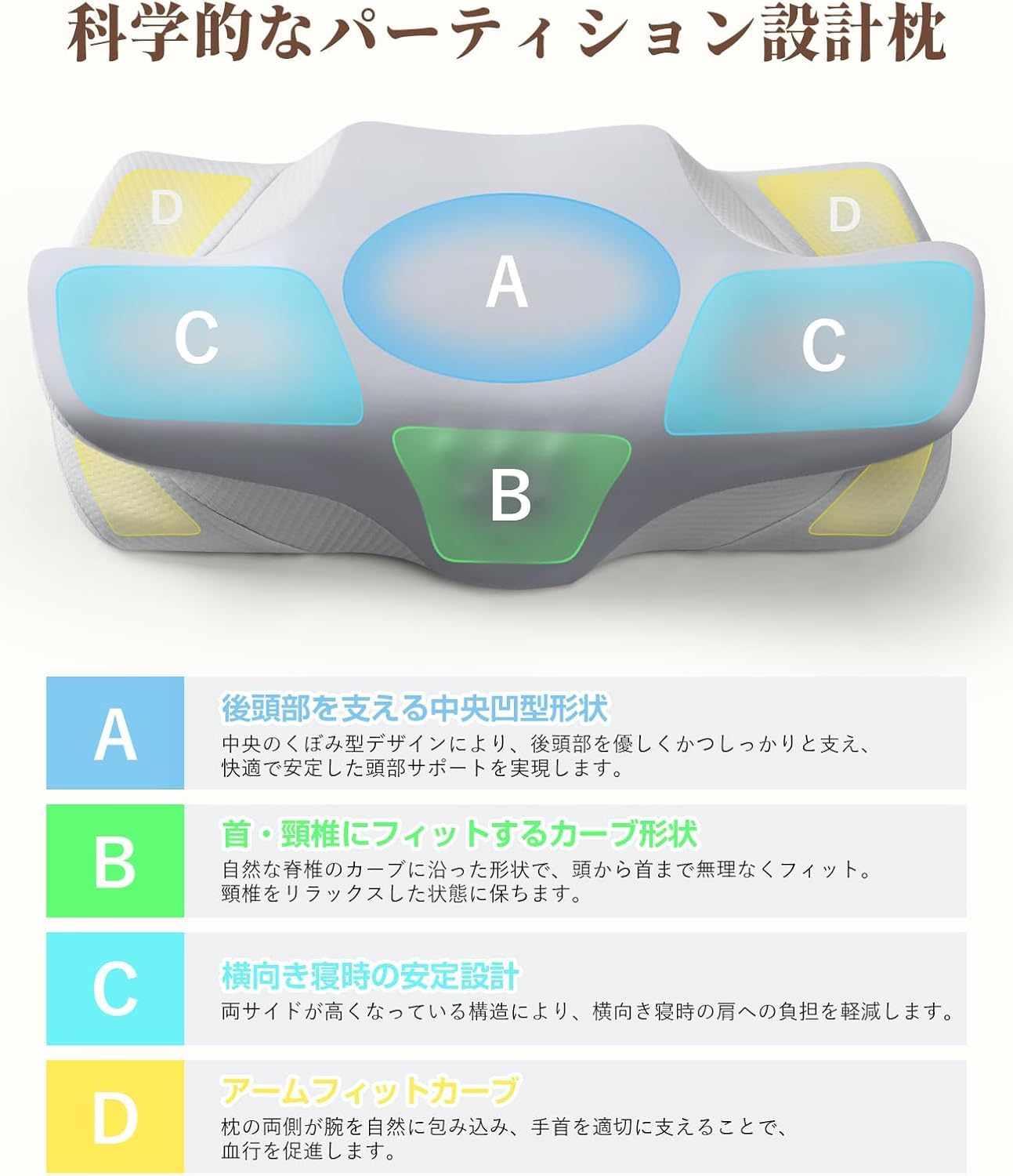 枕 肩がラク 低反発 枕 首が痛くならない 人気 中空設計 頭 高さ調節可能仰向き 横向き プレゼント 柔らか 肩が軽くなるまくら 頚椎サポート通気性 バー洗濯可
