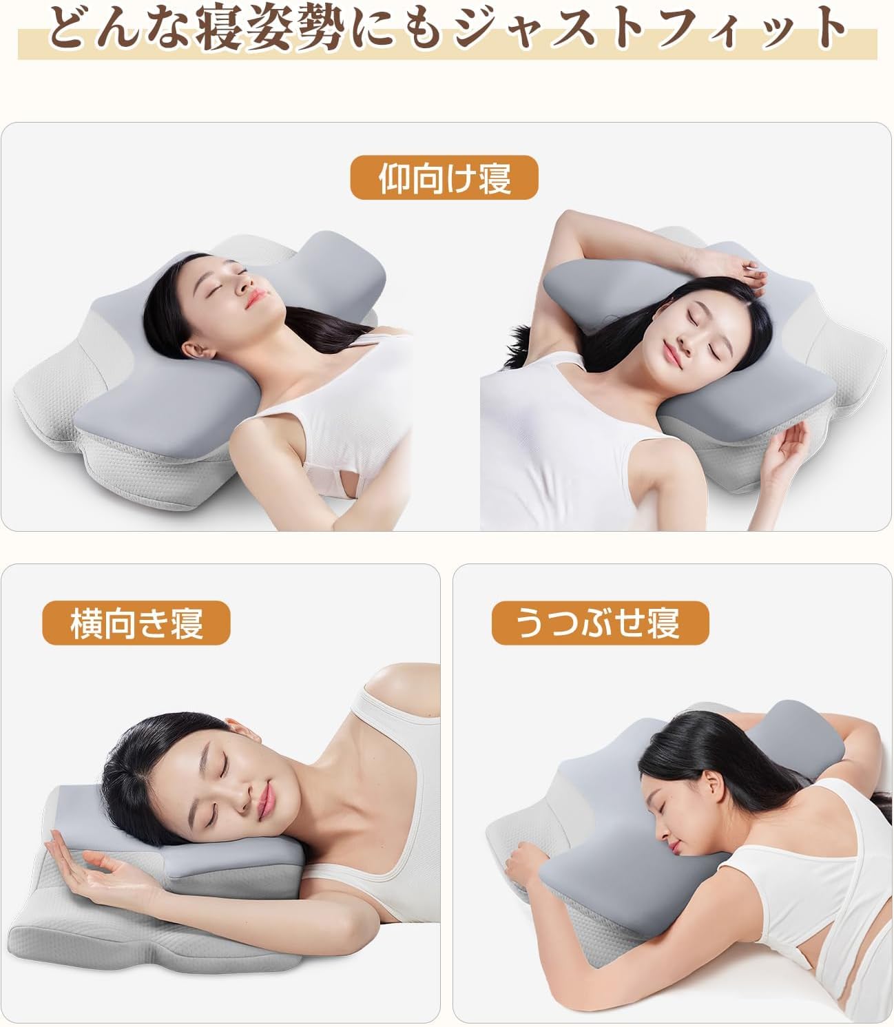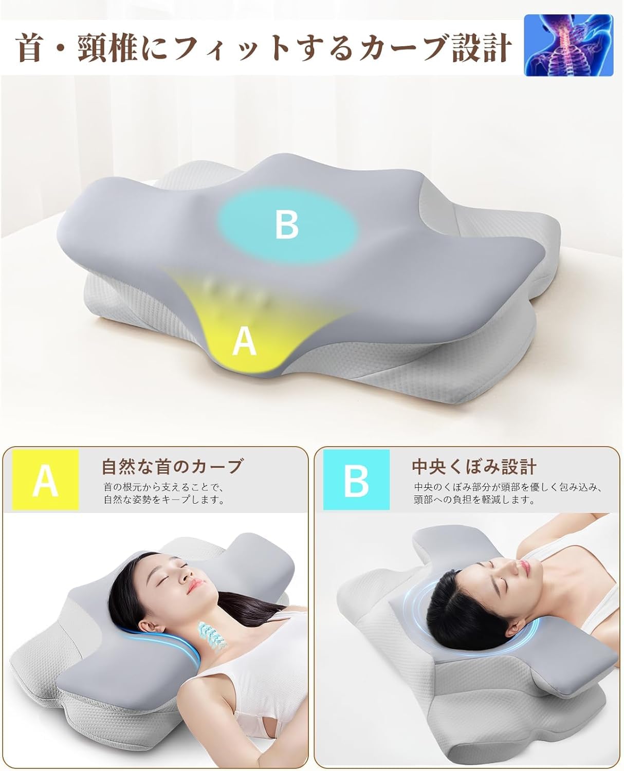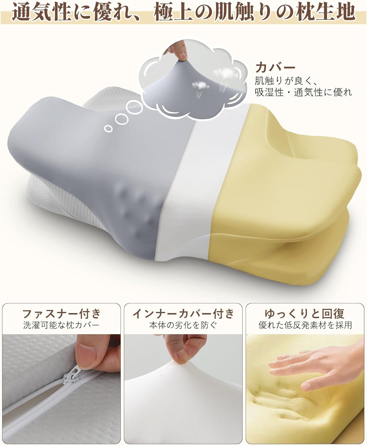 枕 首が痛くならない まくら 低反発枕 安眠枕 仰向け寝 横向き寝 快眠枕 肩がラク 安眠 よく眠れる 低め 高め調整可 pillow 洗える枕カバー 父の日/母の日 誕生日/クリスマス プレゼント グレー