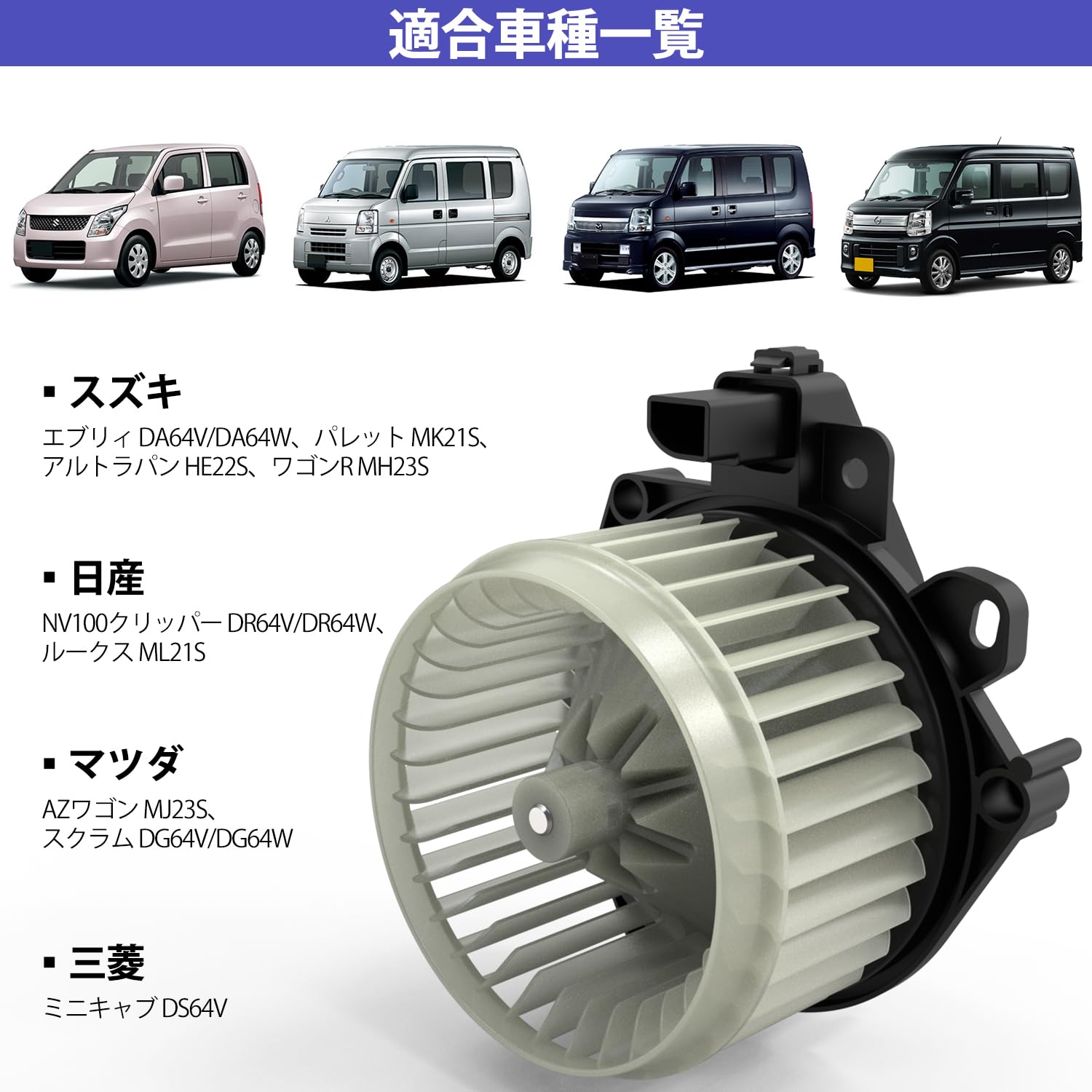 ブロアモーター エブリィ DA64V DA64W ワゴンR MH23S NVクリッパーDR64V DR64W AZワゴンMJ23S ミニキャブDS64V 品番74250-82K00 74250-82K01 74250-82K02 27226-4A00H
