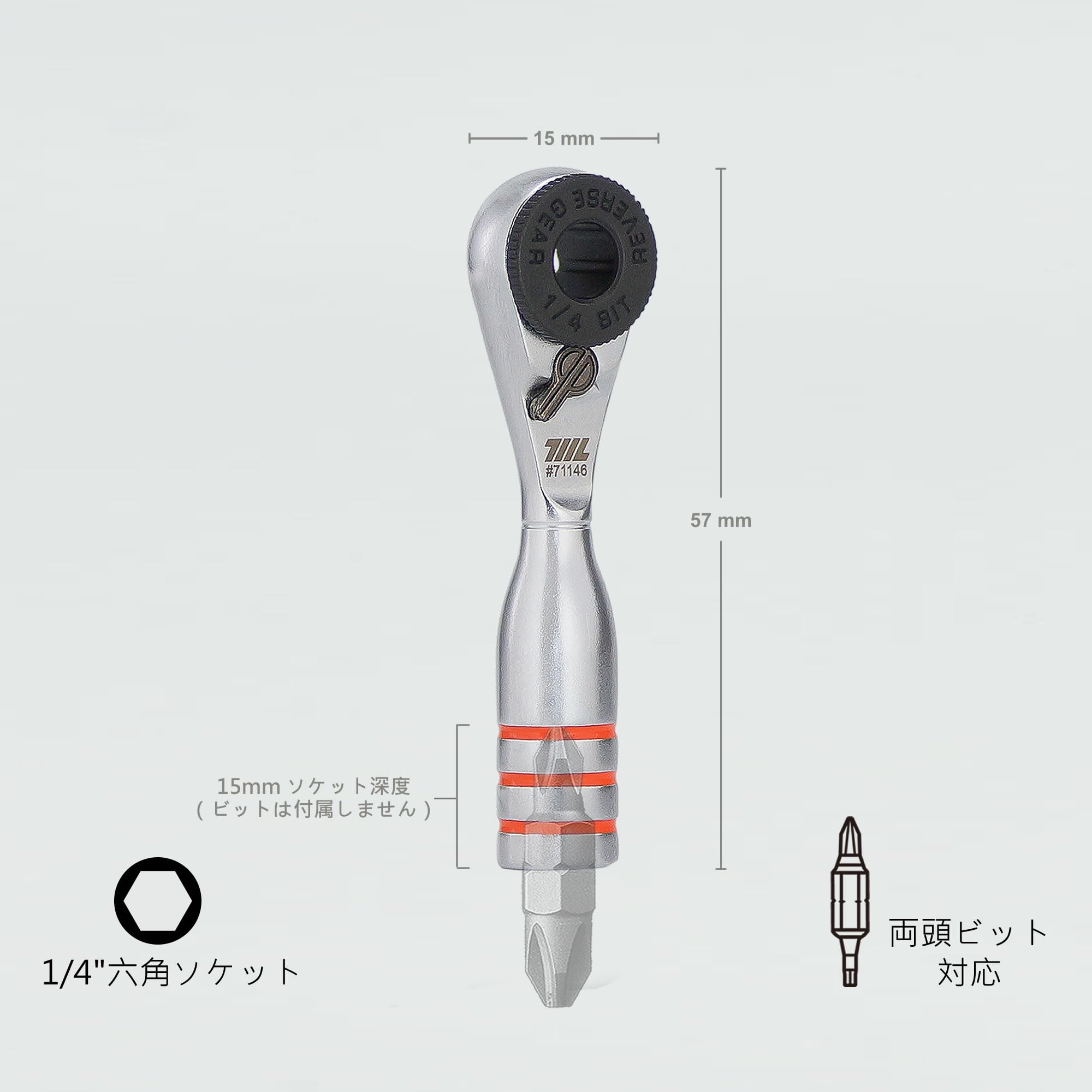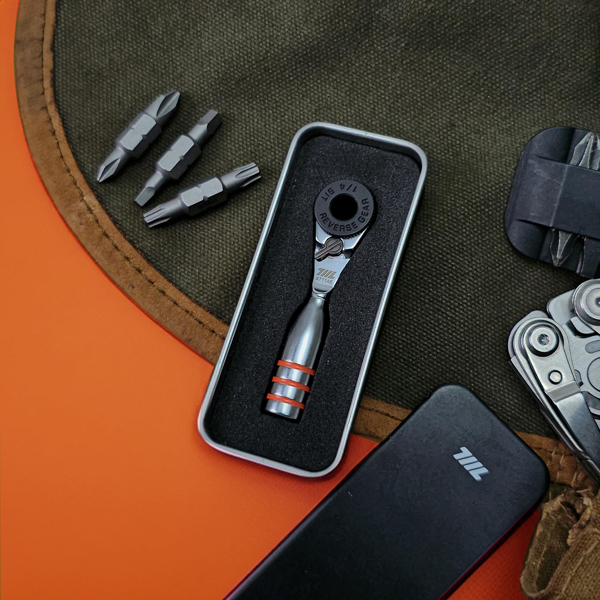 711L ミニラチェットレンチ TG – 世界最小クラスの1/4インチ EDCラチェットレンチ – ステンレス製 – 両頭ビット対応 – 狭所作業に最適