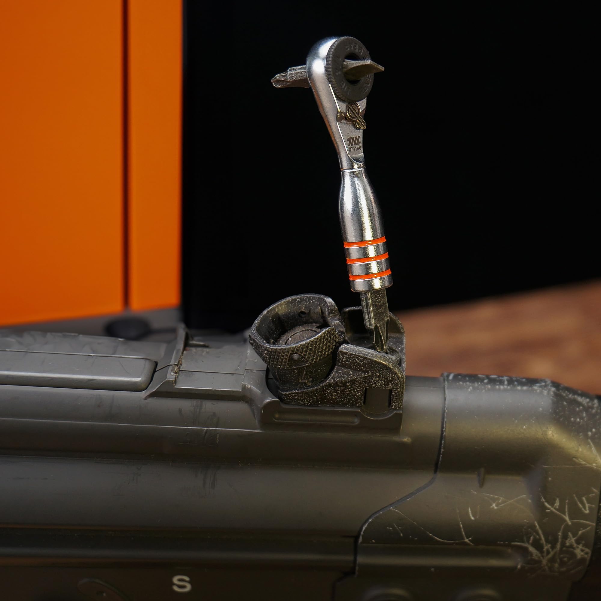 世界最小クラスの 711L ミニラチェットレンチ DUO が登場。本製品は、32mmの両頭ビットおよび標準的な25mmの1/4インチビットの両方に対応した、非常に汎用性の高いツールです。 全長わずか約5.3cm(2インチ)という超コンパクト設計により、従来の大きなレンチでは決して届かないような、極めて狭い場所での作業を可能にします。プロのメカニックからDIY愛好家まで、あらゆる方のツールコレクションに欠かせないアイテムとなるでしょう。 エンジンルームでのボルト締めから、複雑な電子機器の組み立てまで、強度を犠牲にすることなく、必要な精度と機動性を提供します。革新的なデザインと堅牢な構造を兼ね備えたこのレンチがあれば、どんなに小さなタスクも、大きな課題もスムーズに解決できます。 711Lの優れたエンジニアリングをぜひ体験し、あなたのツールキットをより高いレベルへとアップグレードしてください。