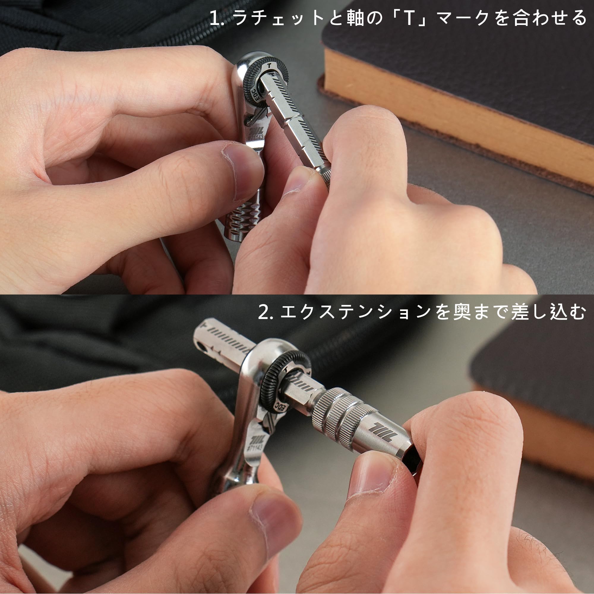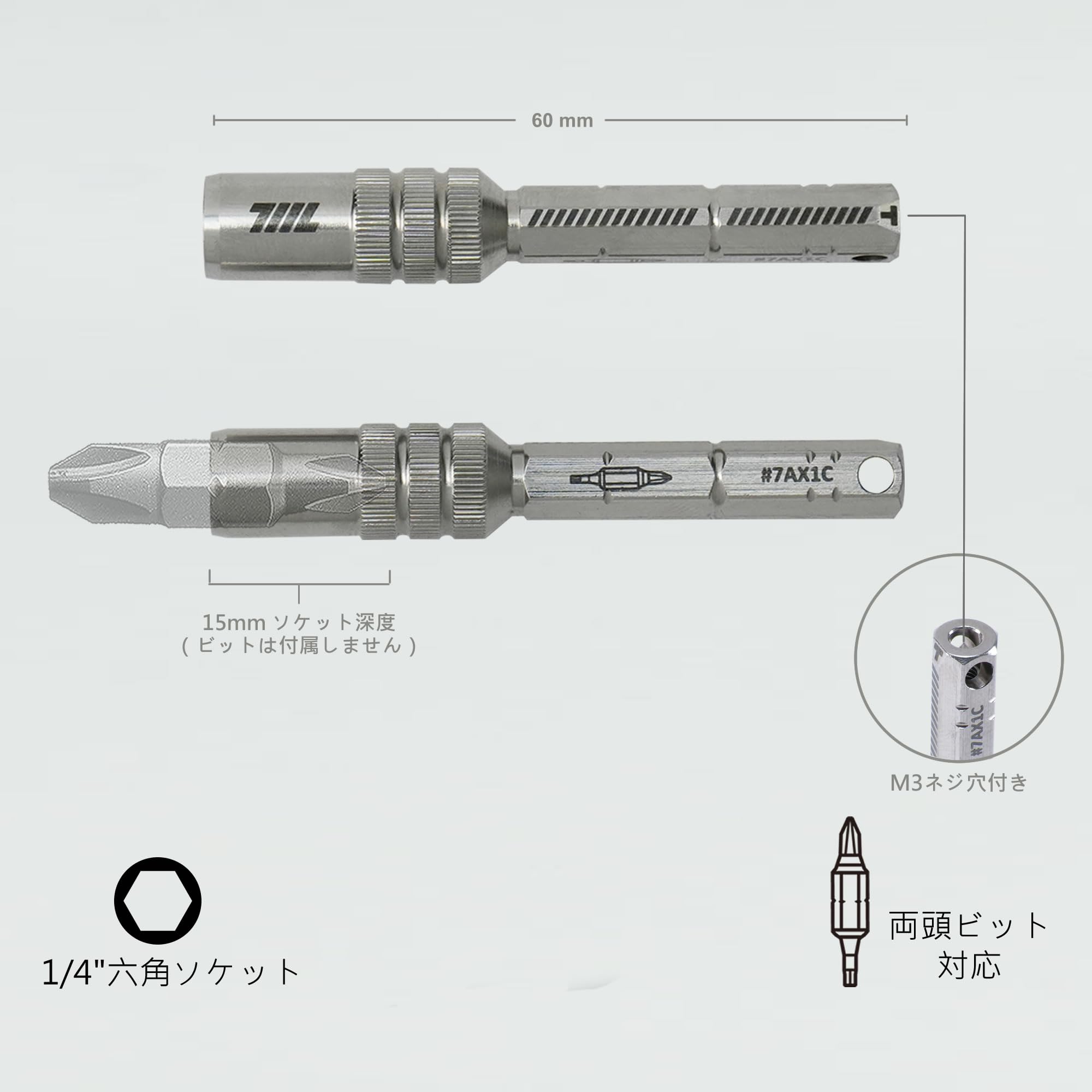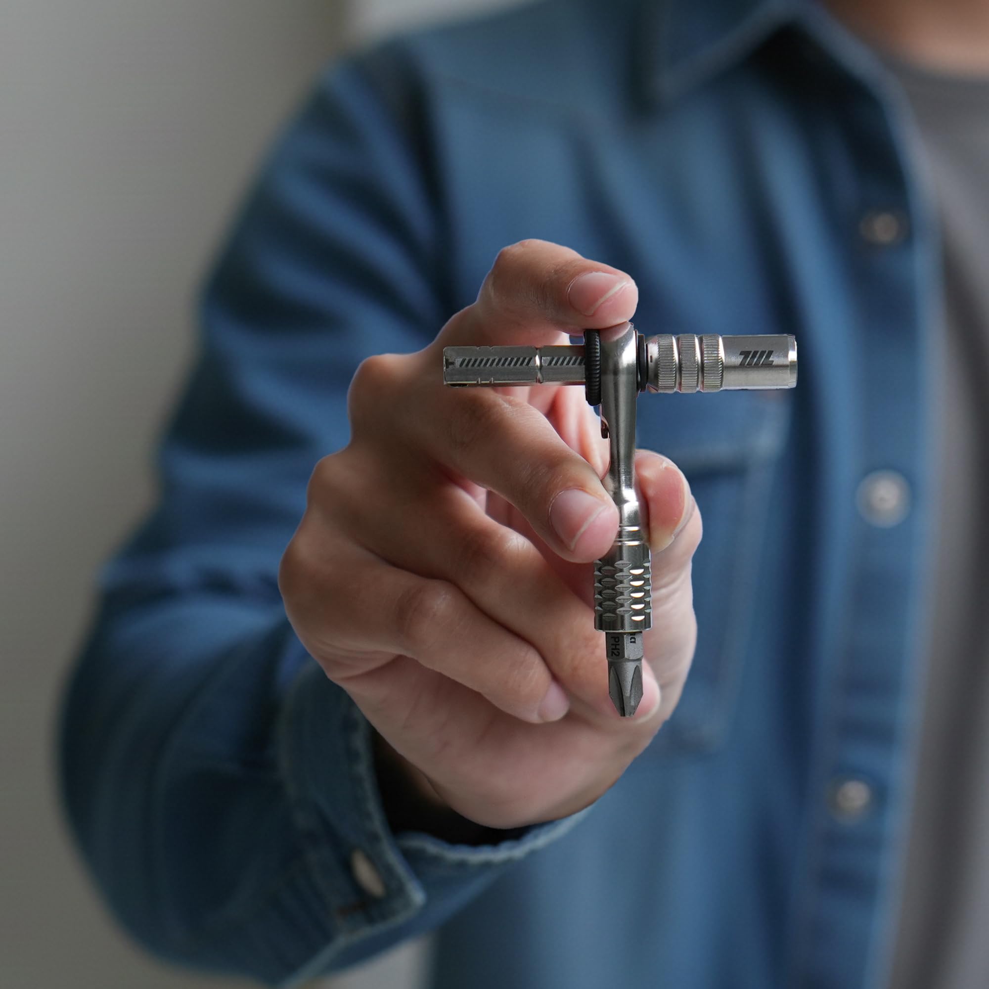 よりコンパクトで高性能なEDCツールを求めているなら、この711L 磁気ビット延長アダプターは、あなたのキットに永続的な居場所を確保する価値のあるアップグレードです。15mmのディープソケットは、標準ビットから両頭ビット、さらには長めの片頭ビットまで余裕を持って対応。持ち運ぶ工具を増やすことなく、対応範囲を広げることができます。 このアダプターの真骨頂は、その巧妙な3-in-1デザインにあります。711L ミニラチェットレンチや Flex HEX とスナップ接続することで、延長モード、T型ハンドルモード、L型ハンドルモードを使い分け、小さなフットプリントで強力なトルク制御を可能にします。 素材には耐食性に優れたステンレス鋼を使用し、表面には滑りにくいローレット加工を施しているため、オイルで汚れた手や作業用手袋越しでも安定した操作感を維持します。また、M3ネジ穴とキーリング接続点を備えており、ランヤードやクリップを取り付けるなど、ユーザー好みのカスタマイズも自由自在です。 すべての711L製品と同様に、本製品は台湾で精密に製造されており、お手持ちの他のギアとシームレスに連携するように設計されています。