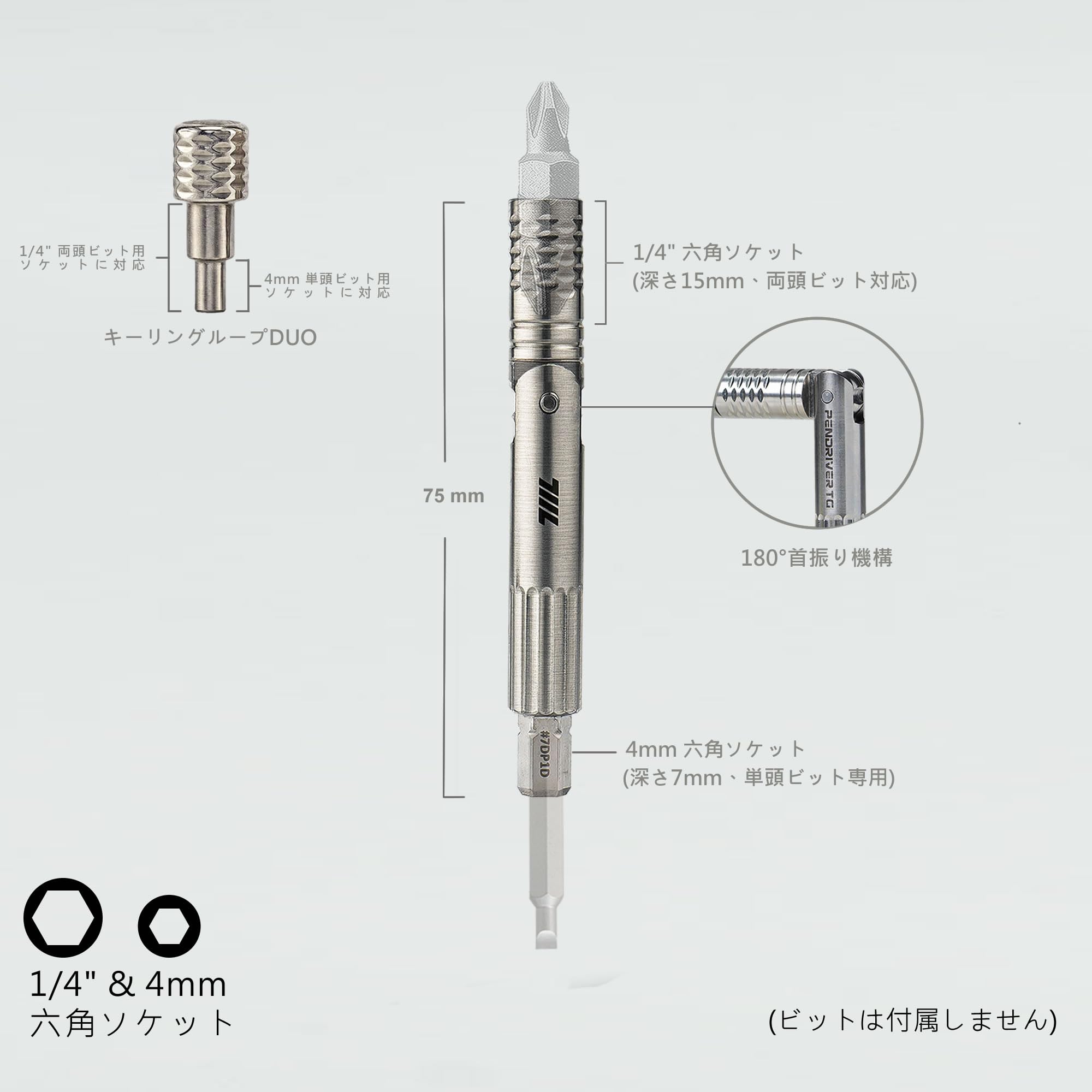 711L Pen Driver TG - 折りたたみ式L字ハンドル 4mm精密ビット & 1/4インチ両頭ビット対応 超小型 EDC ドライバー 7DP1D