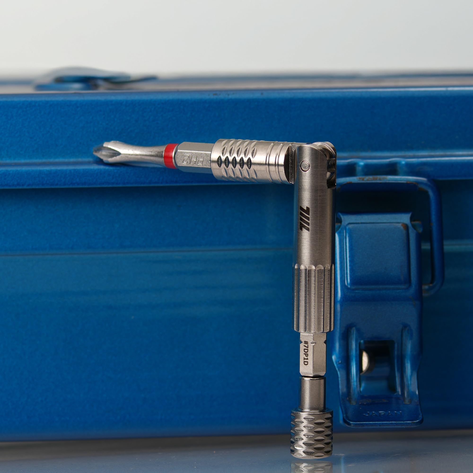 711L Pen Driver TG は、毎日持ち歩きたくなる実用性を追求したドライバーです。わずか43gの軽量・ポケットサイズながら、4mm精密ビットと1/4インチ六角ビットの両方に対応し、電子機器の調整から家具の組み立てまで幅広く活躍します。15mmの深型ソケット構造により、両頭ビットも使用可能で、携帯するビット数を減らしながら、より多くの作業に対応できます。工具箱の代わりになることを目指した製品ではなく、「必要なときにすぐ使える、信頼できる一本」を持つためのツールです。 このツールの特長は、高い適応力にあります。軽作業ではペン型グリップによる指先での素早い回転操作が可能で、より強いトルクが必要な場面では、Lハンドル形状に展開することで、固いネジにも確実に力を伝えられます。ダイヤモンドカット加工を施したステンレススチール製ボディは、しっかりとした握り心地と高い耐久性を備え、日常使用でも錆びにくい設計です。 Pen Driver TG は、台湾の工具愛好家によって設計された 711L ツールエコシステムの一部です。単体でも優れた性能を発揮しますが、他の 711L 精密工具と組み合わせることで、用途に応じて機能を拡張できるモジュラー構成となっており、必要な分だけ揃えて自分だけのキットを構築できます。