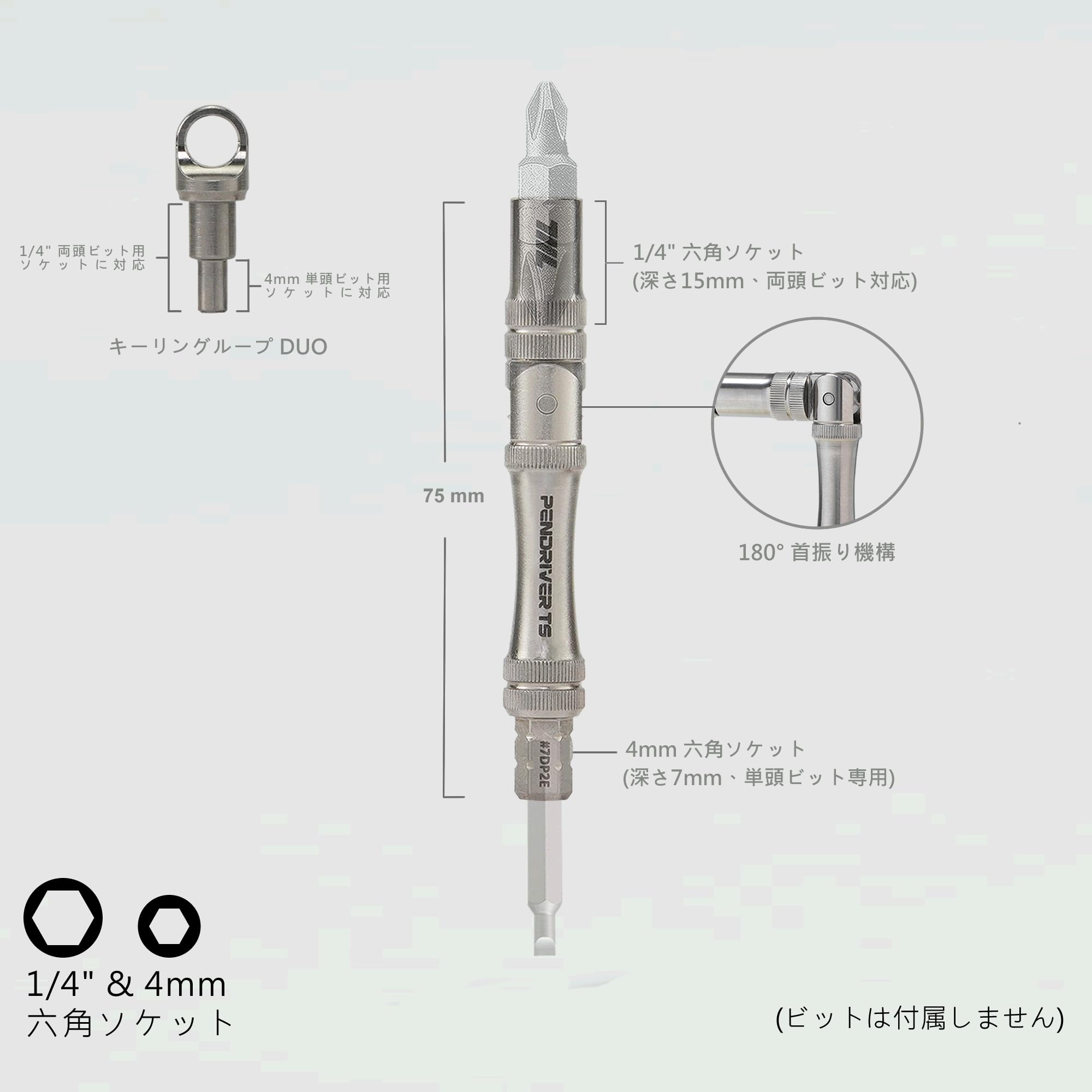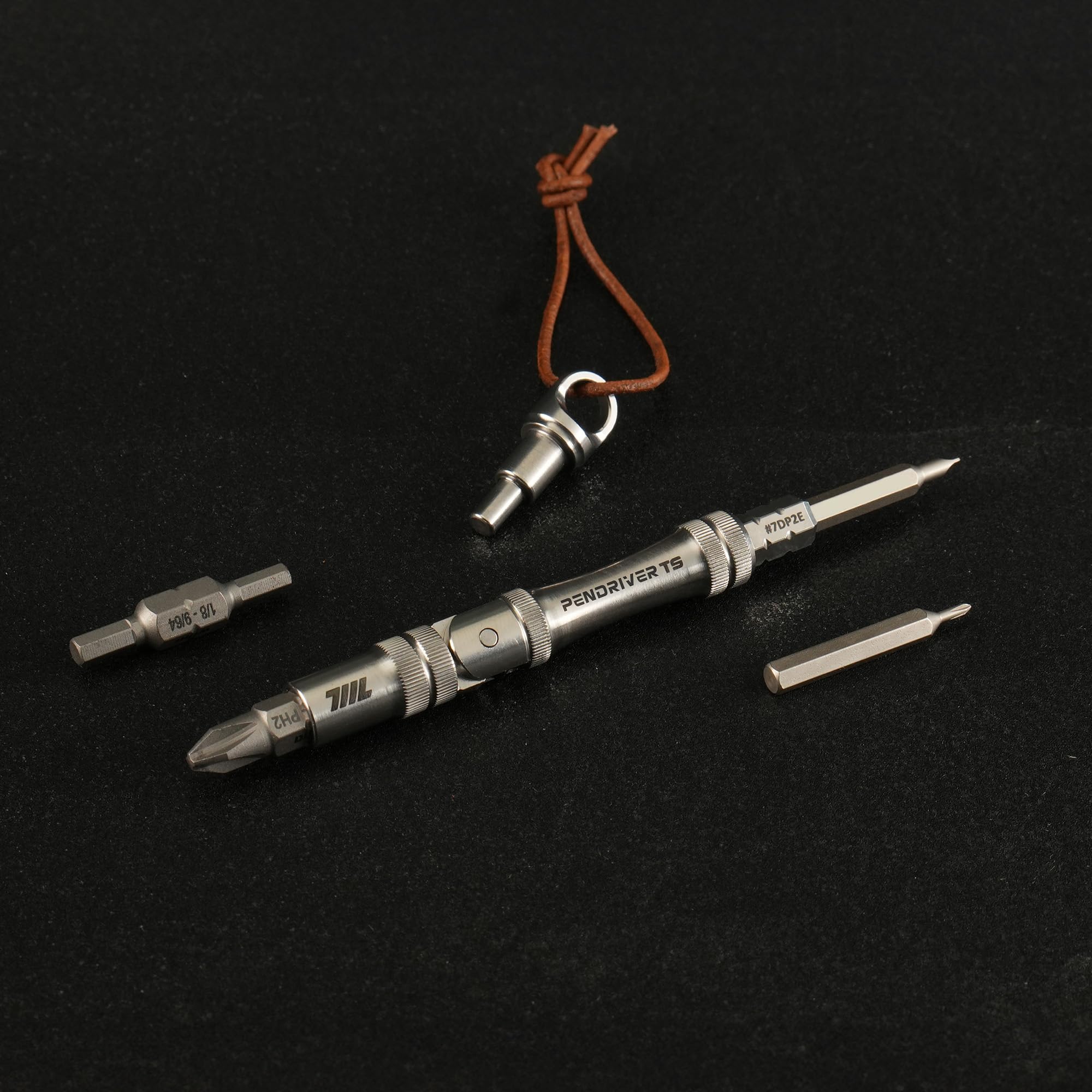 711L Pen Driver TS - 折りたたみ式L字ハンドル & ストラップホールキャップ付 コンパクト EDC ビットドライバー | 4mmビット & 1/4インチ両頭ビット対応 | 7DP2E