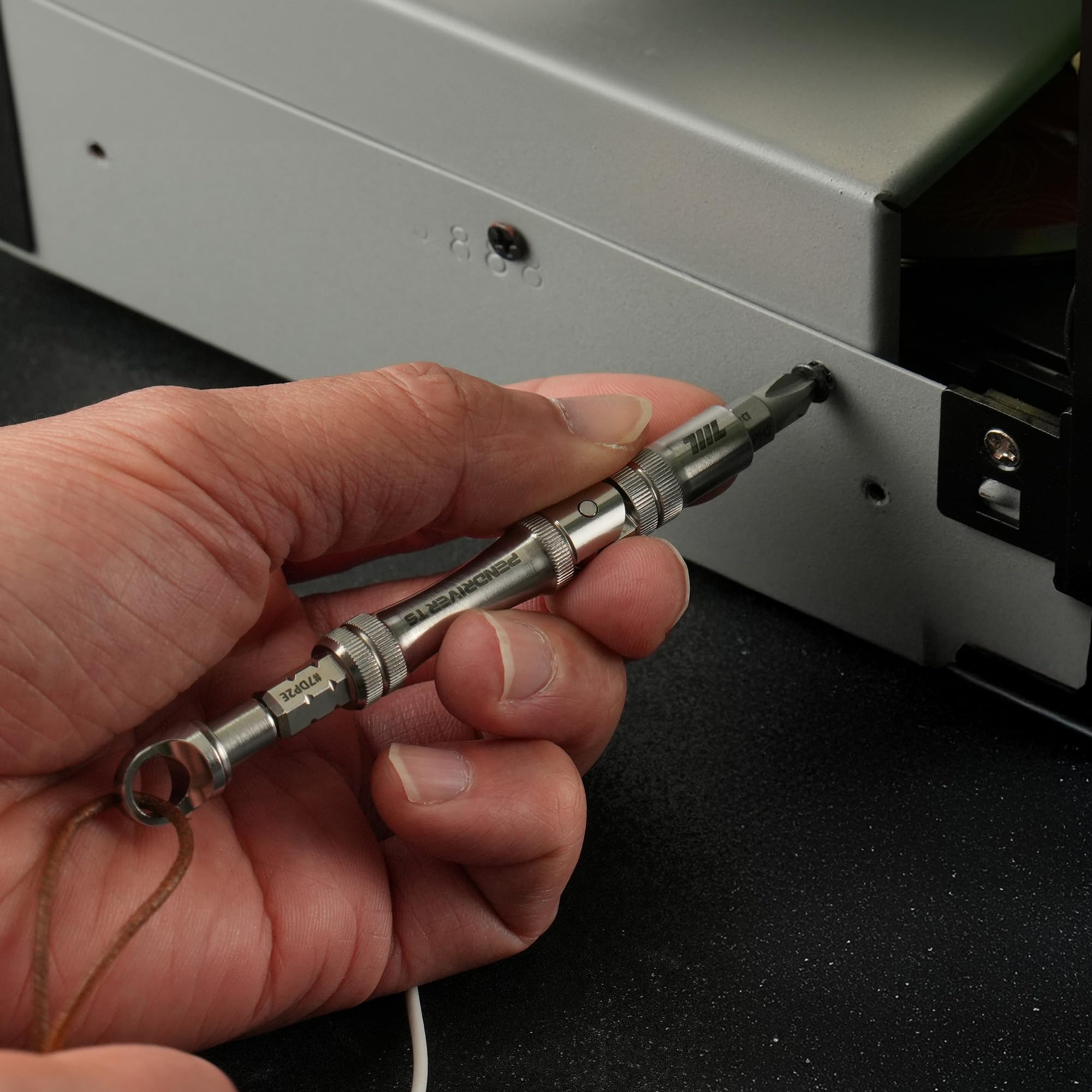 711L Pen Driver TS は、毎日持ち歩きたくなる究極の「EDC(毎日持ち歩く)」ドライバーです。わずか 43g のポケットサイズ ながら、4mm 精密ビットと 1/4 インチ六角ビットの両方に対応しており、電子機器の微調整から家具の組み立てまでこれ一本で完結します。 15mm の深いソケット設計により、両頭ビット(ダブルエンドビット) も確実に保持できるため、持ち運ぶビットの数を最小限に抑えつつ、より多くの作業をこなせます,。このツールは単なる工具箱の代用品ではなく、必要な時にいつでも本格的な作業を可能にする、あなたの「頼れる相棒」となるでしょう。 最大の特徴はその適応力にあります。軽い作業には指先で素早く回せるペン型として、固いネジを回す際にはハンドルを折りたたんで L 字型にすることで、強力なトルク(てこの原理) をかけることができます,。ダイヤモンドカットが施されたプレミアムステンレス製のボディは、手に馴染む質感と高い耐久性・耐食性を兼ね備えています。 また、本製品は台湾のツール愛好家によって設計された「711L モジュールエコシステム」の一部です,。他の 711L 精密ツールと組み合わせることで、ユーザーのニーズに合わせたカスタマイズキットへと拡張し、その機能をさらに引き出すことが可能です。