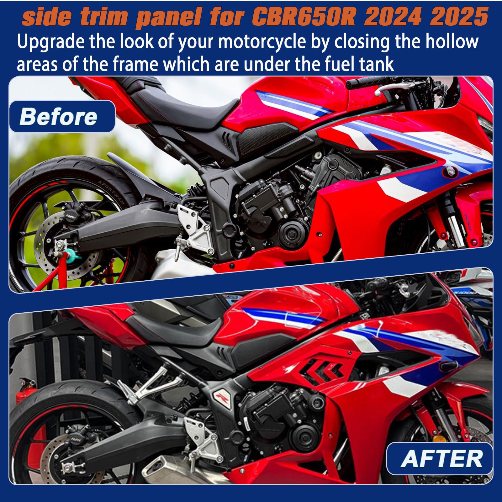 Midimttop サイドカウルカバー CBR650Rサイドフェアリングパネルプロテクタドレスアップ 左右セットレームカバー適用ホンダCBR 650R CBR 650 R 2024-2025ベイク部品 (レッド)