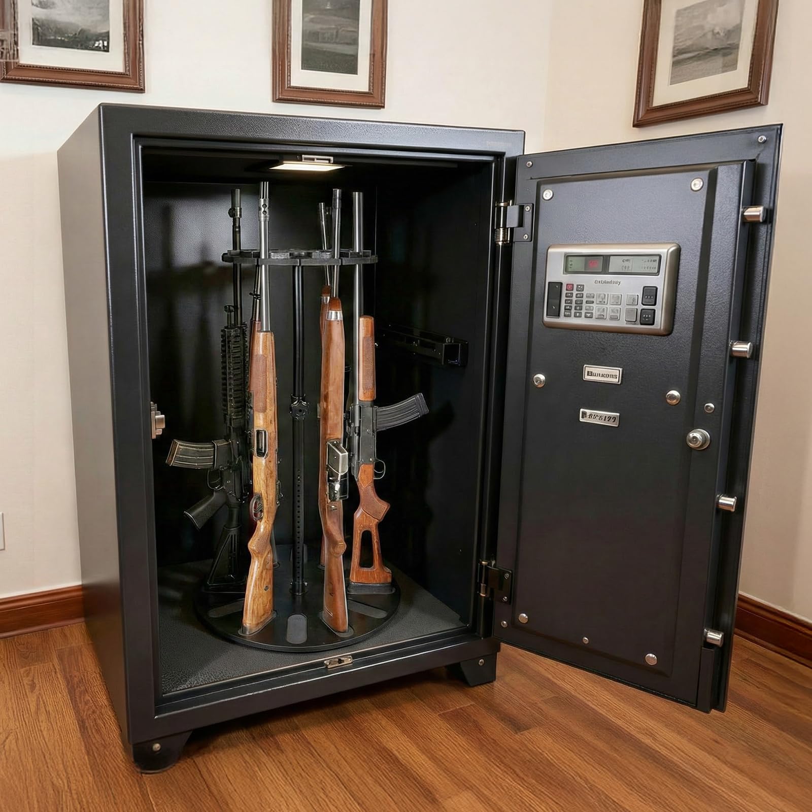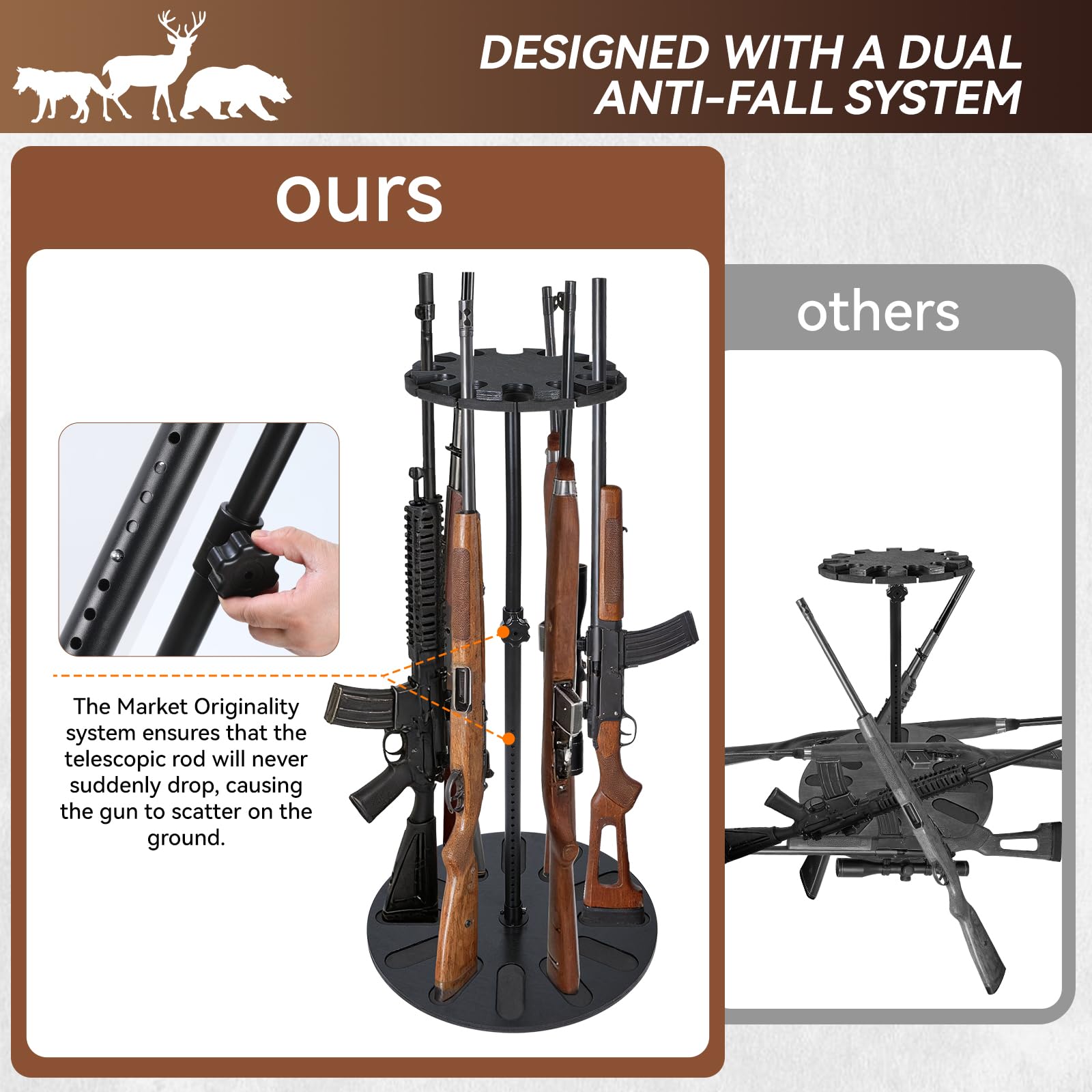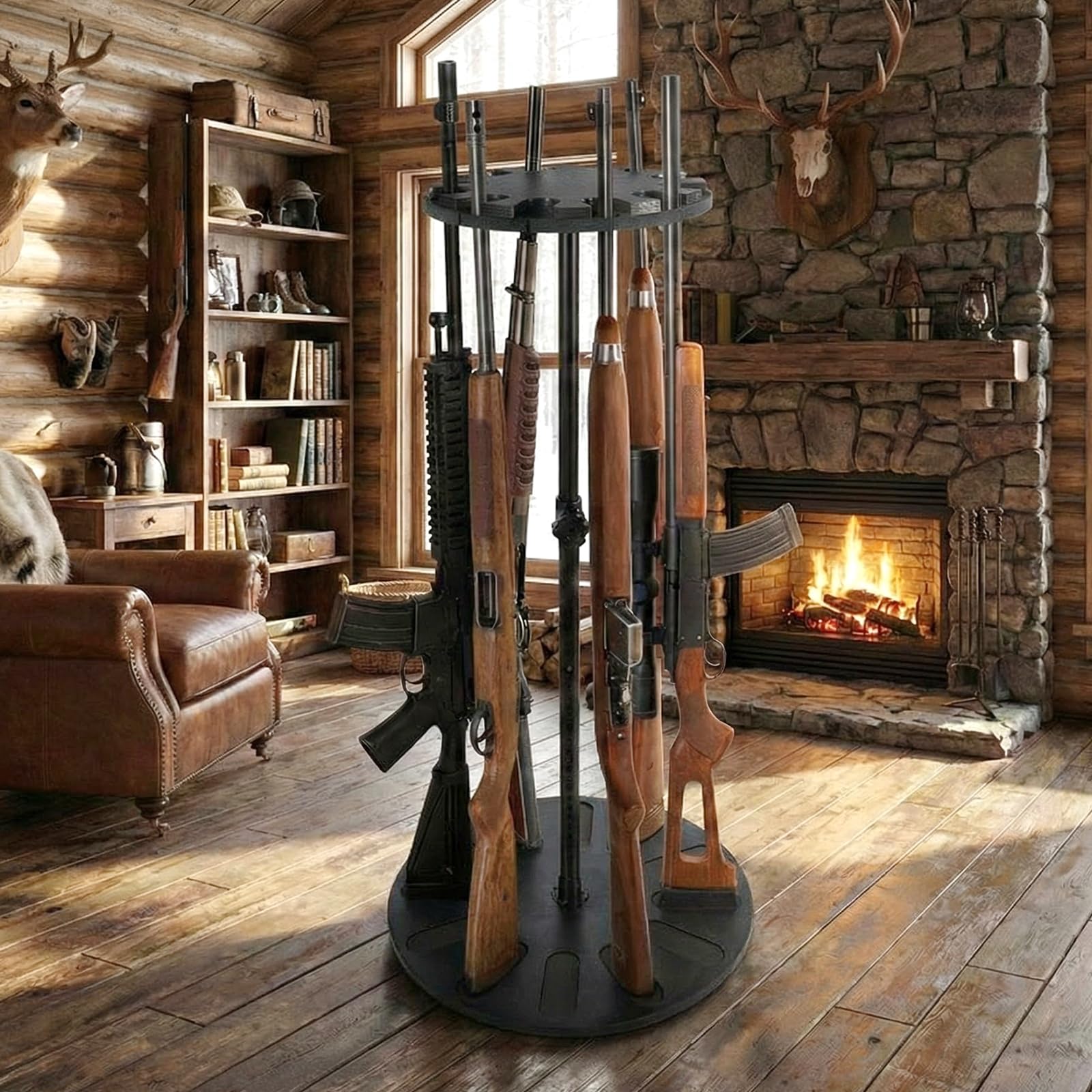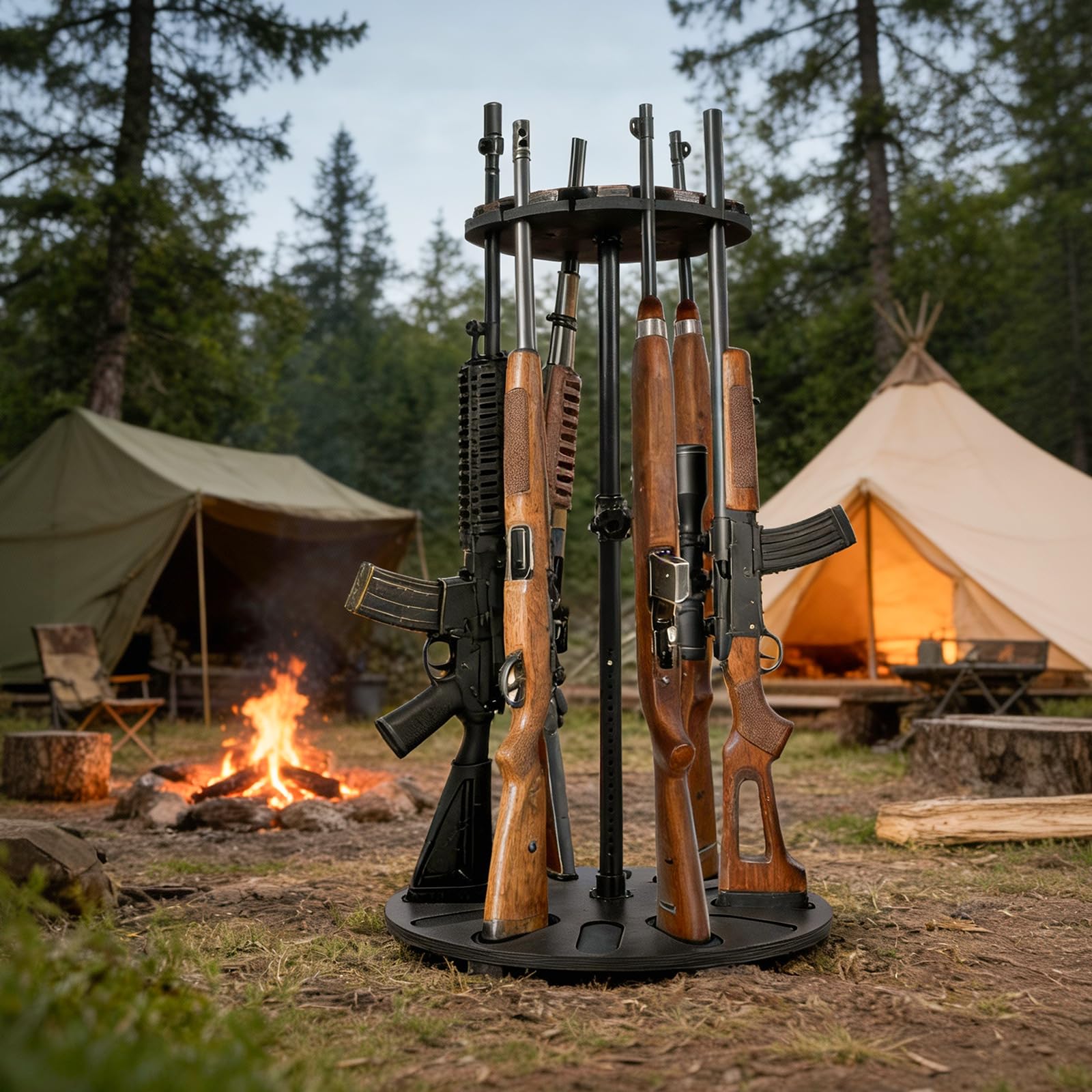 プレミアム360度回転ガンラック - 24段階高さ調節可能、12丁ライフル収納、再生可能な天然木&EVAパッド採用セキュア展示保管スタンド、銃器保管庫/ホルダー整理に最適