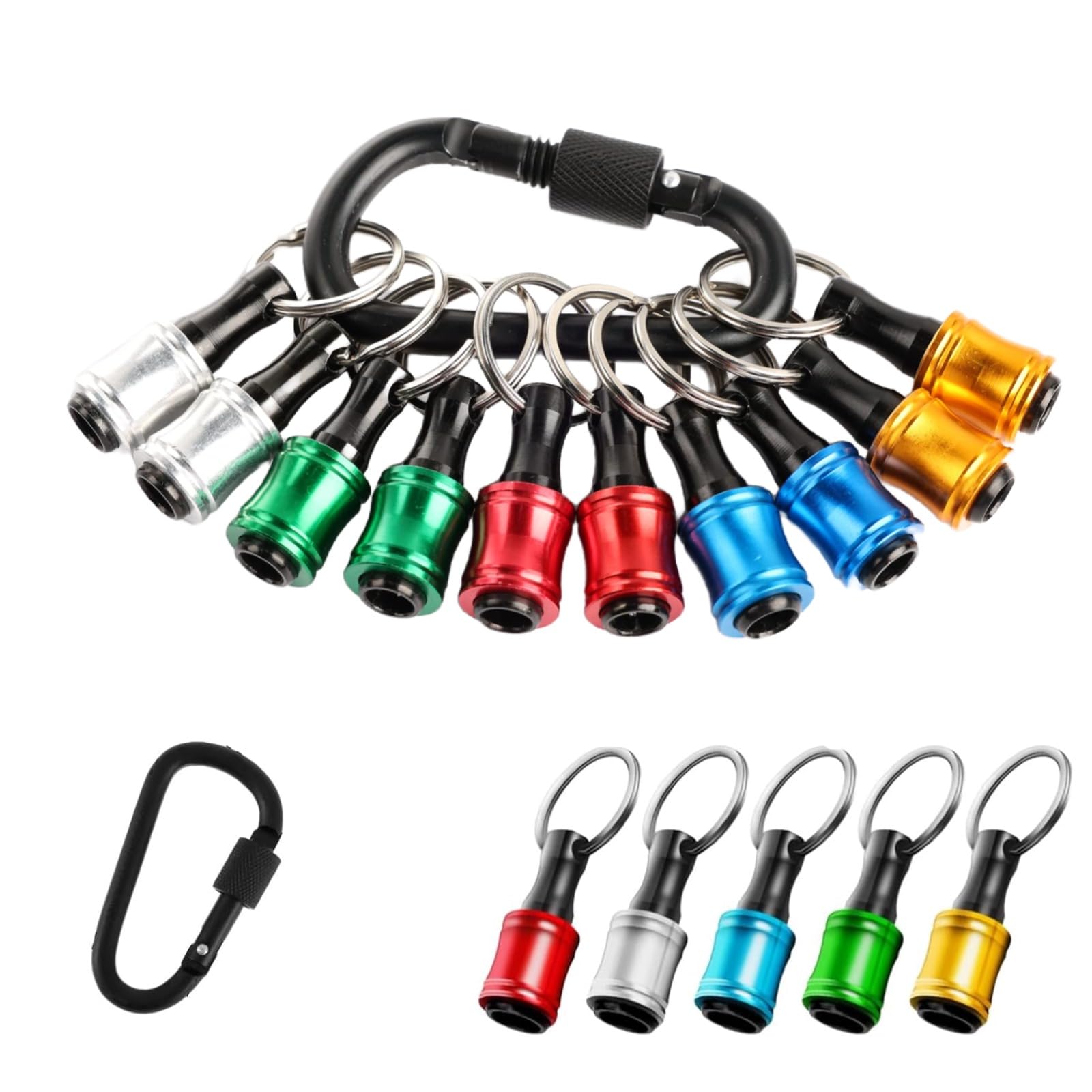 aninako ビットホルダー ビット ソケット ソケットビット 六角軸 1/4インチユニバーサル 5色 カラビナ付き 持ち運び キーホルダー型 簡単交換 バードリルスクリューアダプター ブラックカラビナ付き 多機能先端工具対応 (5色(10個)+登山用カラビナ)