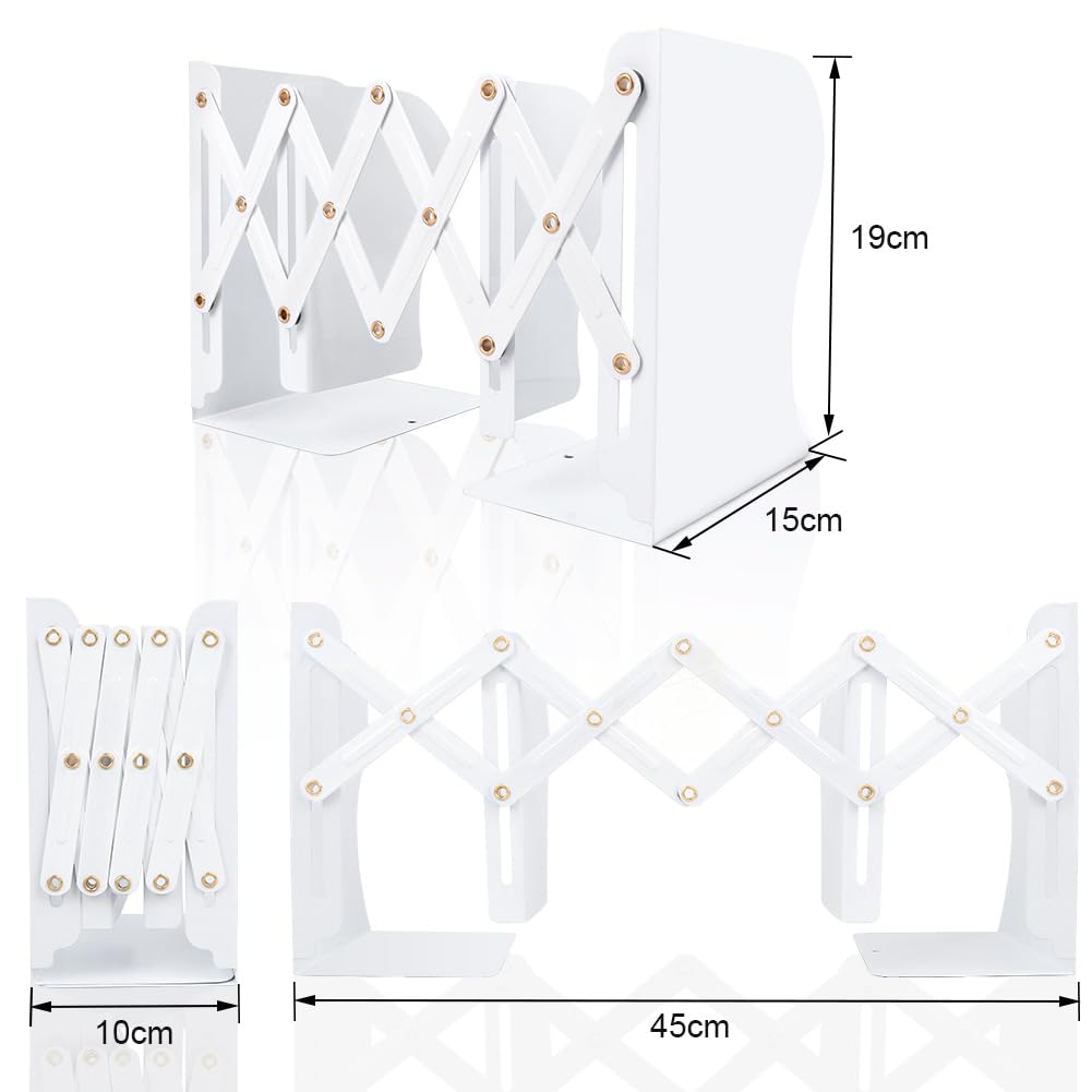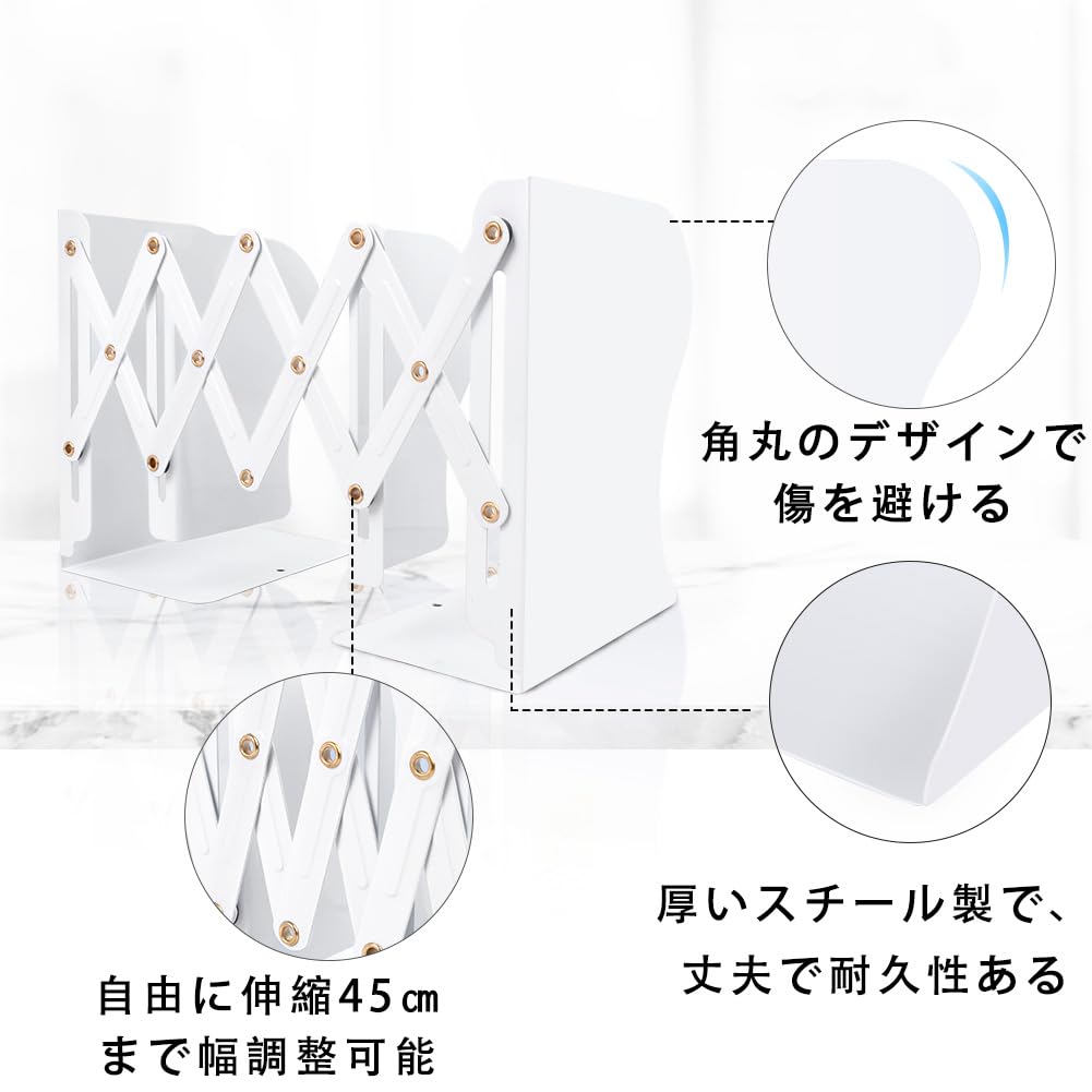 ブックエンド 本立て 伸縮自在 卓上収納 倒れない ブックスタンド 金属製 仕切りスタンド デスク整理 (ホワイト)