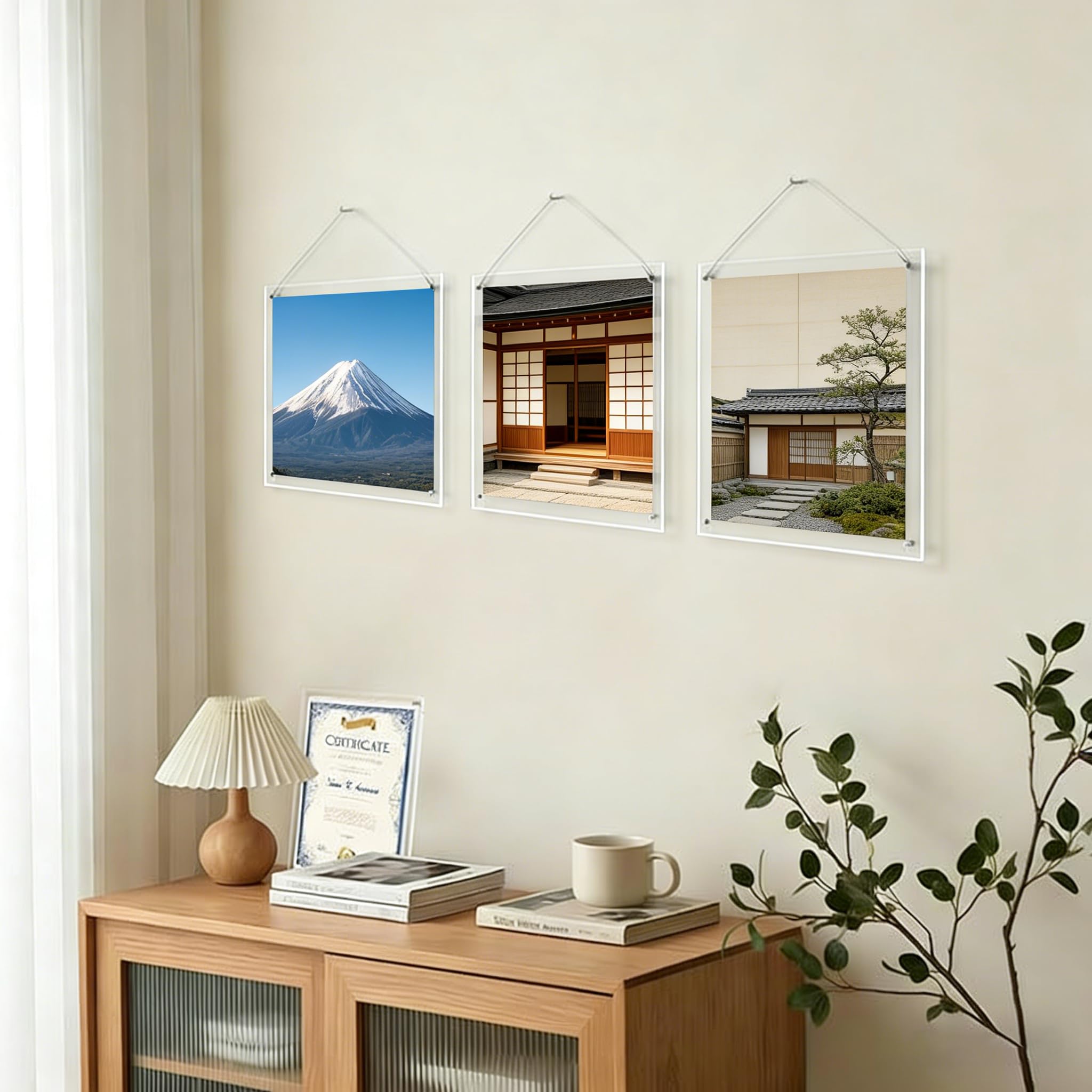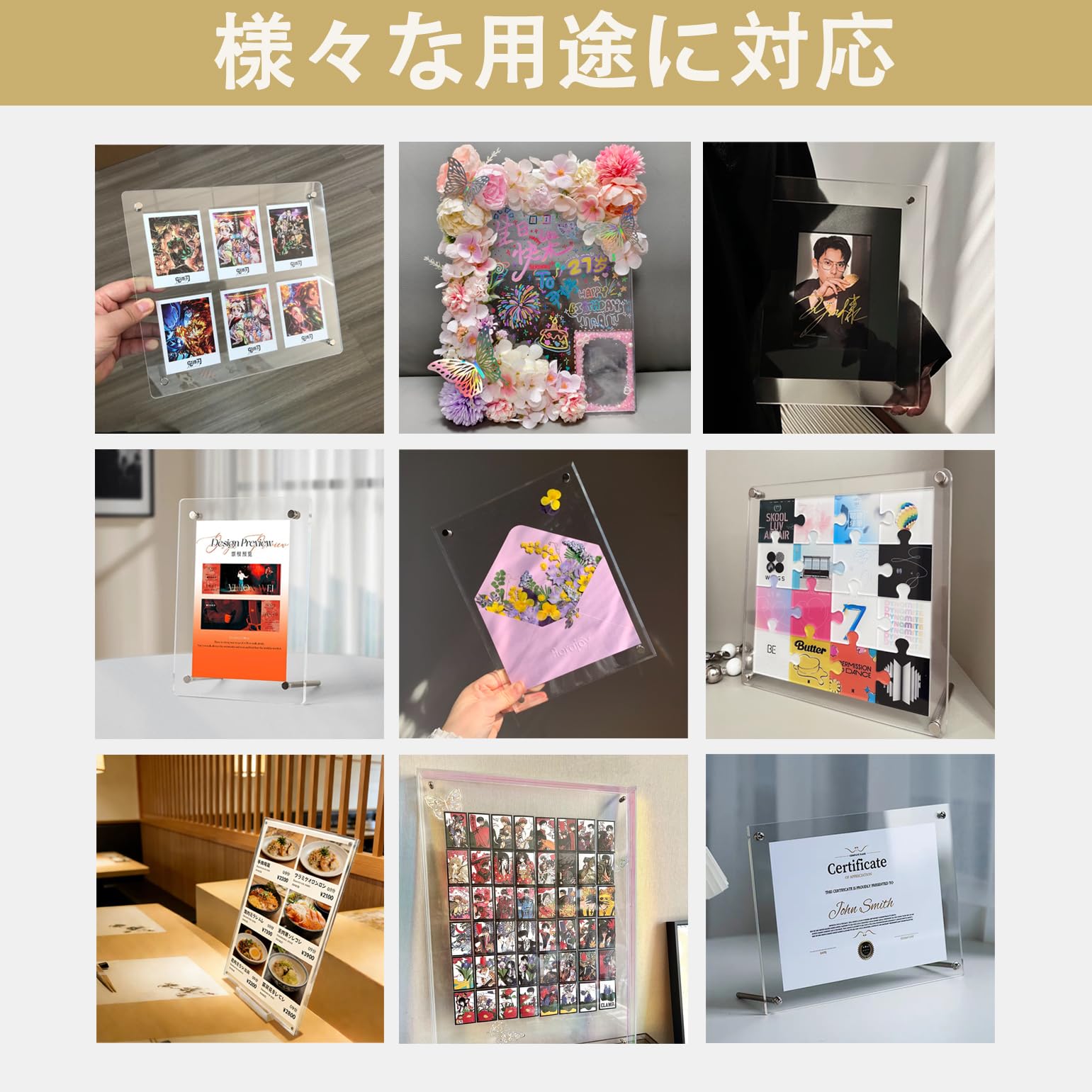 SOVQUEST A4 アクリルフォトフレーム – 証明書 写真賞状用 縦横切り替え可能 壁掛け・卓上両用 透明な写真立て チェーン&金具付属 オフィス・自宅・ギフトに最適(2個)