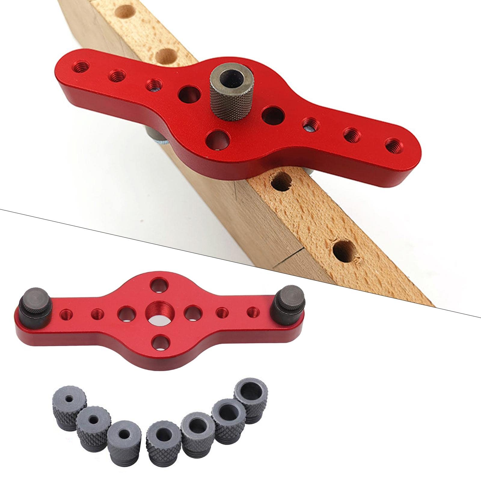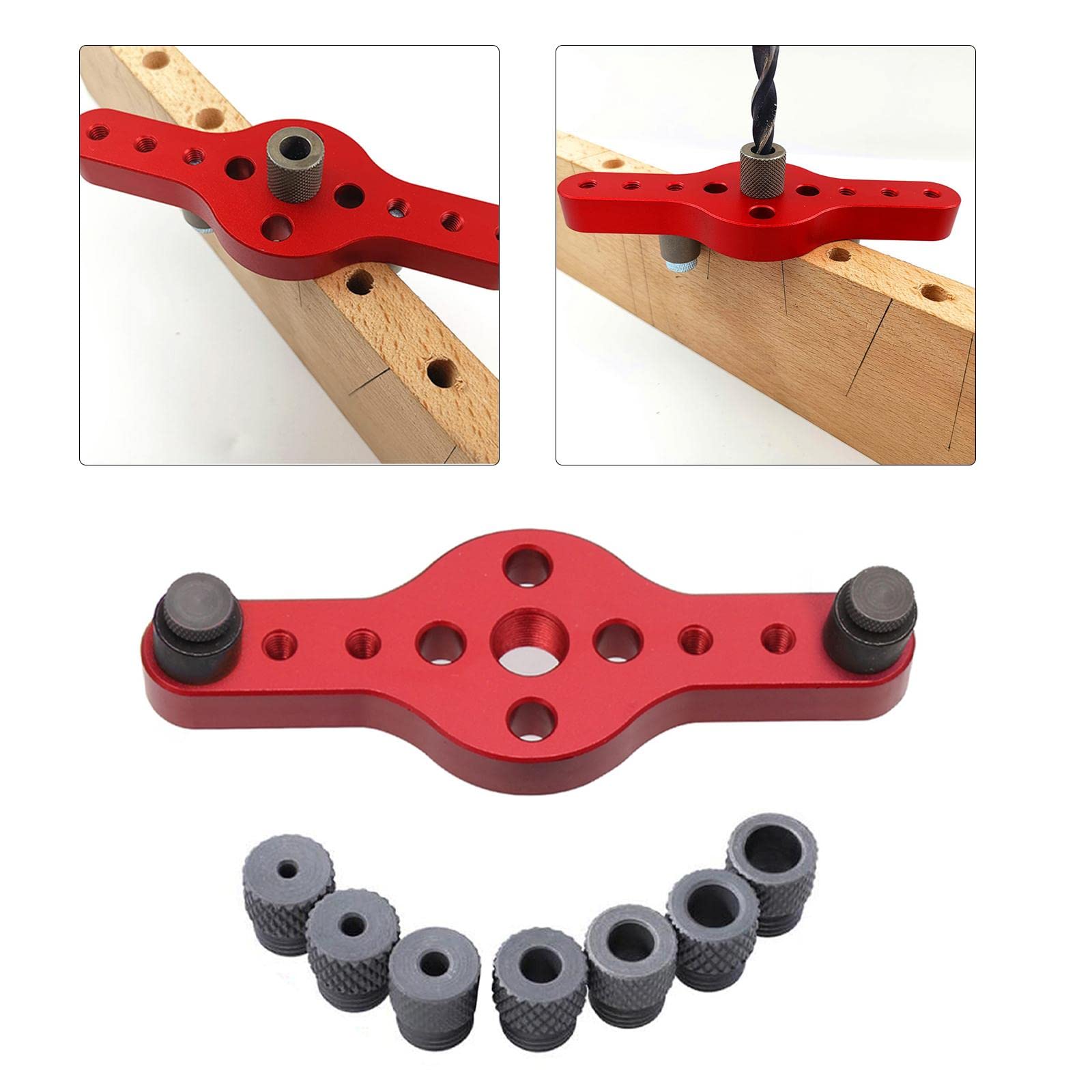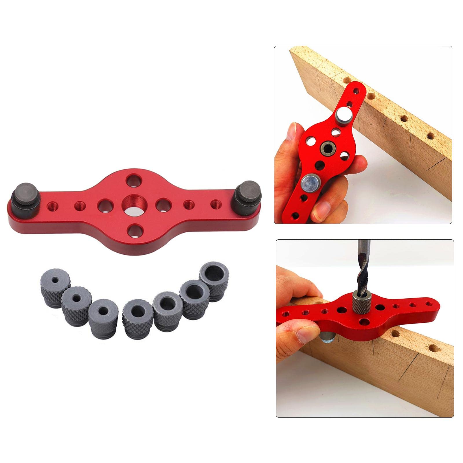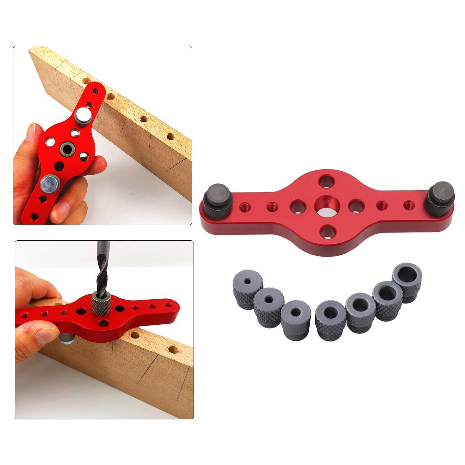 Milageto ドリルガイド 中心出し 穴あけドリルガイド 垂直 穴あけ 2/3/4/5/6/8/10mm 木工ツール ダボ穴あけガイド 冶具 ジグセルフセンタリングドリルガイドキットウッドホールロケーター 調整可能 木工穴あけガイドツール ポケットホールジグ 木製作業 手持ちタイプ長さ 円形, 赤