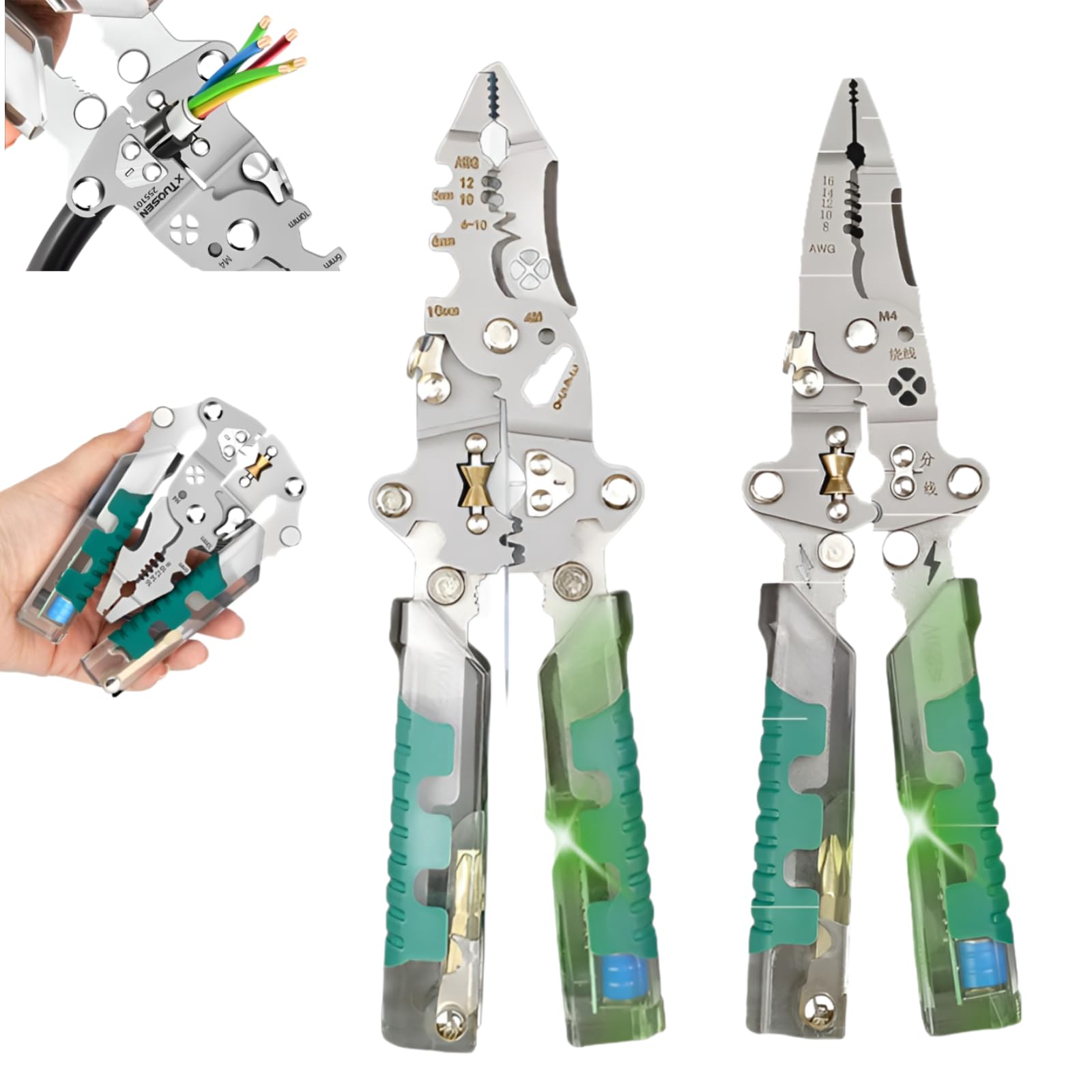 [mocoly]【18-in-1 2026年モデル】折りたたみ多機能ワイヤーストリッパー 電工ペンチ ドイツ製 ワイヤーストリッパー 耐摩耗鋼製 JIS規格絶縁 カッター/ツイスター一体型 電線クリンパー コンパクト収納 電気工事/DIY修理用
