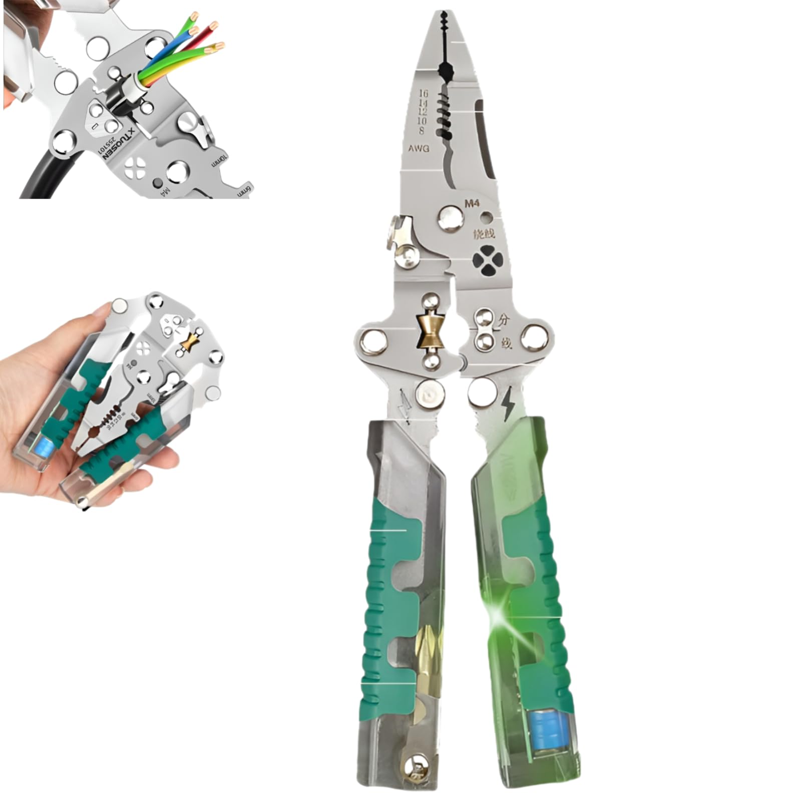[mocoly]【18-in-1 2026年モデル】折りたたみ多機能ワイヤーストリッパー 電工ペンチ ドイツ製 ワイヤーストリッパー 耐摩耗鋼製 JIS規格絶縁 カッター/ツイスター一体型 電線クリンパー コンパクト収納 電気工事/DIY修理用