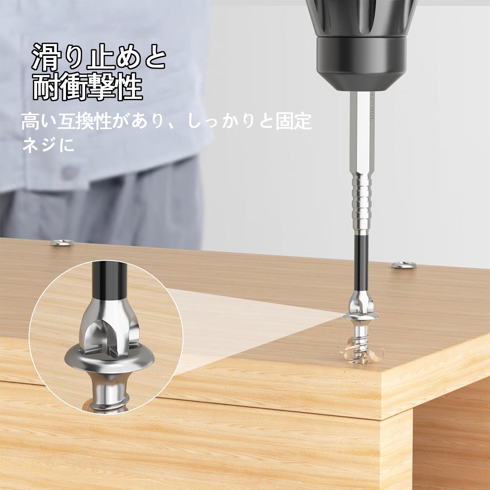 ドライバービットセット 6PC 長カラーループインパクト用 電動ドライバービット 滑り止め歯 耐衝撃 防スリップ 強力磁気ドリルビット ねじ締めドリル用