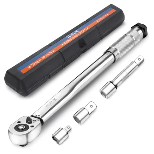 TORUK トルクレンチ プレセット型 差込角 9.5mm (3/8インチ) 5-60N·m 12.7mm変換ソケット 6.35mm変換ソケット エクステンションバー付き とるくレンチ 車/バイク修理レンチ タイヤ交換 自転車修理 専用ケース付き 校正証明書 ブラック