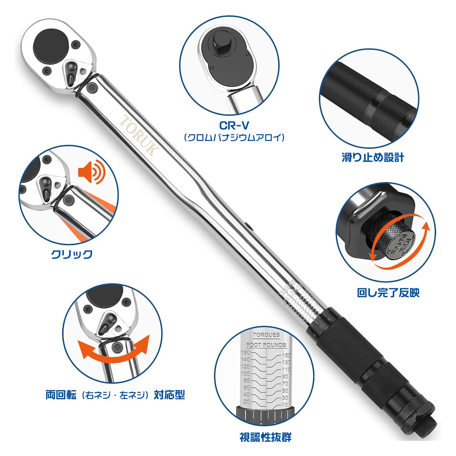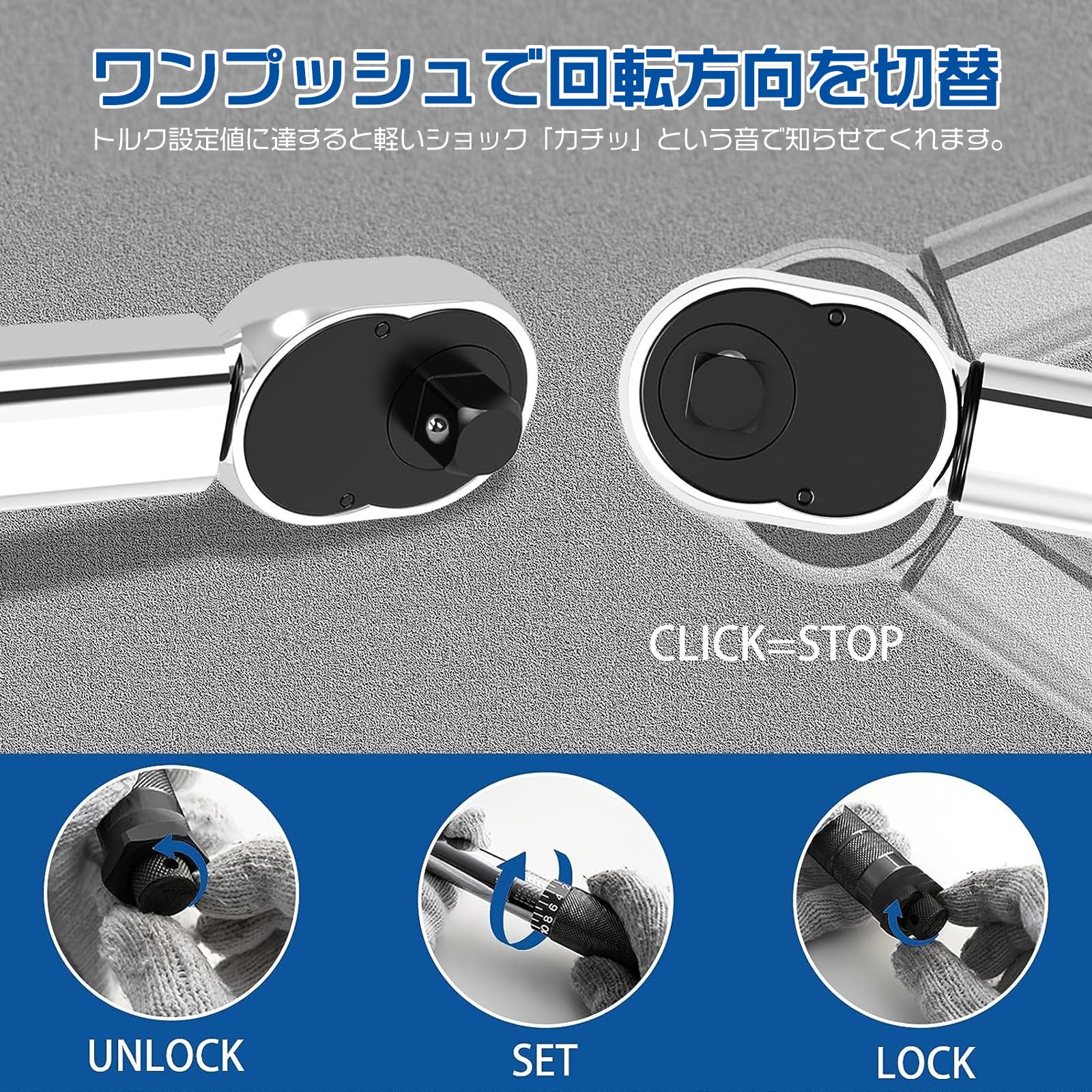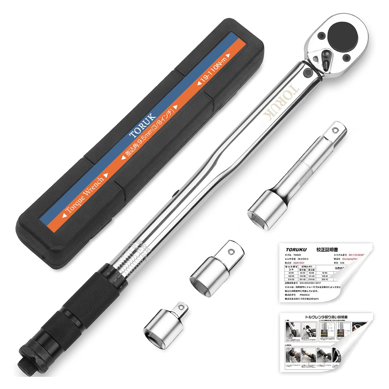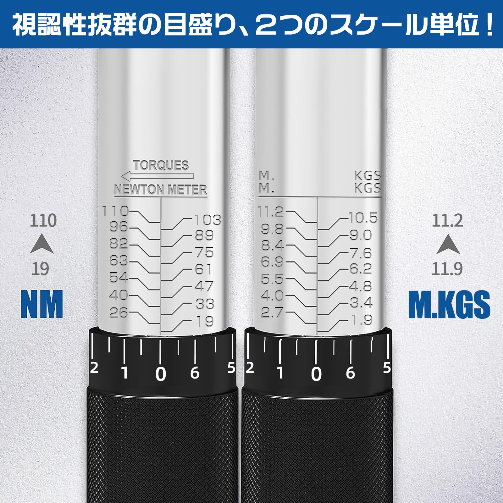 トルクレンチ プレセット型 タイヤ交換 差込角 車 バイク修理レンチ ソケットレンチ (差込角9.5mm、19-110N·m)