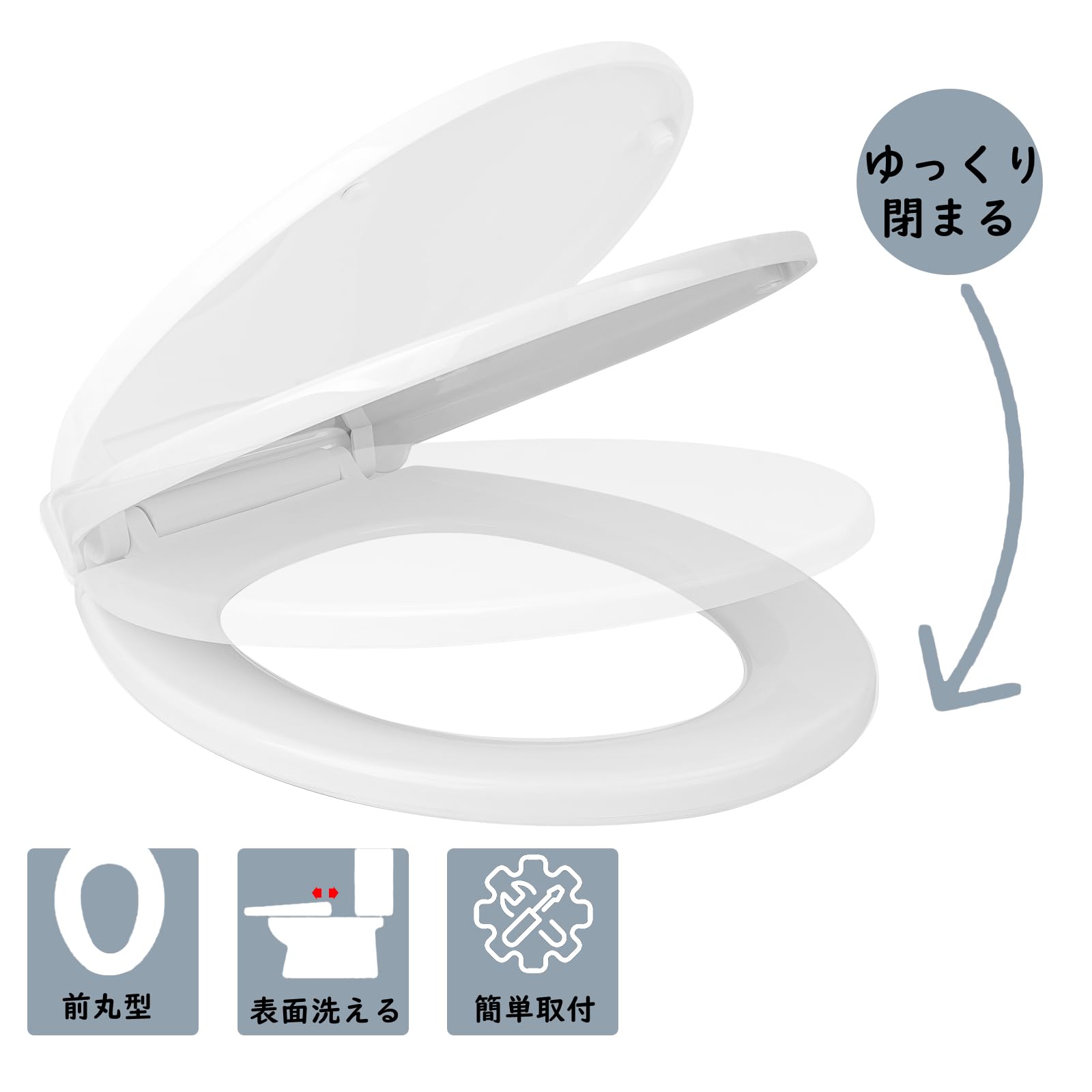 便座 交換用 ゆっくり閉まる 静音設計 普通便座 前丸型 ソフト閉止 簡単取付 洗えるPP素材 消臭 抗菌 マンション 戸建て対応 耐久性 丸形用