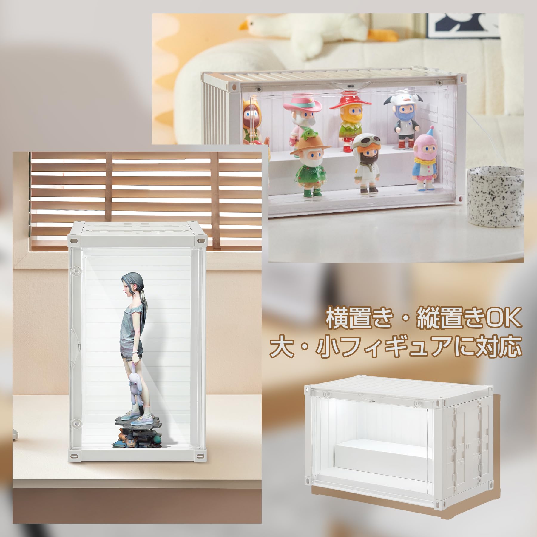 TAKUMI∞X フィギュアケース LED コレクションケース マグネット式扉 前開き シ フィギュアケース 棚 ショーケース 23.5x12.2x14.3cm テーブルトップ ディスプレイケース コレクション棚 輸送コンテナスタイル フィギュア ケース (白-S)