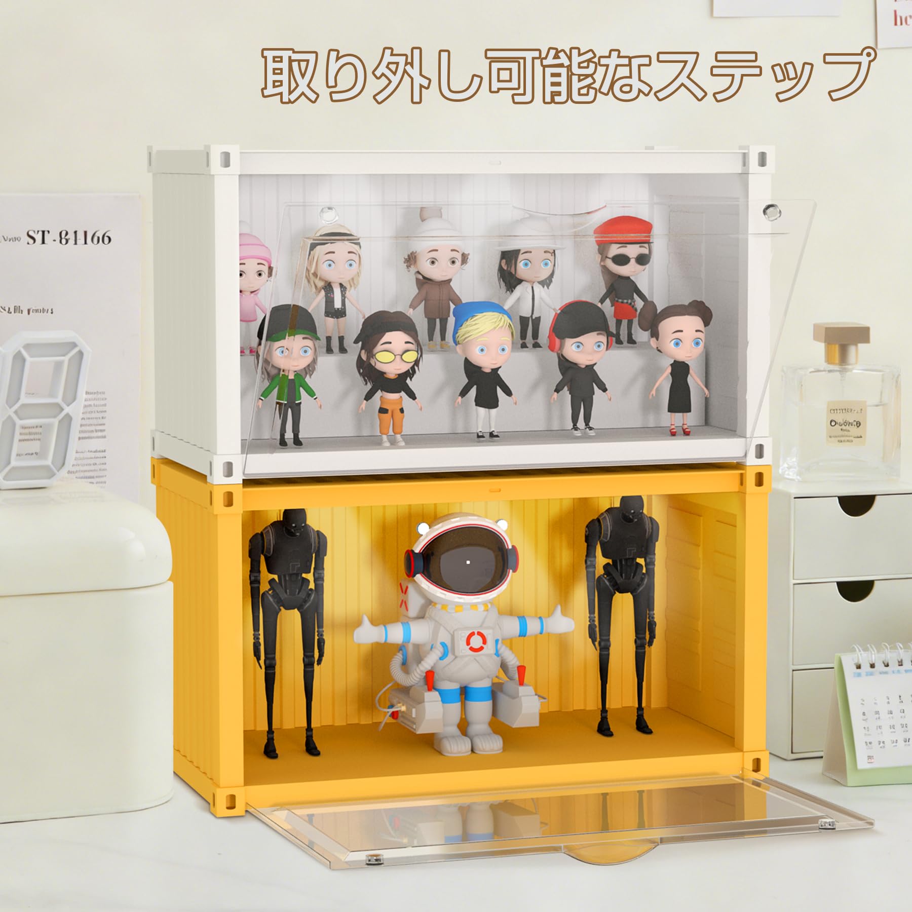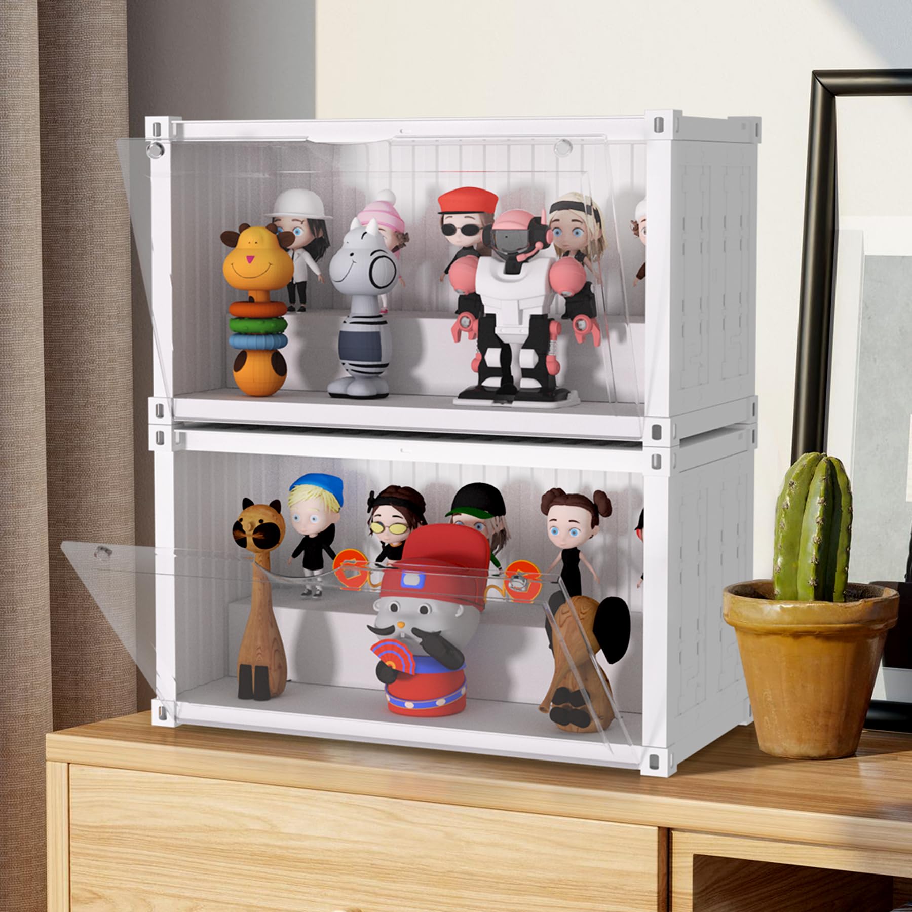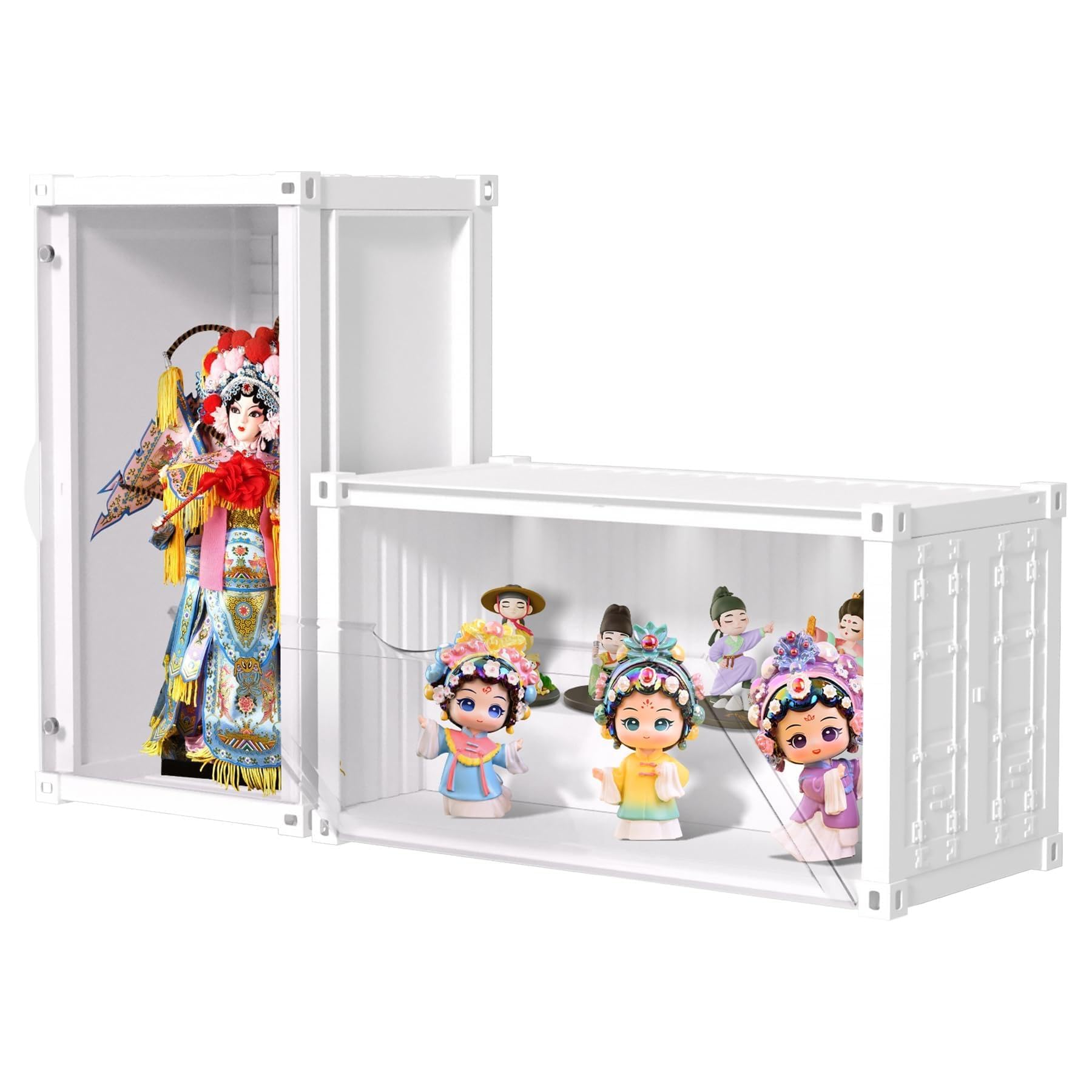 QIYUNI フィギュアケース コレクションケース 大容量 多機能 人形 透明展示ボックス スタック可能 積み木付き 自由組立式 展示ケース 磁気式ドア付き 防塵 防汚 省スペース