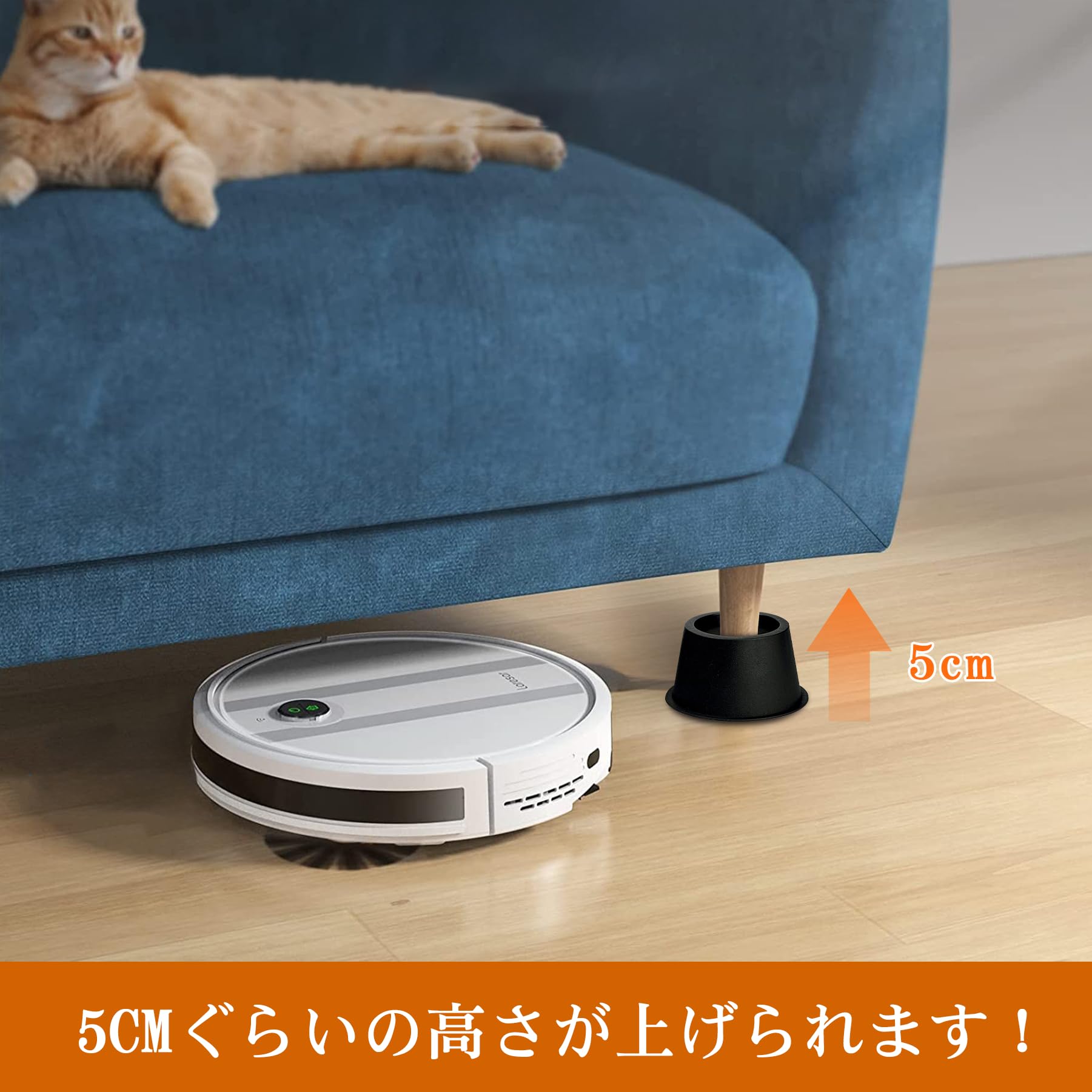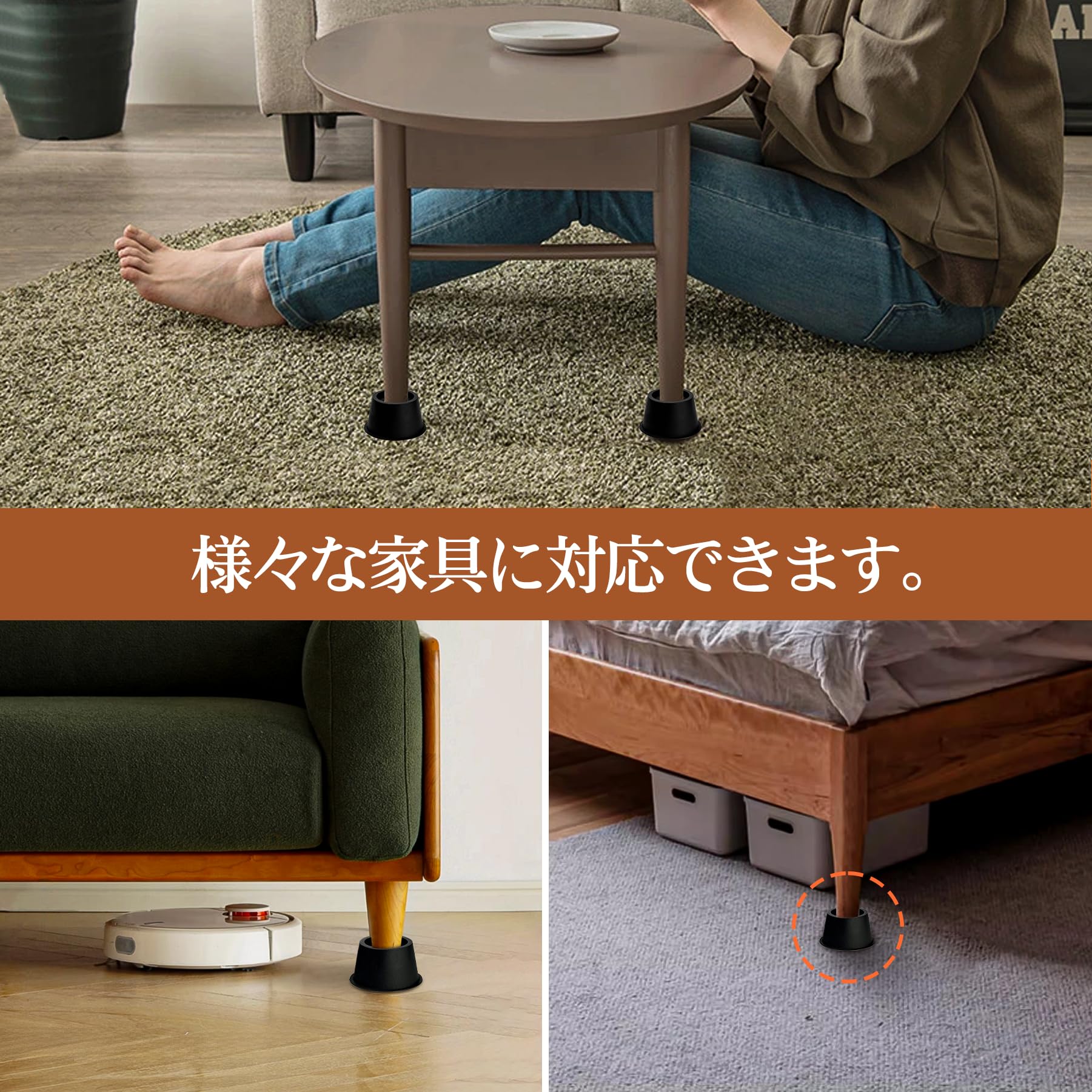 高さ5CM テーブル・こたつなど家具の高さ調節が簡単にできる 高さを上げる ベッド底上げ 4個セット 高さ調節脚 こたつ 継足し 継ぎ足 丸型 テーブル脚台 暖房器具 丸型 (耐荷重500kg) (ブラック)