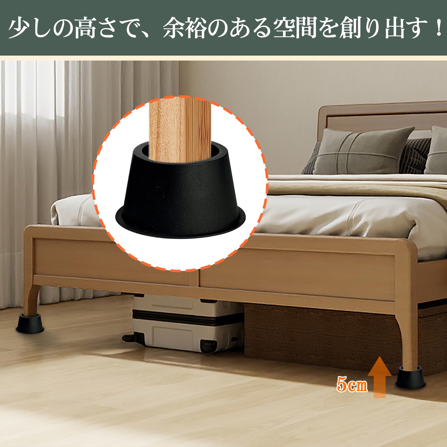 継ぎ脚 高さ5CM テーブル・こたつなど家具の高さ調節が簡単にできる 高さを上げる ベッド底上げ 4個セット 高さ調節脚 こたつ 継足し 継ぎ足 丸型 テーブル脚台 暖房器具 丸型 (耐荷重500kg) (ブラック)