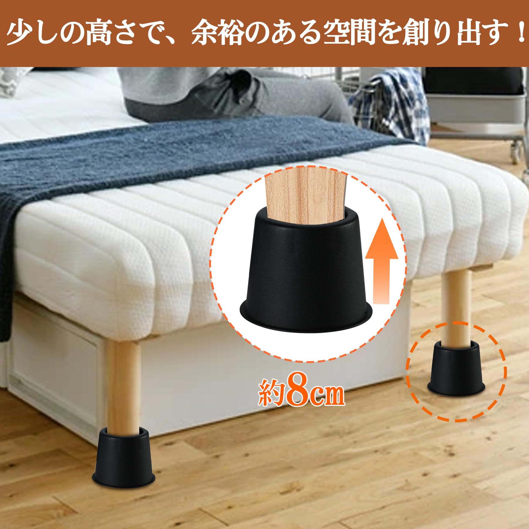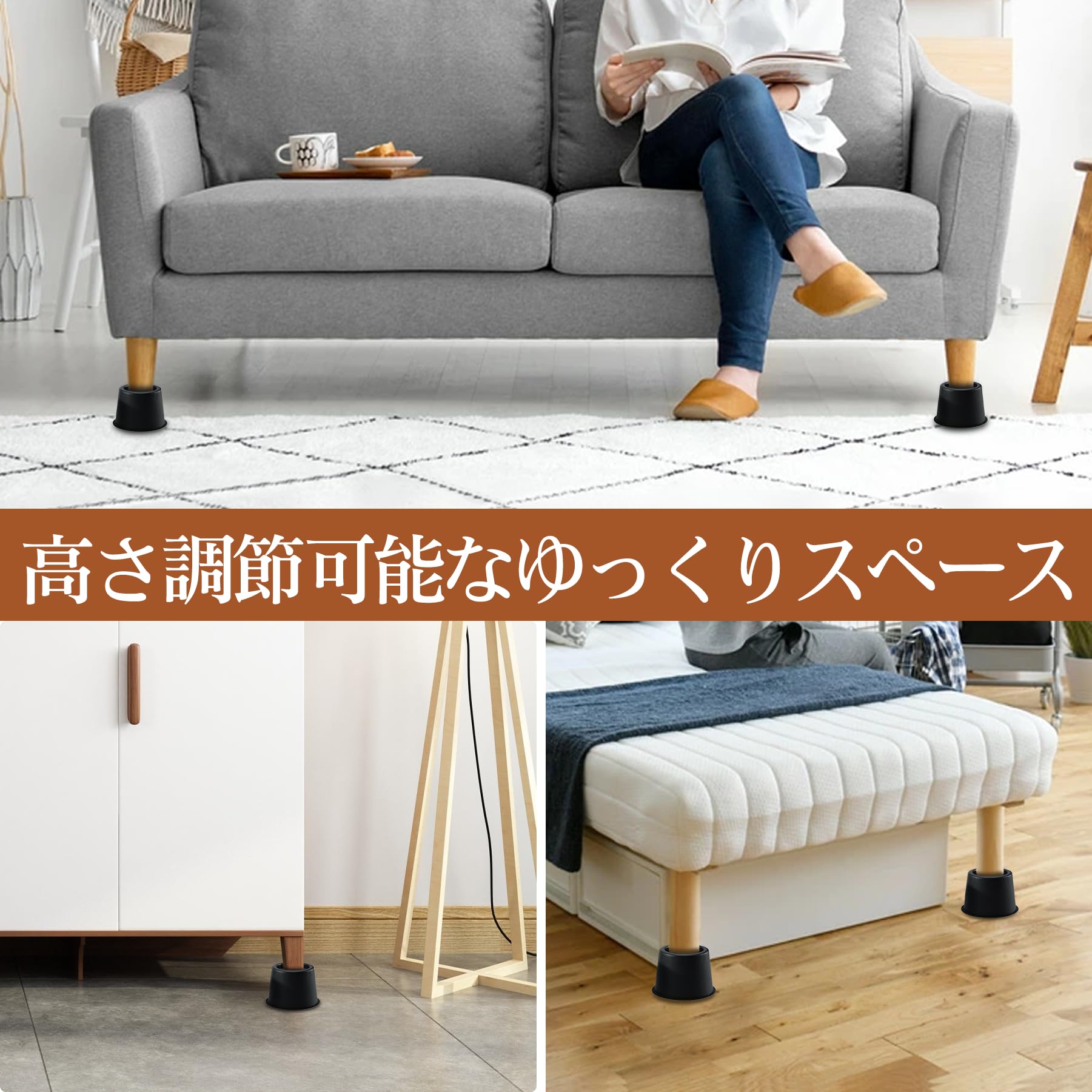 育のさち 高さ調整 継ぎ脚 かさ上げ 家具脚 テーブル脚 机 4点セット ベッド 高さをあげる 脚 こたつ テーブル ソファー デスク 高さ調節 座椅子 足 継ぎ足し 高さをあげる 便利グッズ 凹みがある 滑車にも 高さ約8cm ブラック