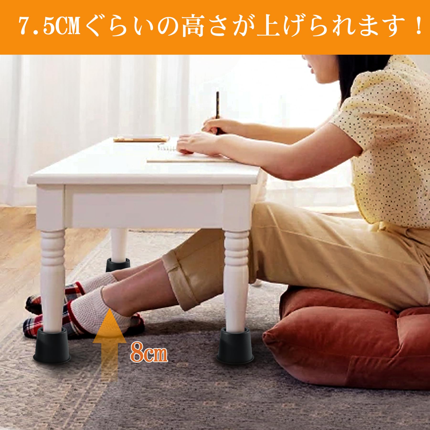 Umelee テーブル脚 継ぎ足し 6.5~9cmかさ上げ 机 高さ調整 テーブル 5cm足対応 こたつ 高さ調節 ソファ ベッド こたつの高さを上げる足 こたつ足 継ぎ足し 耐荷重500kg 4個セット ベージュ