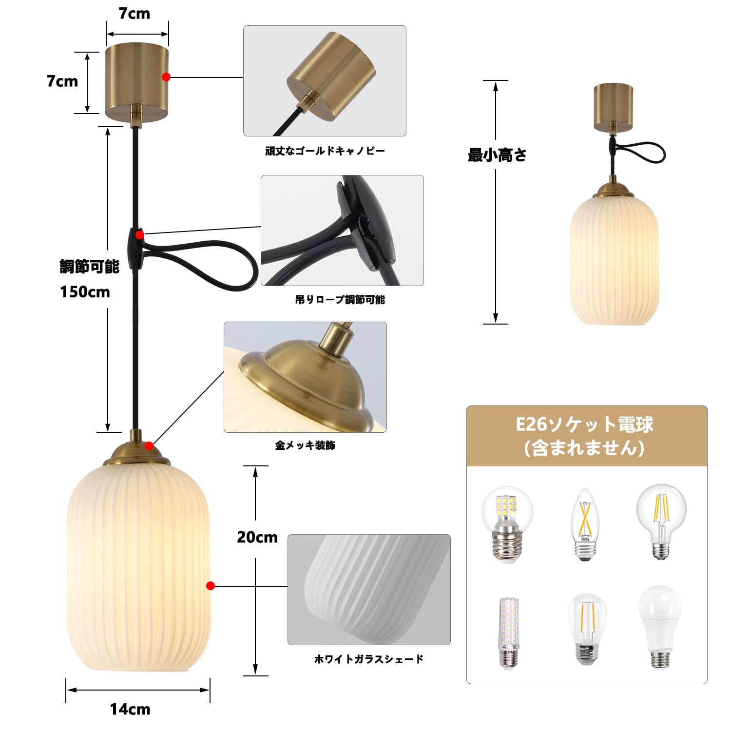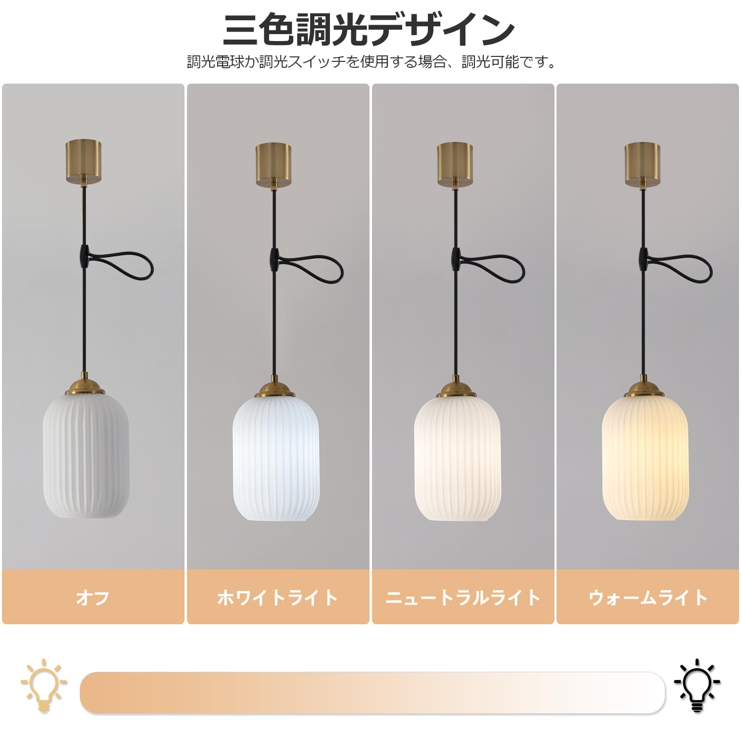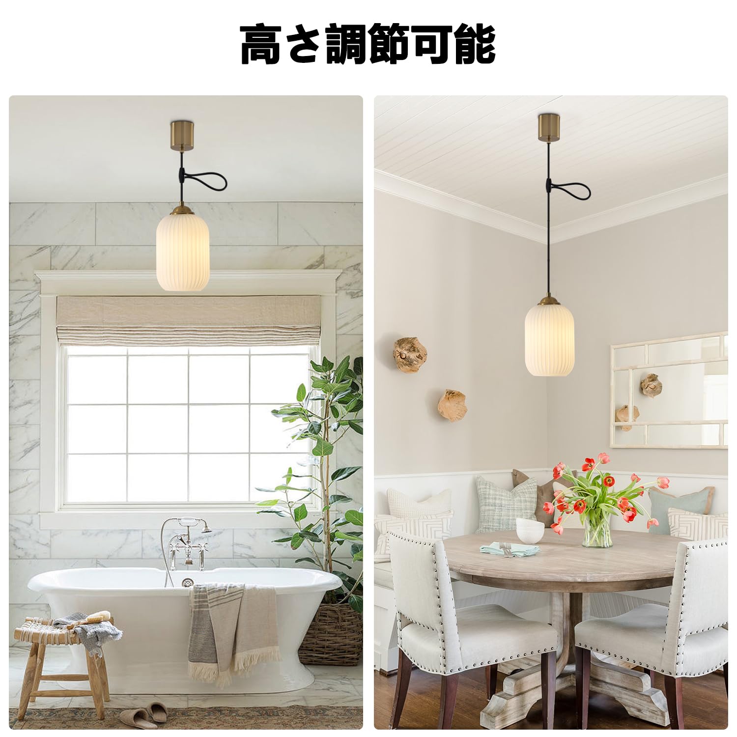 KCO Lighting 北欧モダン ペンダントライト 高さ調節可能 ミルクガラスシェード 引掛シーリング用 E26口金 三色調光 LED対応 おしゃれ 天井照明 照明器具 インテリア ダイニング リビング キッチン 寝室 電球別売り PSE認証済 (ゴールド-D)