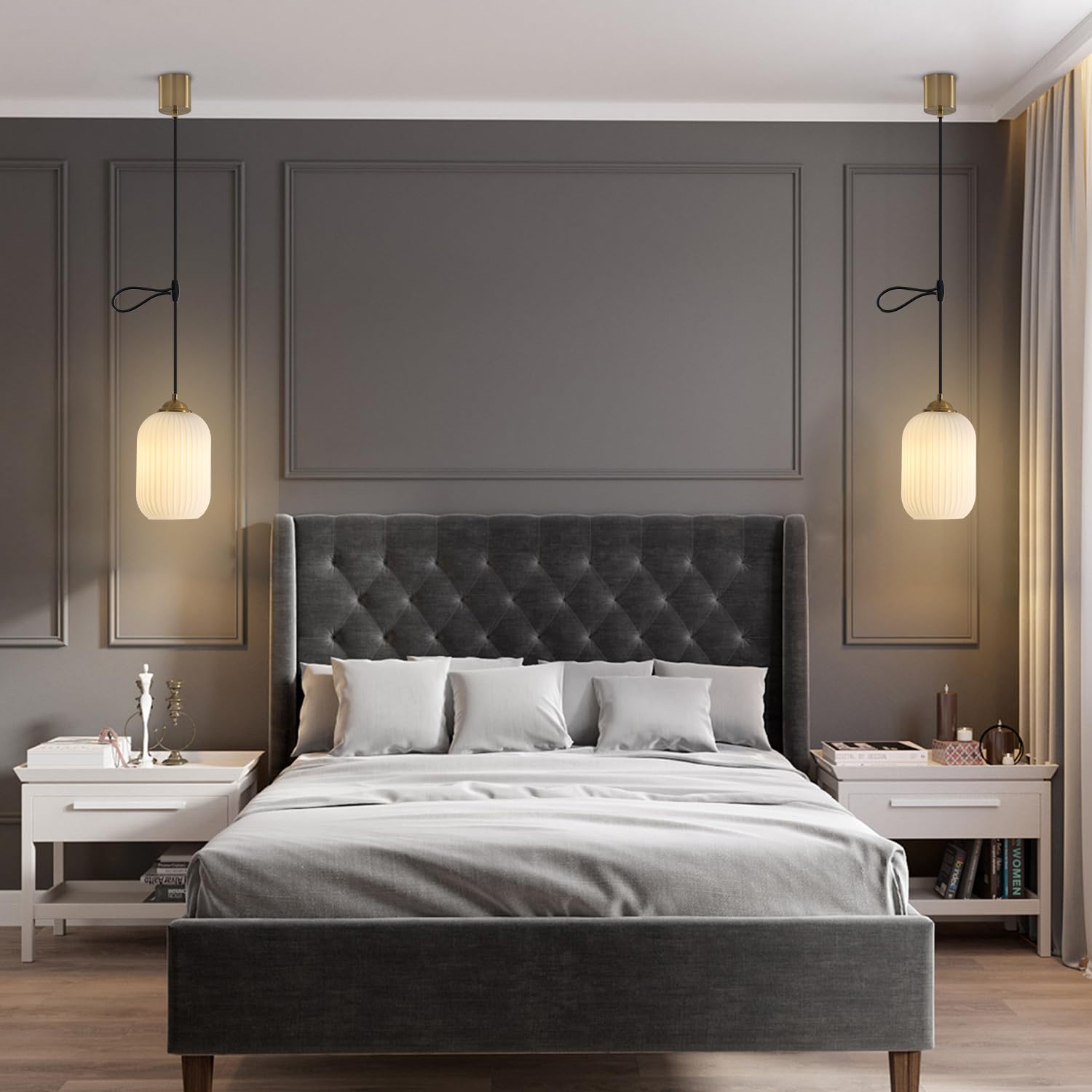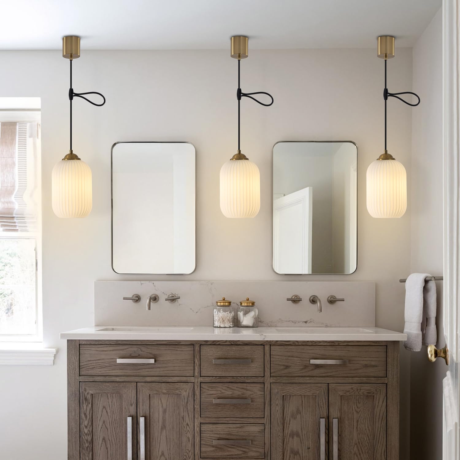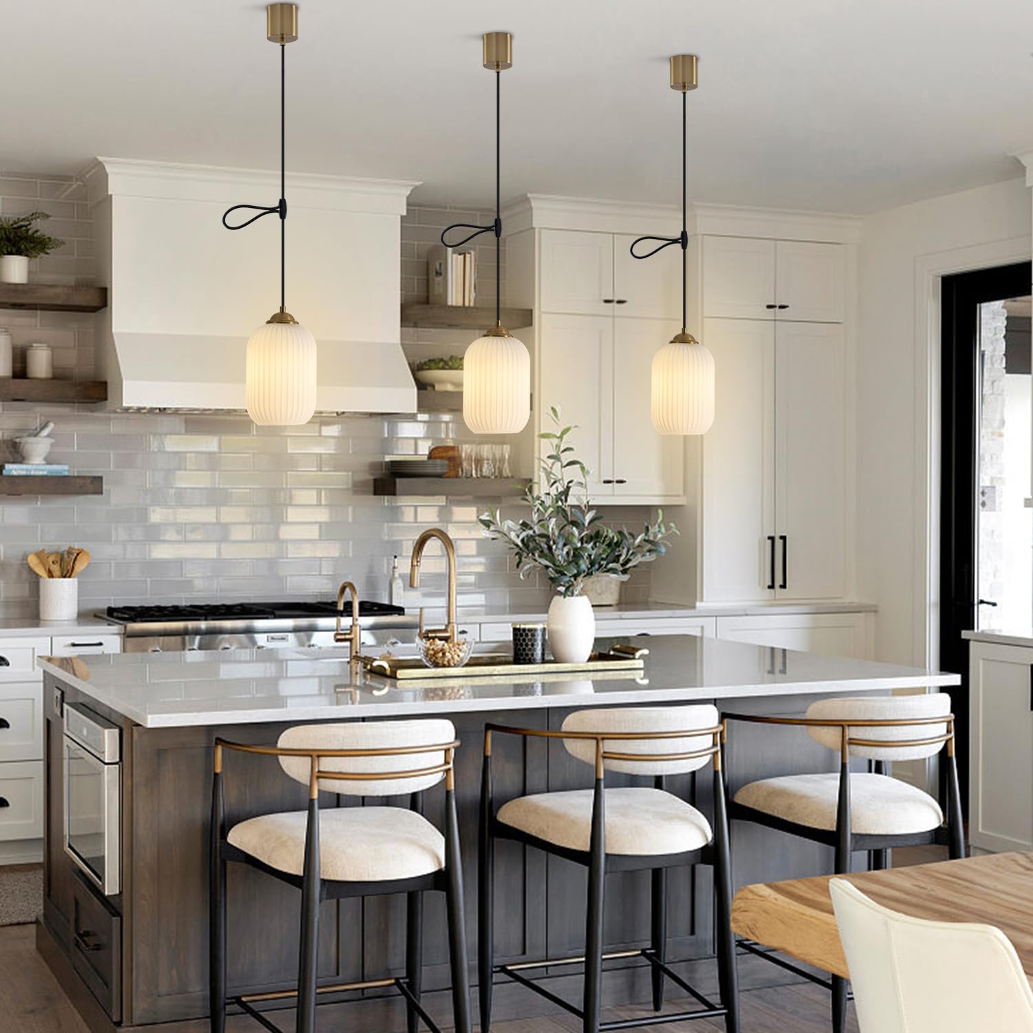 KCO Lighting 北欧モダン ペンダントライト 高さ調節可能 ミルクガラスシェード 引掛シーリング用 E26口金 三色調光 LED対応 おしゃれ 天井照明 照明器具 インテリア ダイニング リビング キッチン 寝室 電球別売り PSE認証済 (ゴールド-D)
