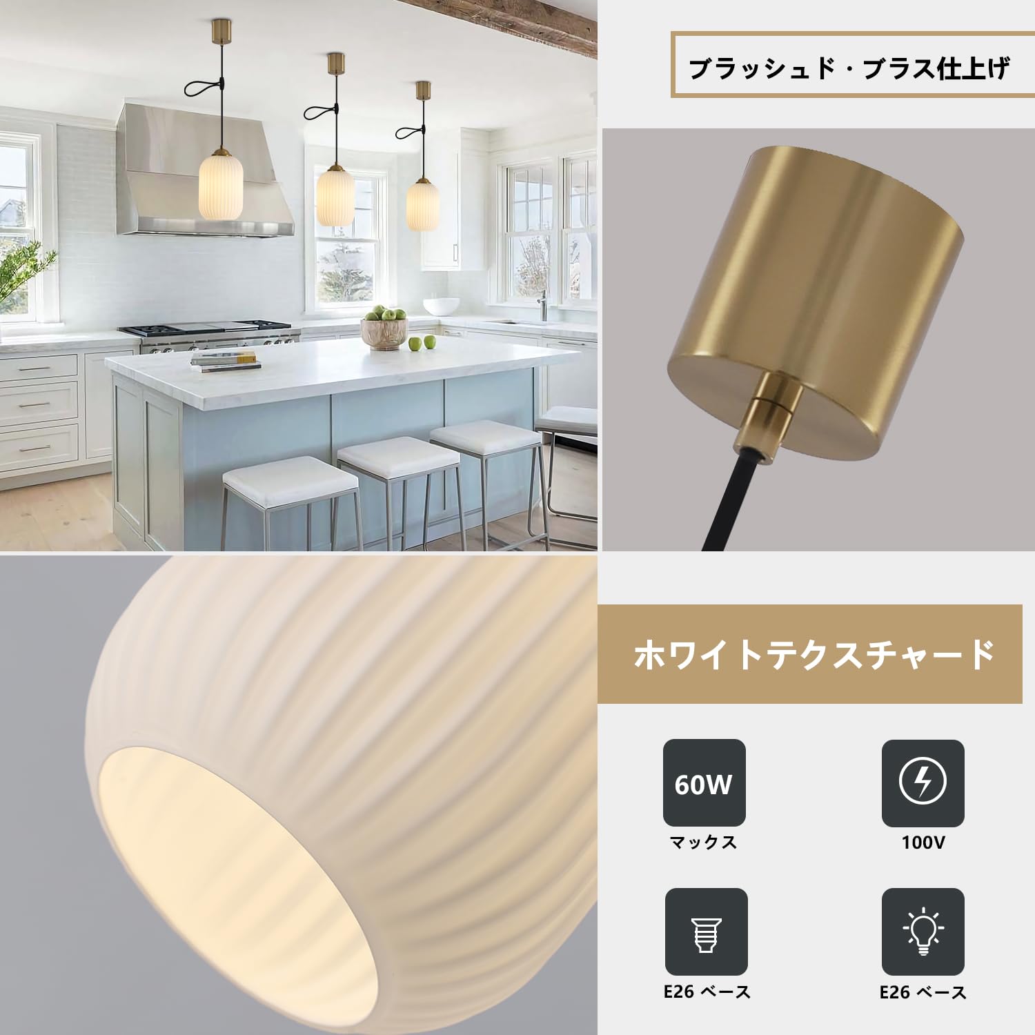xydled ledシーリングライト E26 ペンダントライト 3灯 60cm超長いチェーン付き 電球なし ナツメ球ソケット付 天井照明 照明器具 LED電球対応 常夜灯対応 3灯式