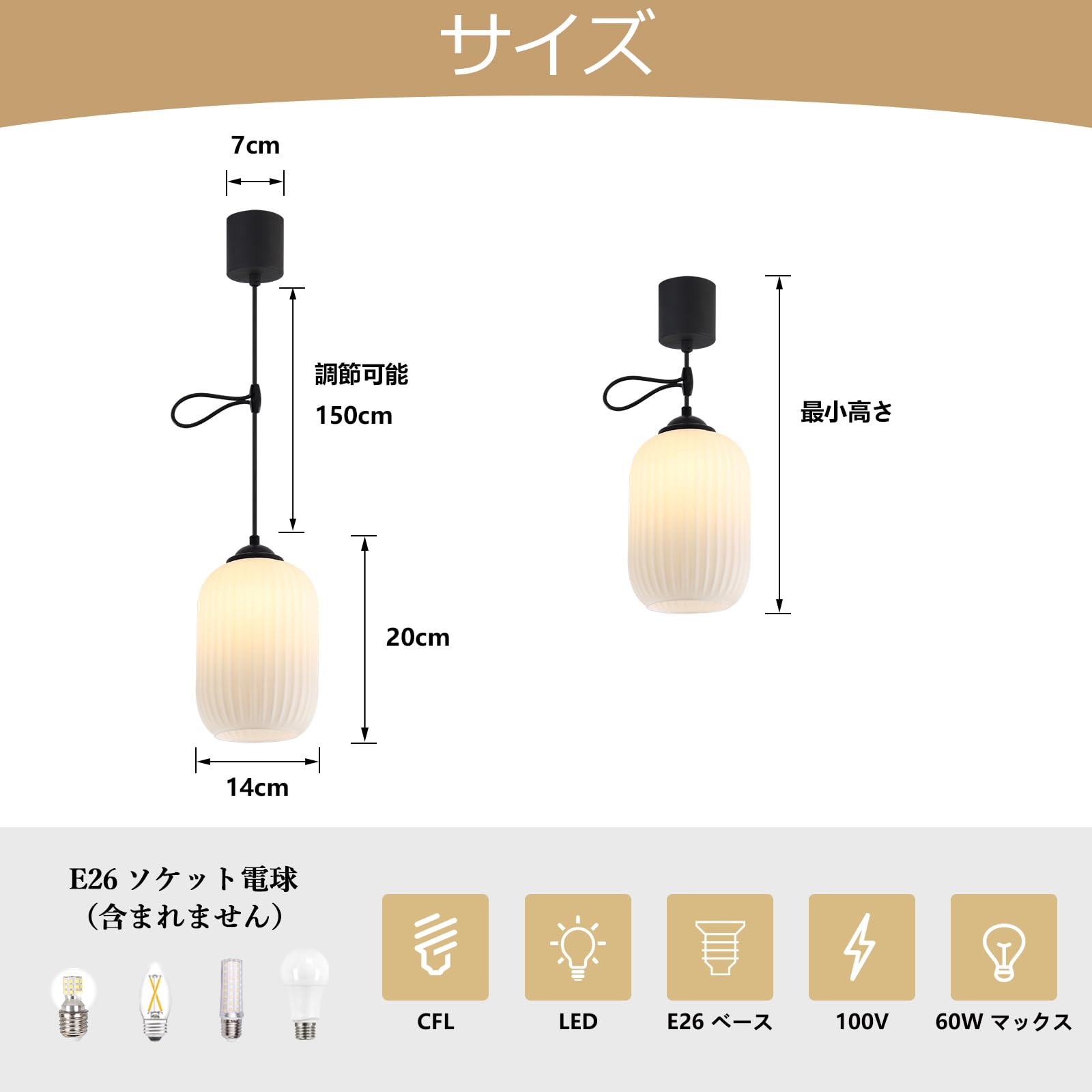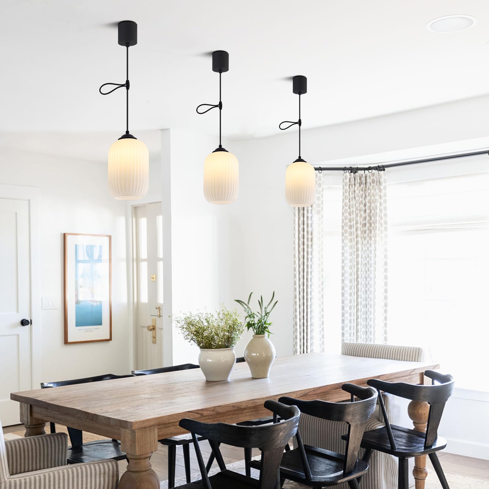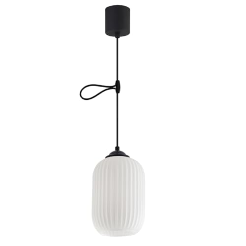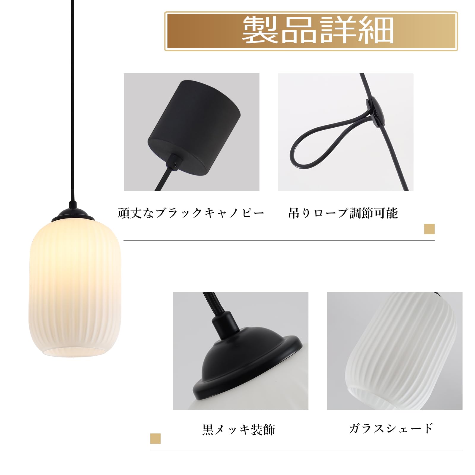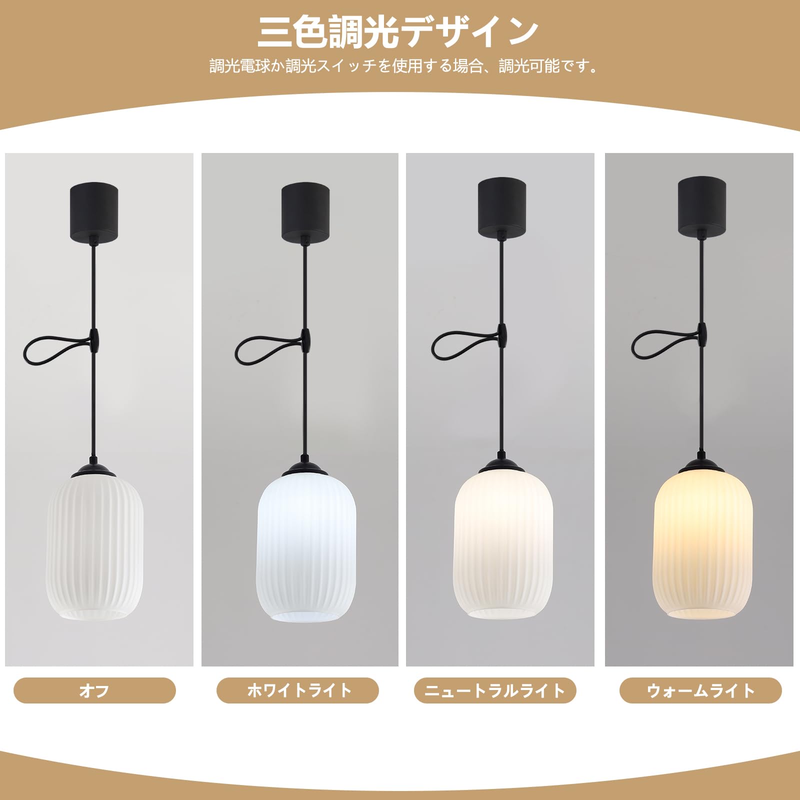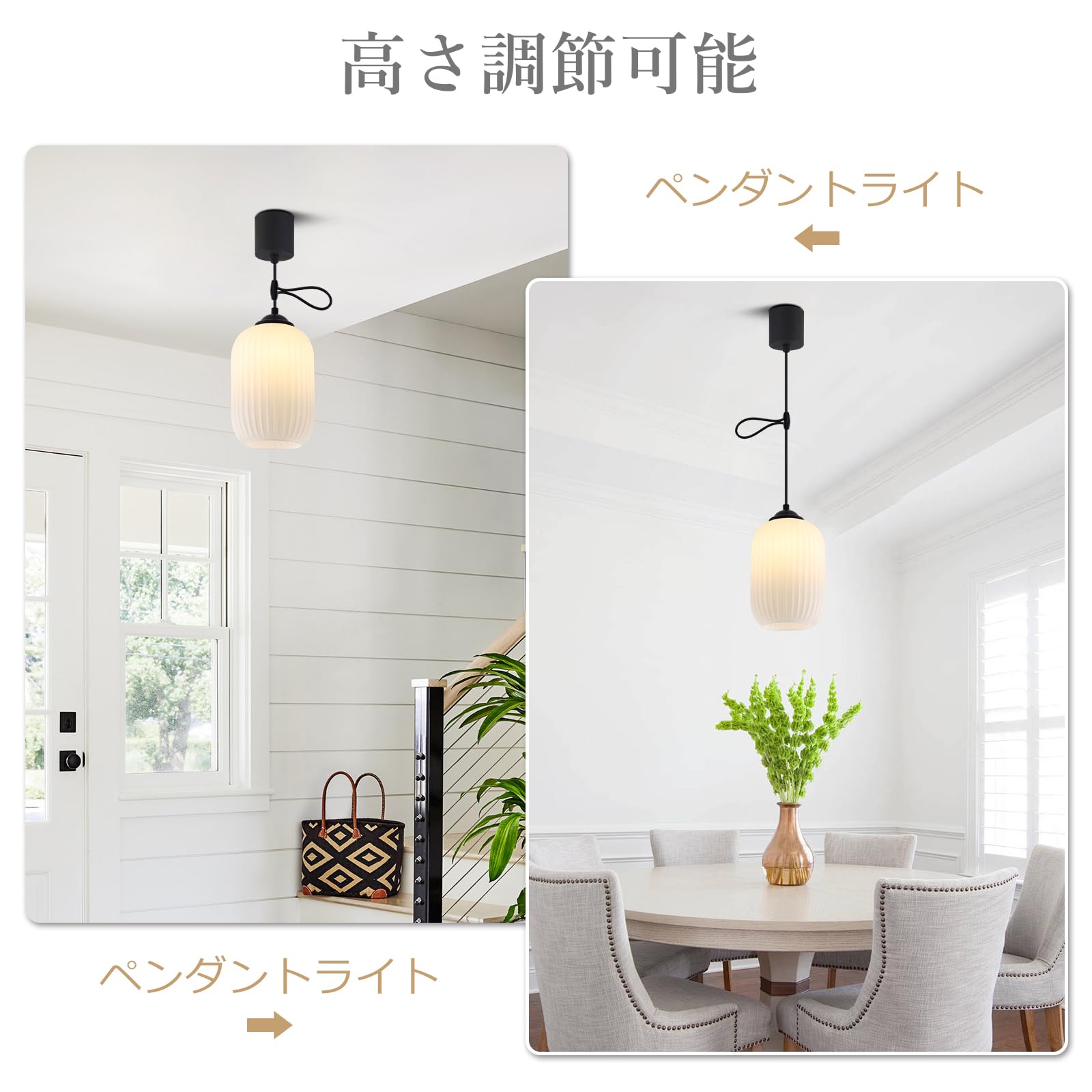 KCO Lighting 北欧モダン ペンダントライト 高さ調節可能 ミルクガラスシェード 引掛シーリング用 E26口金 三色調光 LED対応 おしゃれ 天井照明 照明器具 インテリア ダイニング リビング キッチン 寝室 電球別売り PSE認証済 (ブラック-D)
