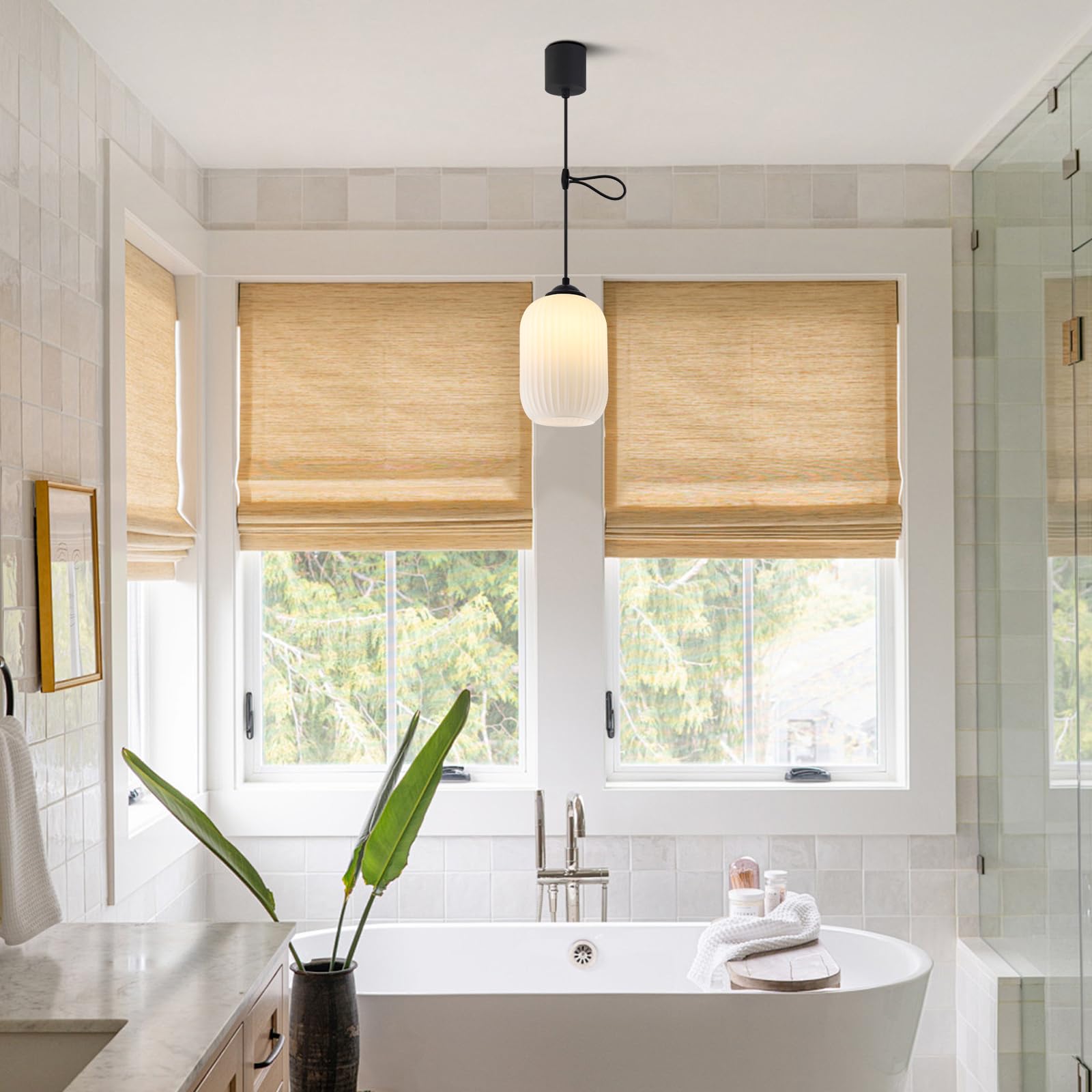KCO Lighting 北欧モダン ペンダントライト 高さ調節可能 ミルクガラスシェード 引掛シーリング用 E26口金 三色調光 LED対応 おしゃれ 天井照明 照明器具 インテリア ダイニング リビング キッチン 寝室 電球別売り ブラック-A