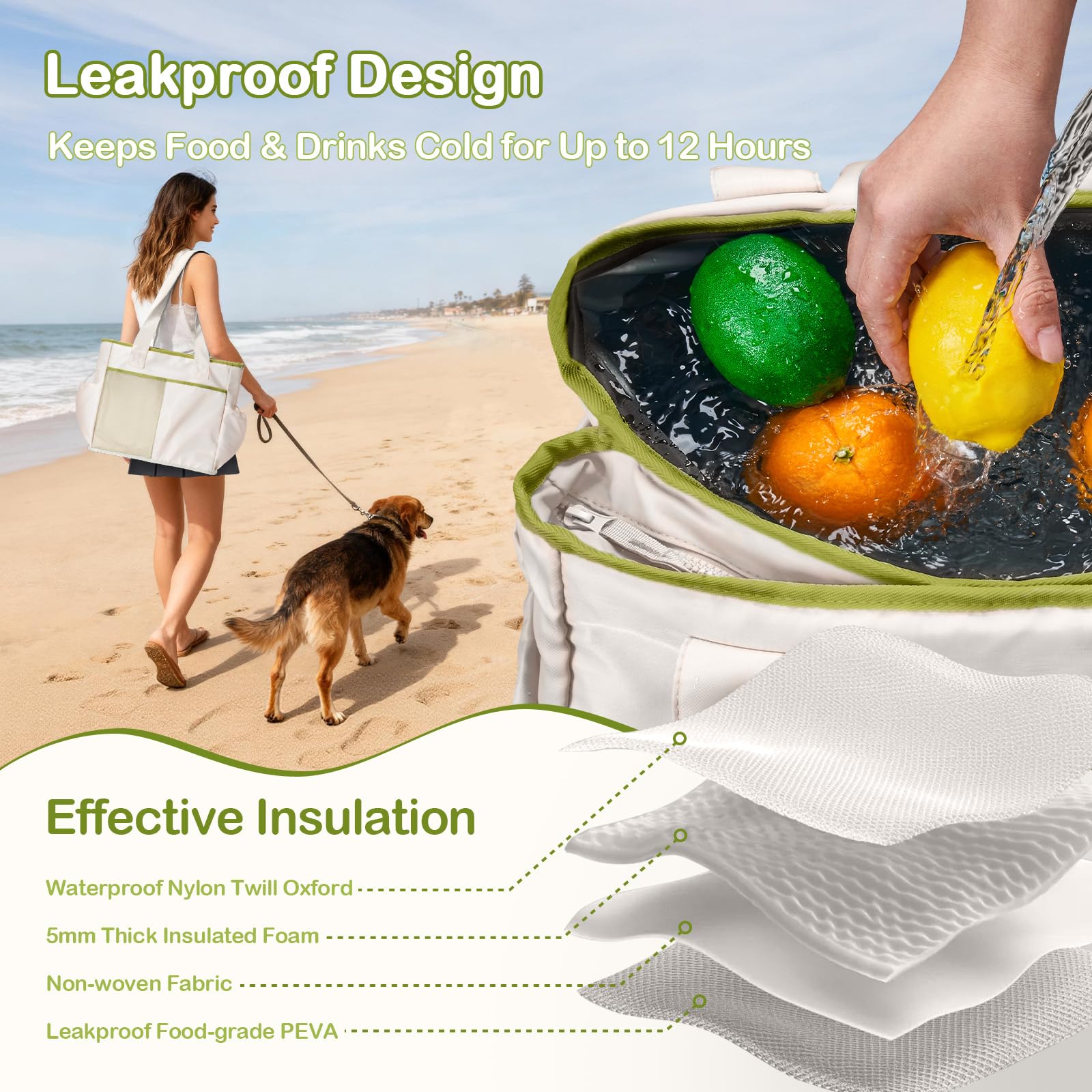Odoland キャンプ用クーラーバッグ、ホワイトグリーン