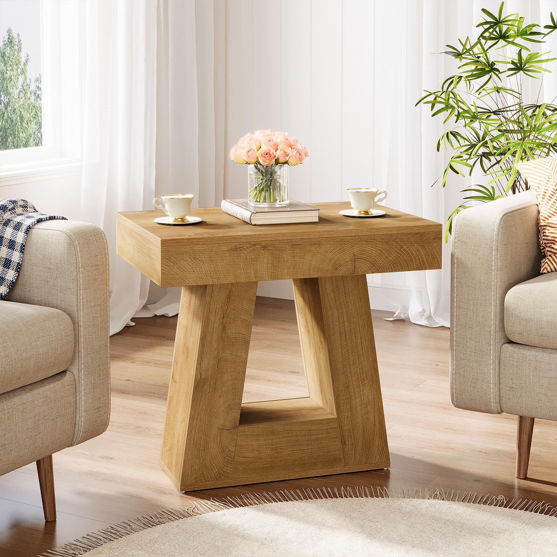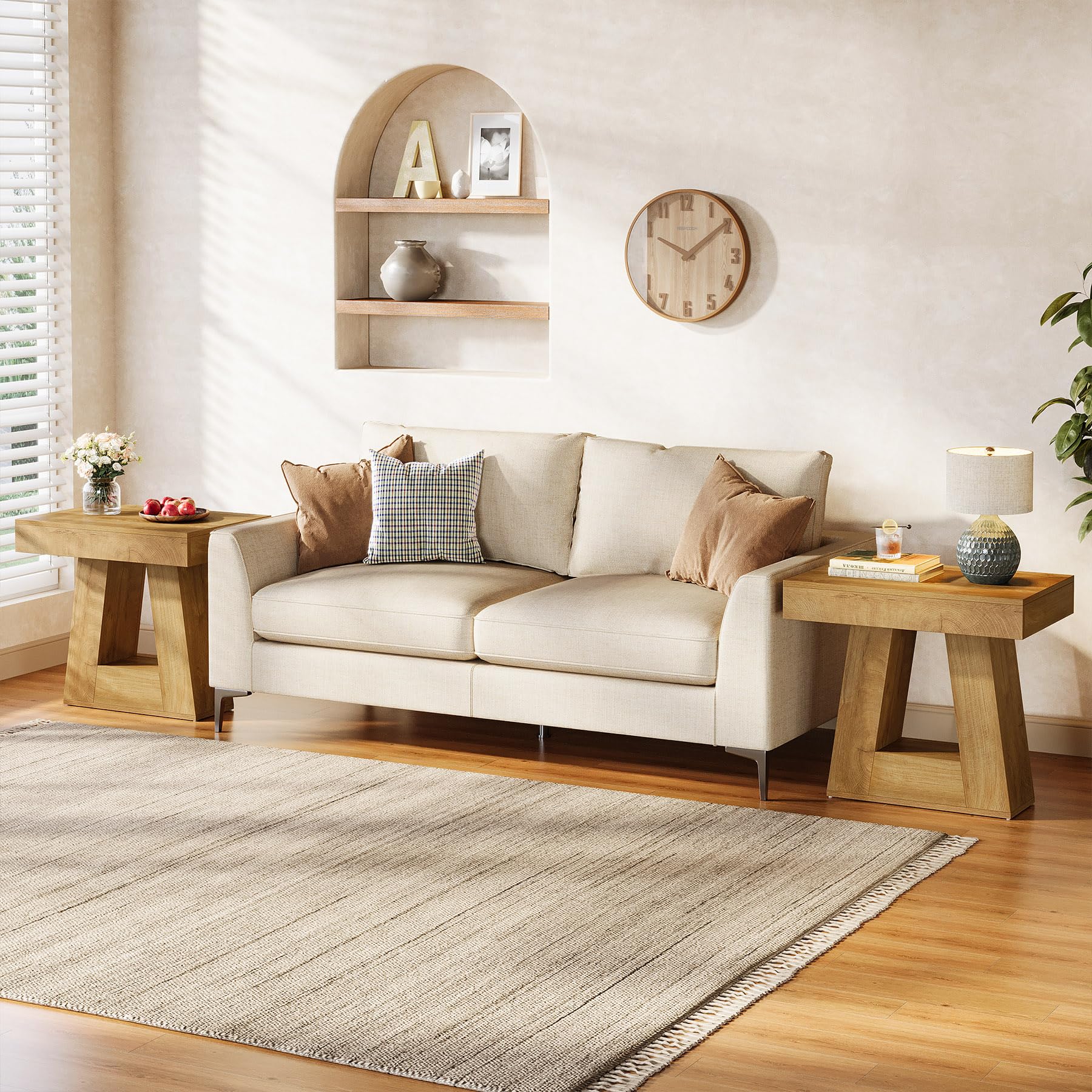 Tribesigns 24インチ モダンサイドテーブル 2段 狭い木製エンドテーブル 台形ベース ファームハウス 小型 ナイトスタンド リビングルーム 寝室 天然木カラー