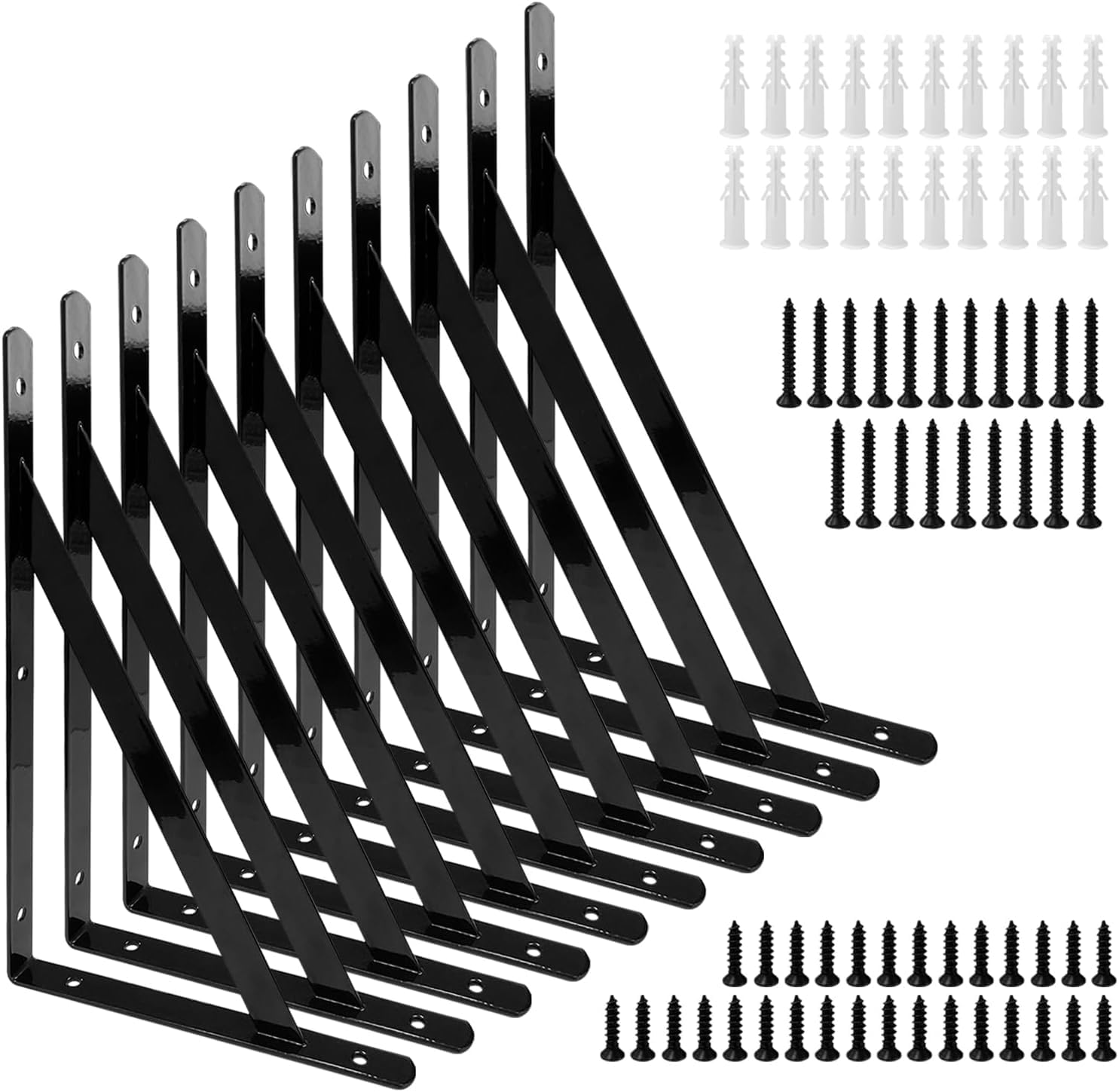 TerraShine 棚受け 10本セット 棚受け金具 棚支え アイアンブラケット L字型 耐荷重50kg 耐久性 省スペース 壁収納 ビス付き DIY 収納(ブラック-250*160mm)