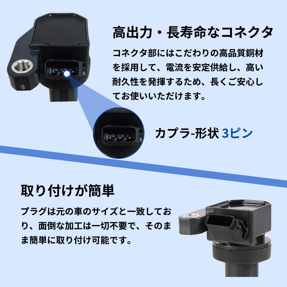 ADPOW イグニッションコイル ダイハツ 車用 4ピン 19500-B2050 19500-B2051 エンジンパーツ 耐久性 修理 互換 3本セット