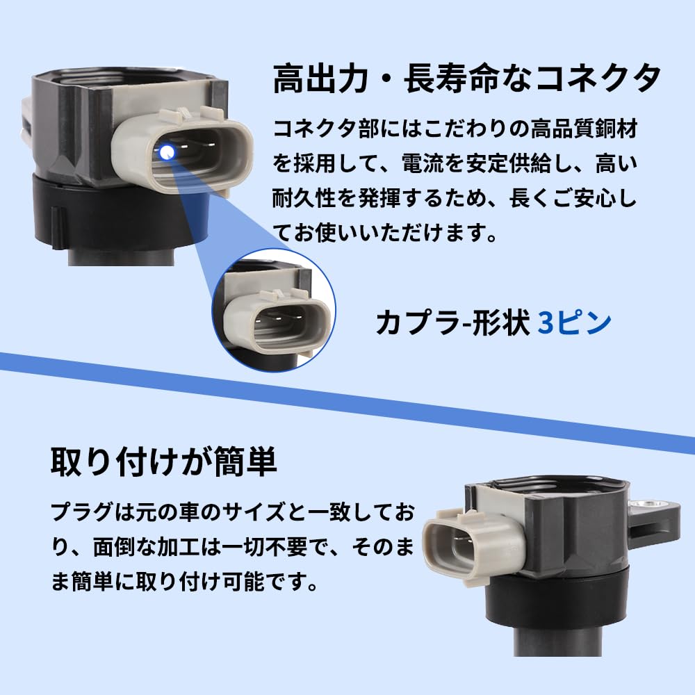 1PZ JP2-IG3 4本セット トヨタ イグニッションコイル 4ピン 90919-02244 90919-02266 90919-02243 ハリアー エスティマ アルファード イプサム ヴェルファイア ACR50W ANH10W ANH20W ブレイド ヴァンガード レクサス クルーガー サイ マークXジオ カムリ