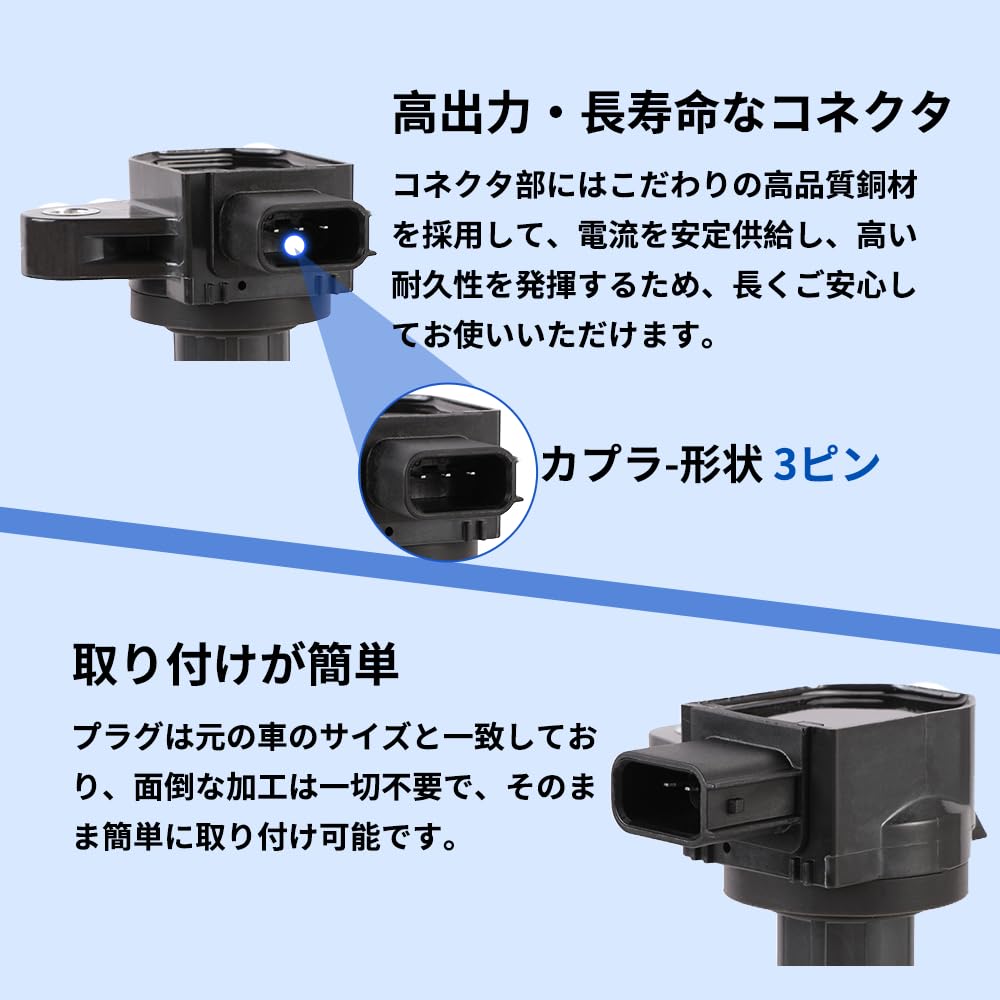 イグニッションコイル ダイハツ 車用 4ピン エンジンパーツ 耐久性 修理 互換 3本セット 19500-B2050 19500-B2051