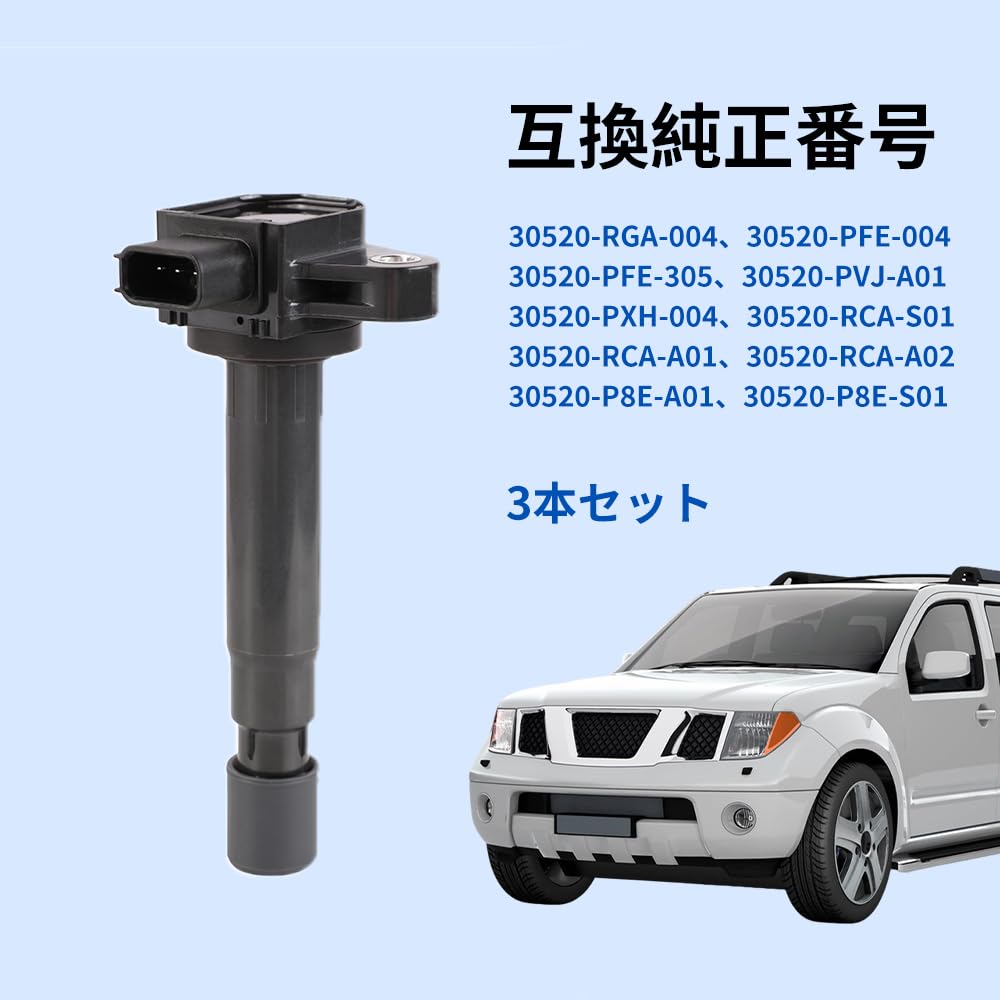 イグニッションコイル ホンダ用 3本セット バモス ライフ アクティ 他 ダイレクトイグニッションコイル 3ピン30520-RGA-004・30520-PFE-004・30520-PFE-305・30520-PVJ-A01・30520-PXH-004・30520-RCA-A01・30520-RCA-A02・30520-P8E-A01・30520-P8E-S01・30520-RCA-S01