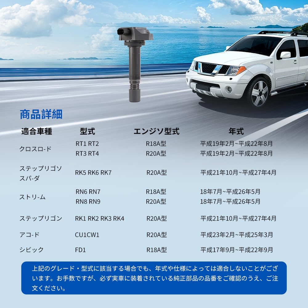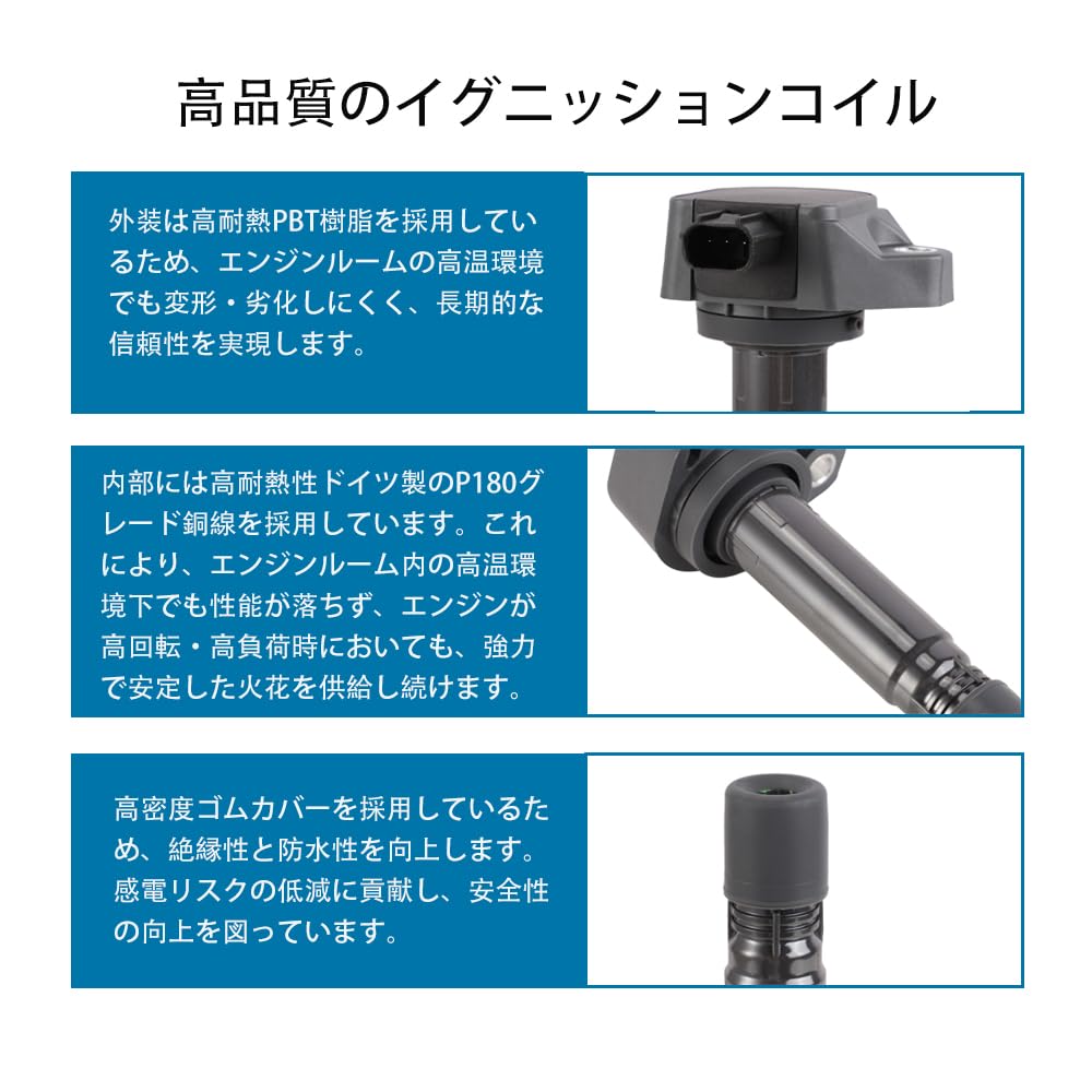 Lwope 車用 イグニッションコイル 4本セット 30520-RNA-A01 ホンダ ステップワゴン RK1 RK2 RK3 RK4 ステップワゴンスパーダ RK5 RK6 RK7 ストリーム RN6 RN7 RN8 RN9用 点火コイル 高い耐久性 互換