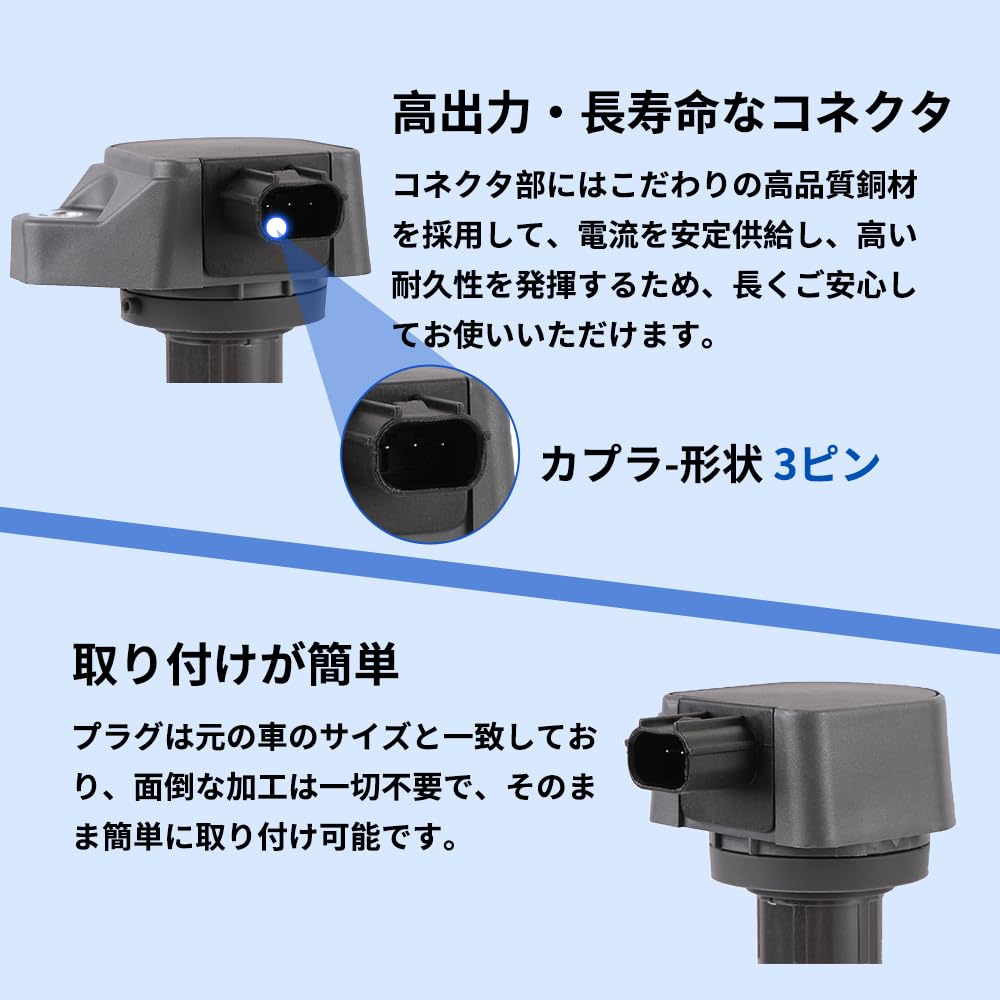 1PZ JP3-40C 3本セット 車用 4ピン イグニッションコイル 19500-B2040 19500-B1010 ムーヴ L175S L185S ミラ L275S タント L375S ソニカ L405S ムーヴコンテ L575S エンジンパーツ 耐久性 修理 互換