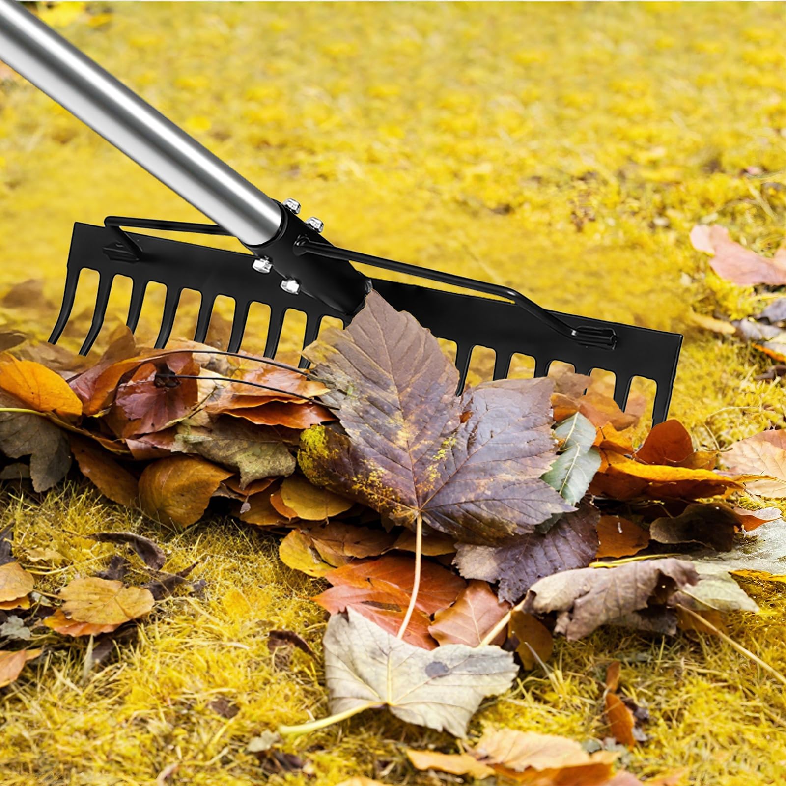 Walensee 1.6m 熊手 伸縮レーキ ステンレス柄付 スチール17本爪 メタルヘッド 頑丈なレーキ 草刈り 落葉集め 整地作業 土壌緩和 農業 土地管理 芝生のサッチ取りレーキ 園芸用農具